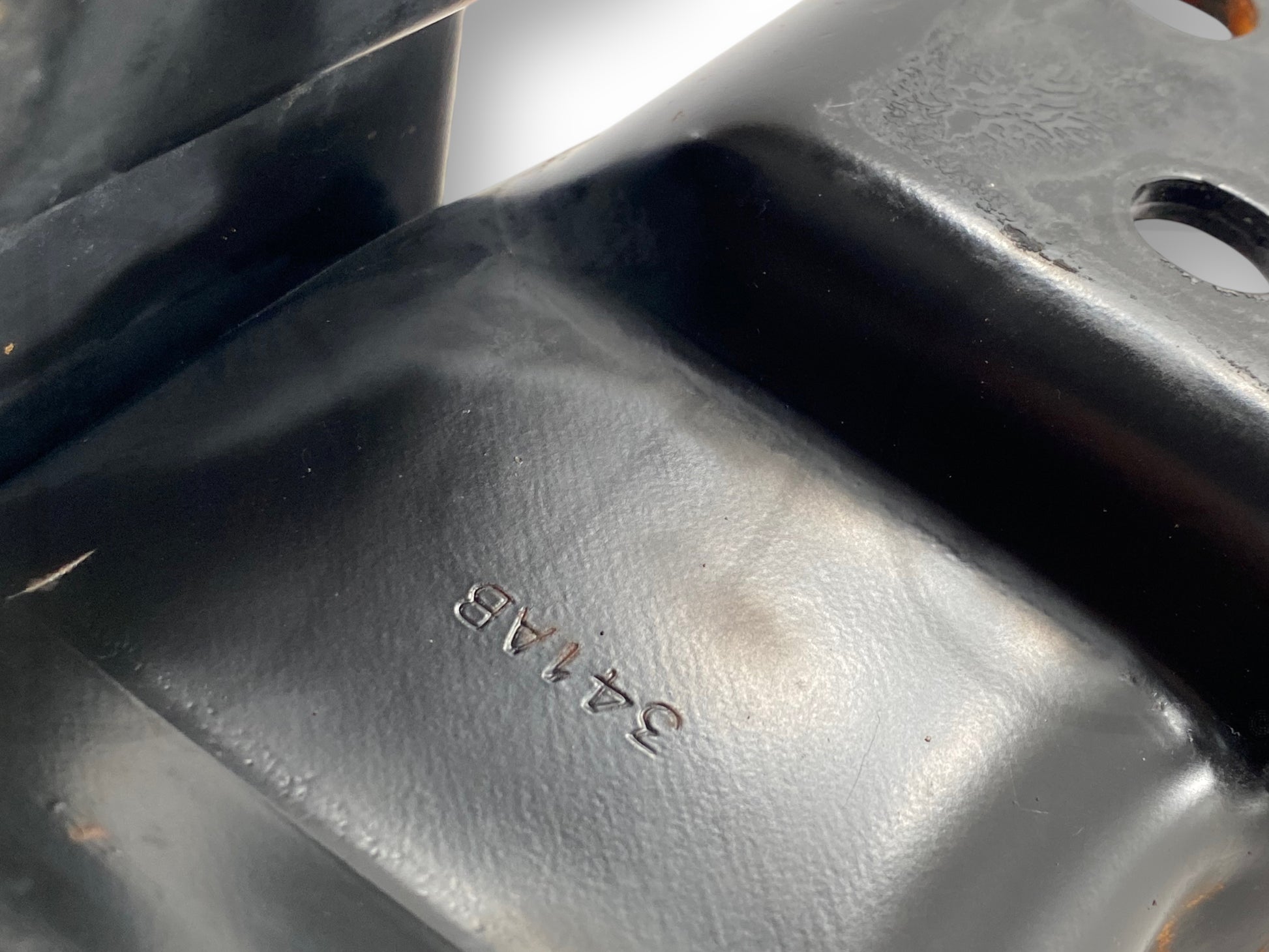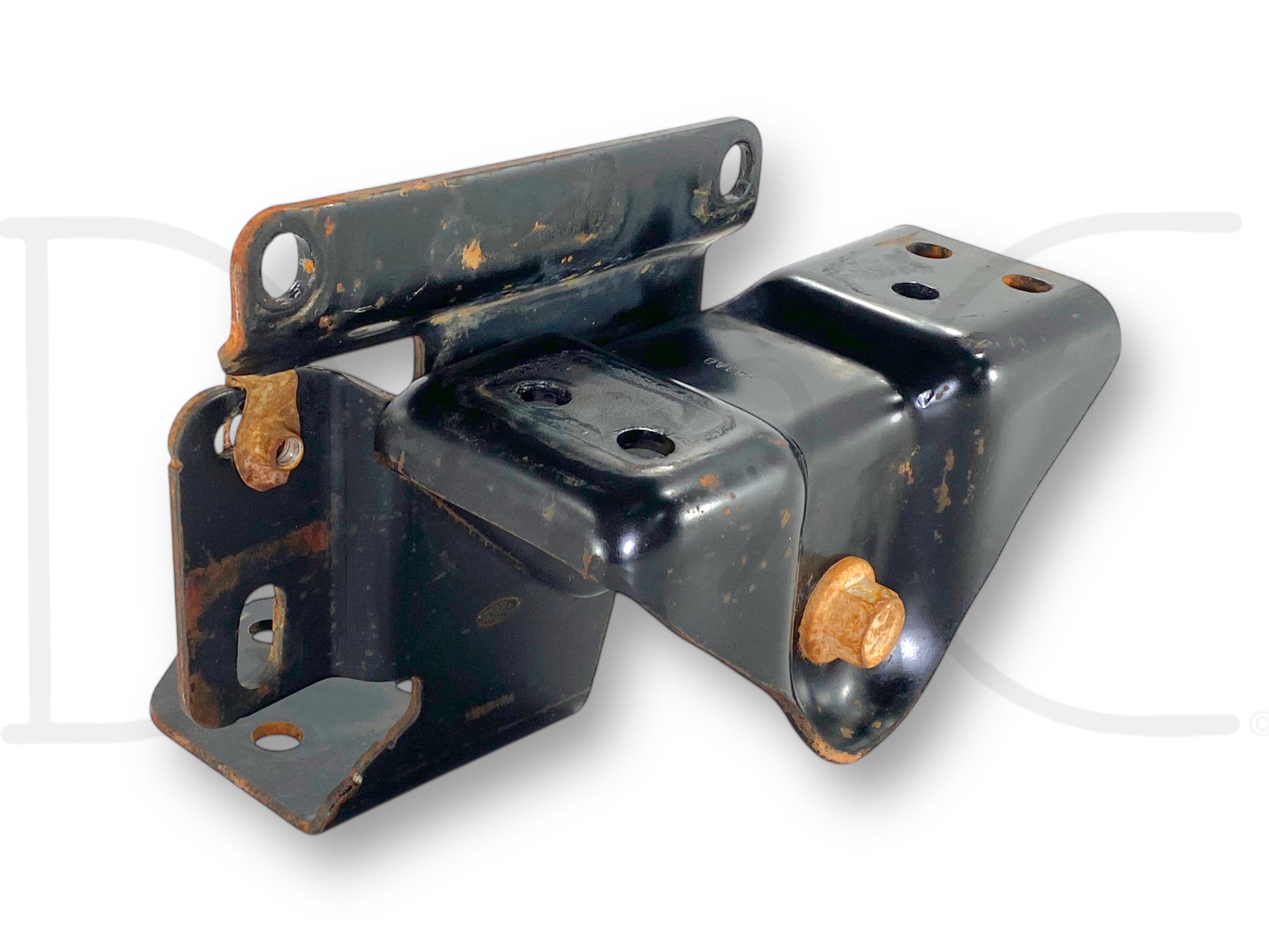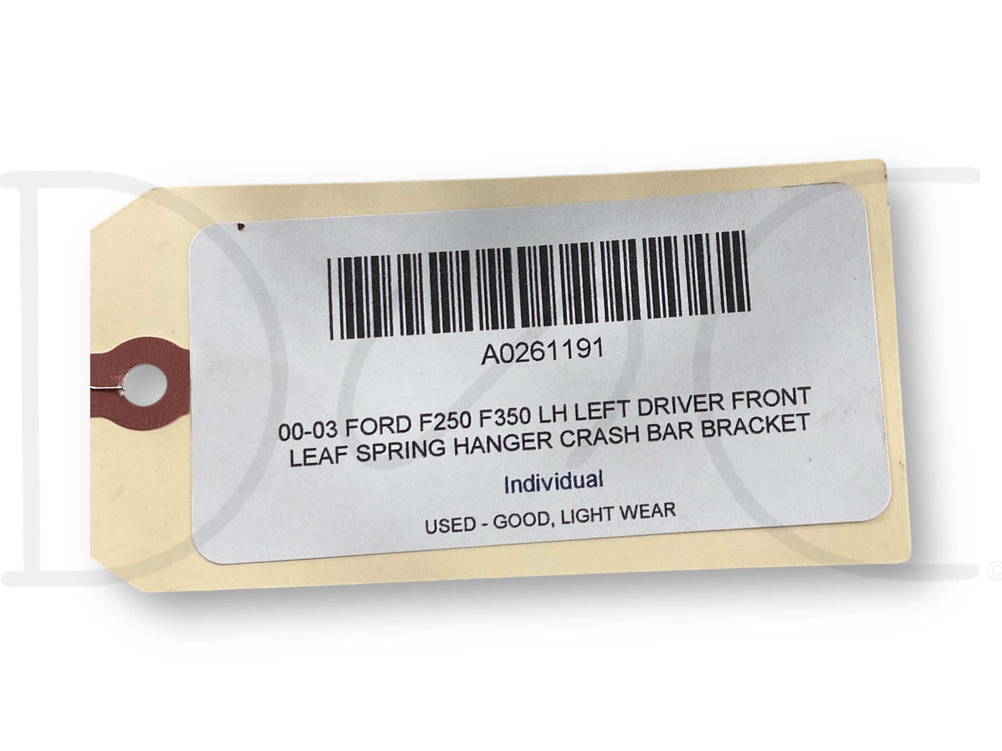 Description: Ford Super Duty left hand driver side front leaf spring hanger / crash bar bracket, OEM