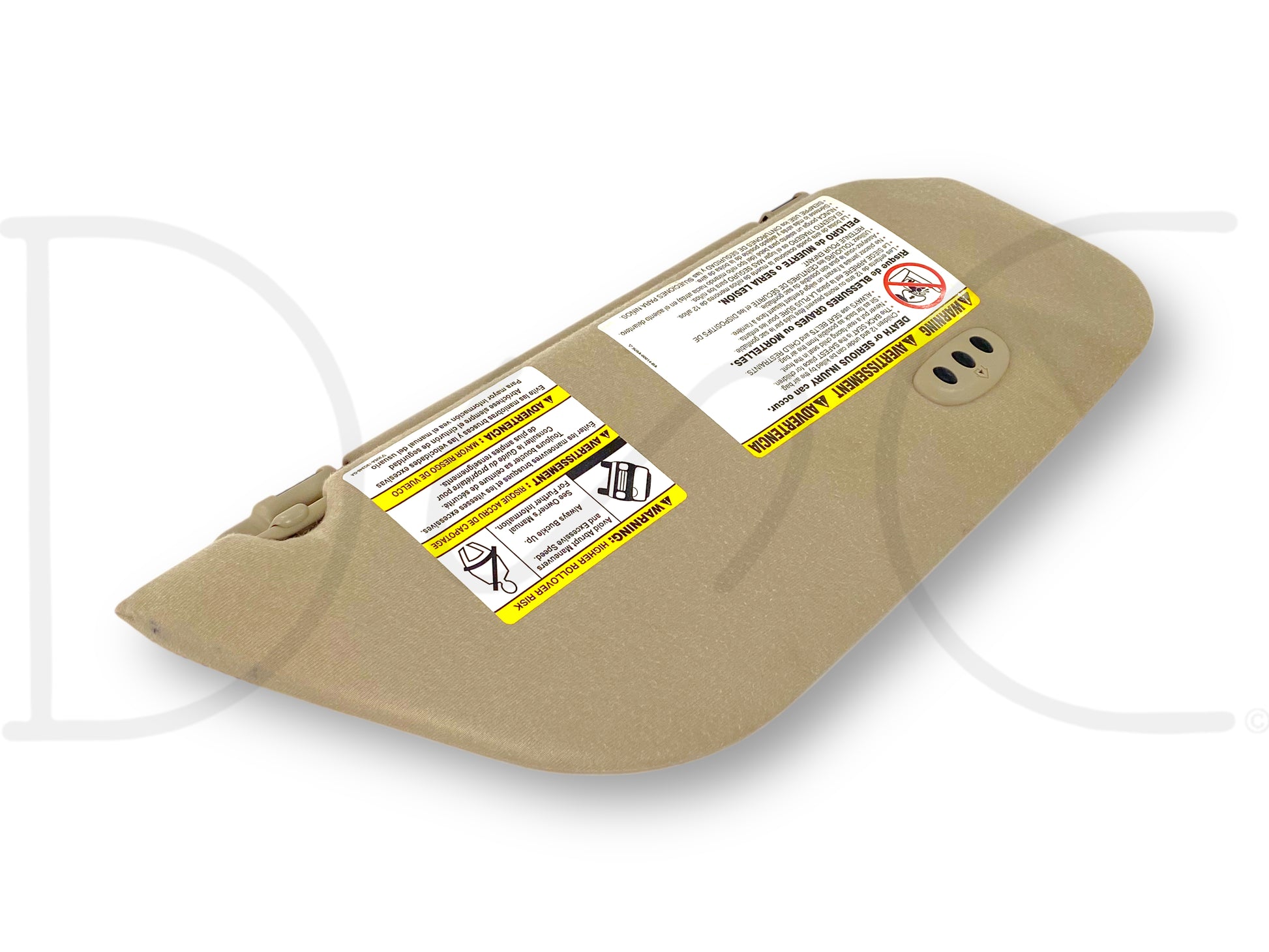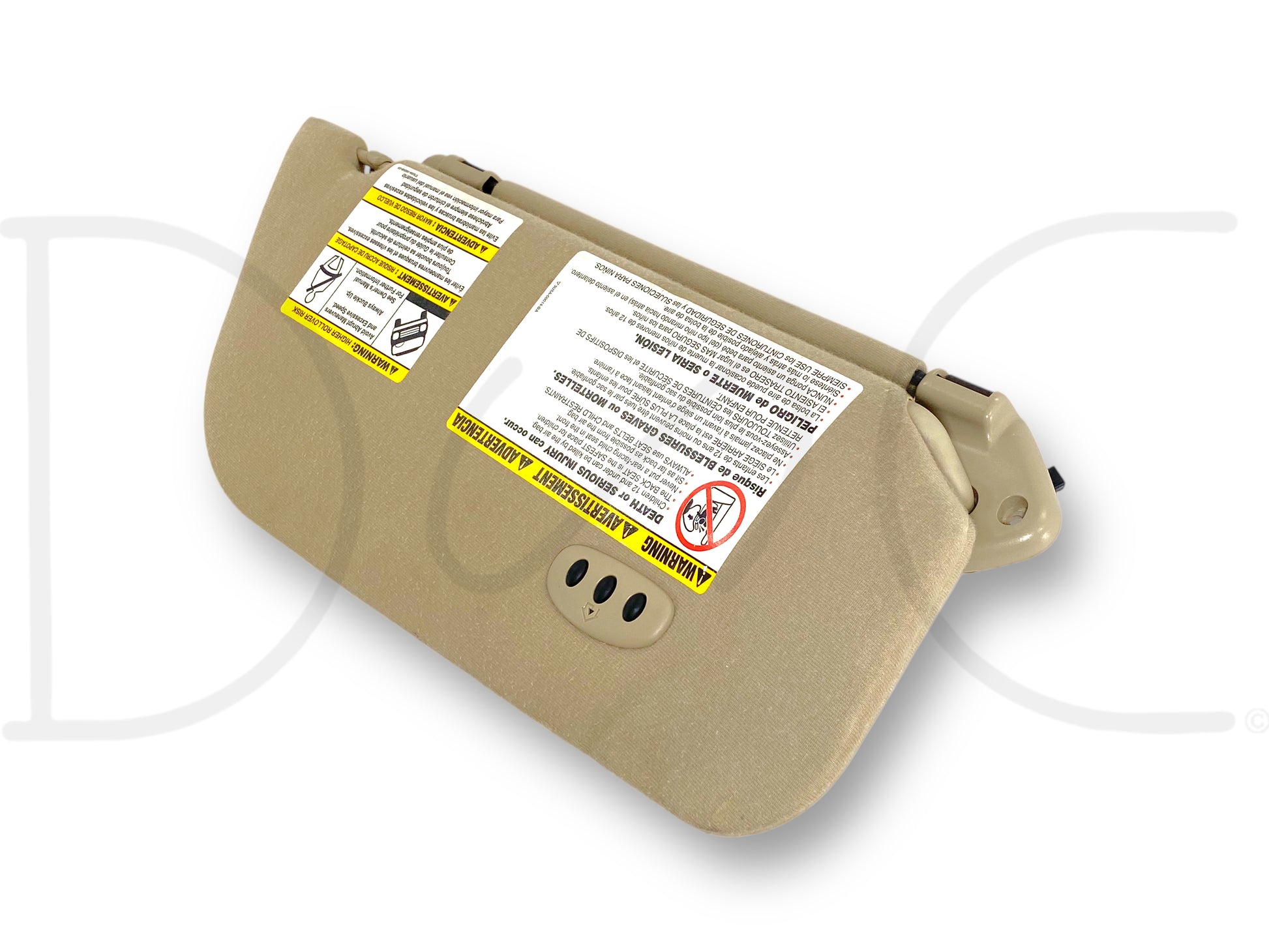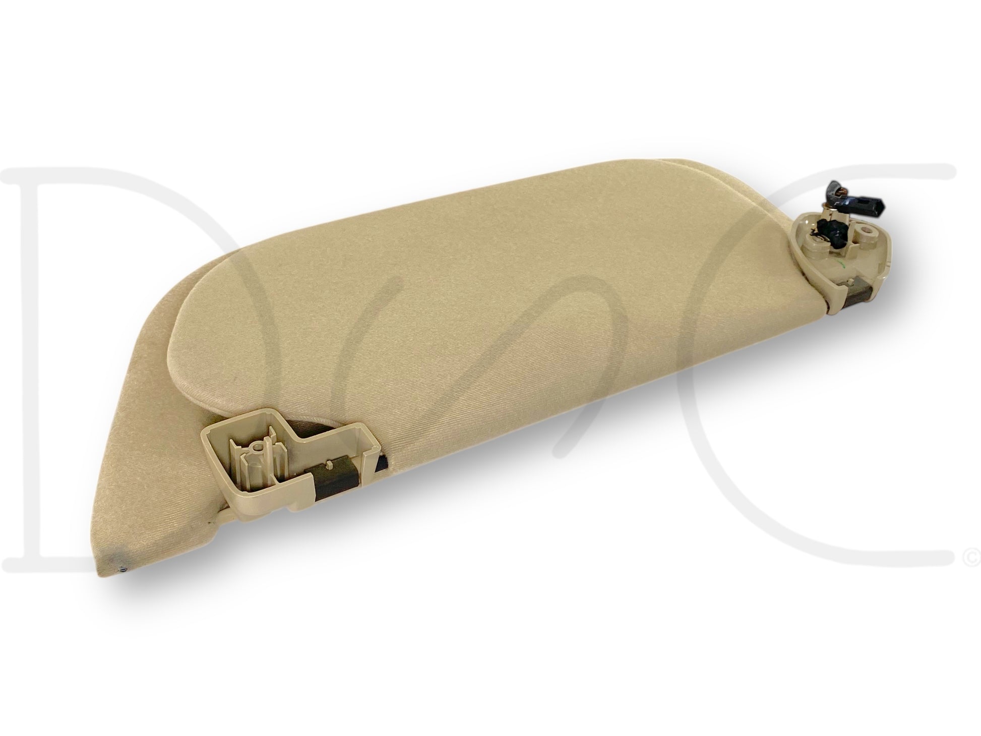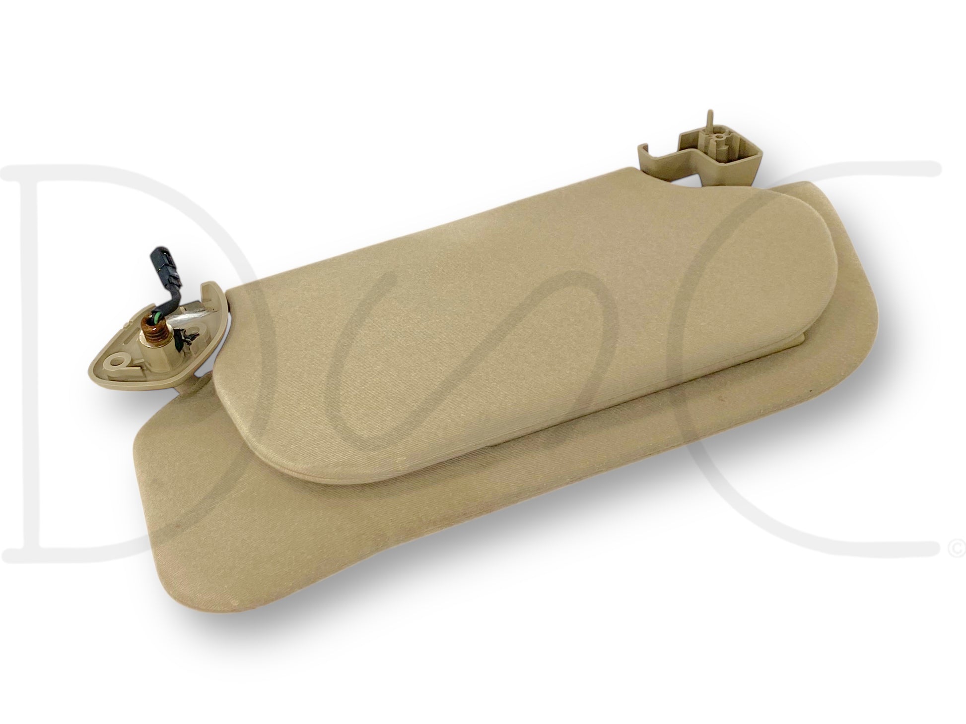 Description: Ford Super Duty left hand driver side sun visor, dual visor assembly, tan, with vanity mirror and homelink buttons, OEM
