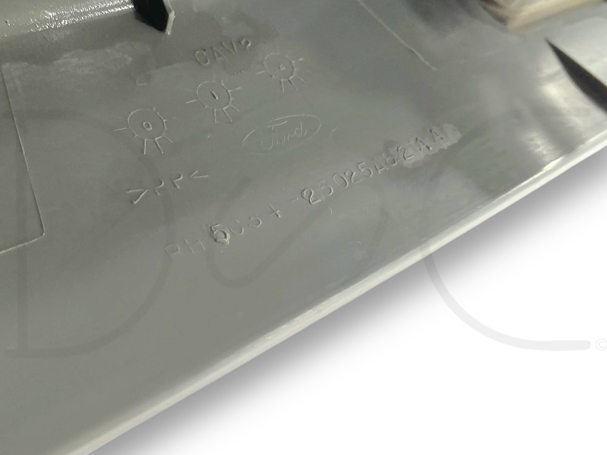 Description: Ford Super Duty front right hand passenger side a pillar trim cover panel, with grab handle, gray, OEM