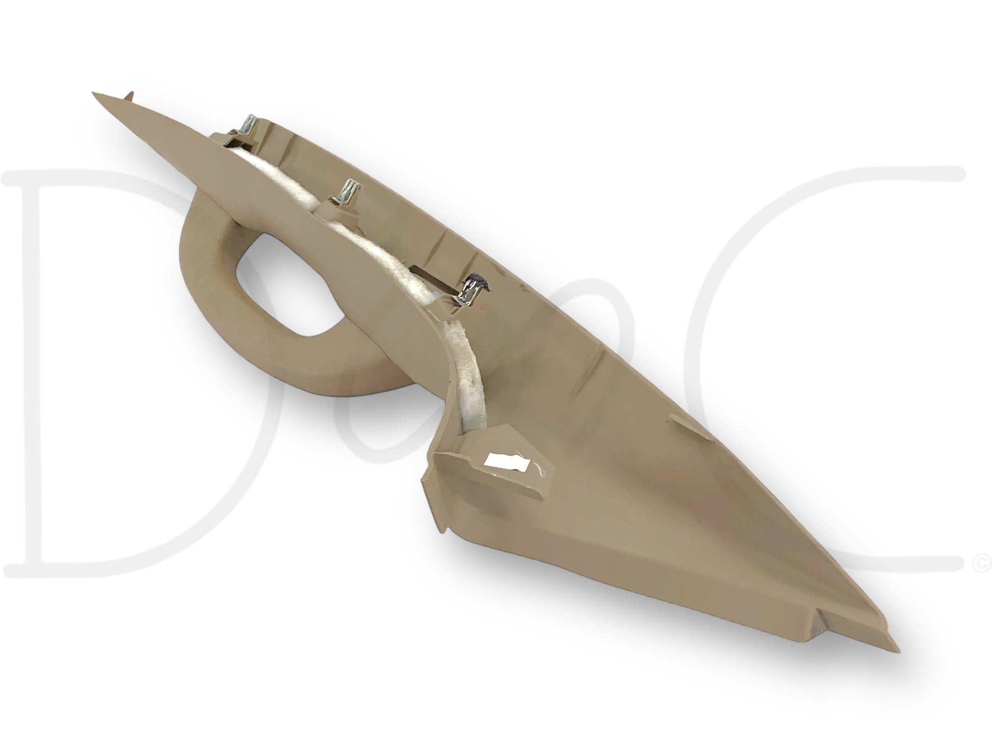 Description: Ford Super Duty front right hand passenger side a pillar trim cover panel, with grab handle, tan, OEM