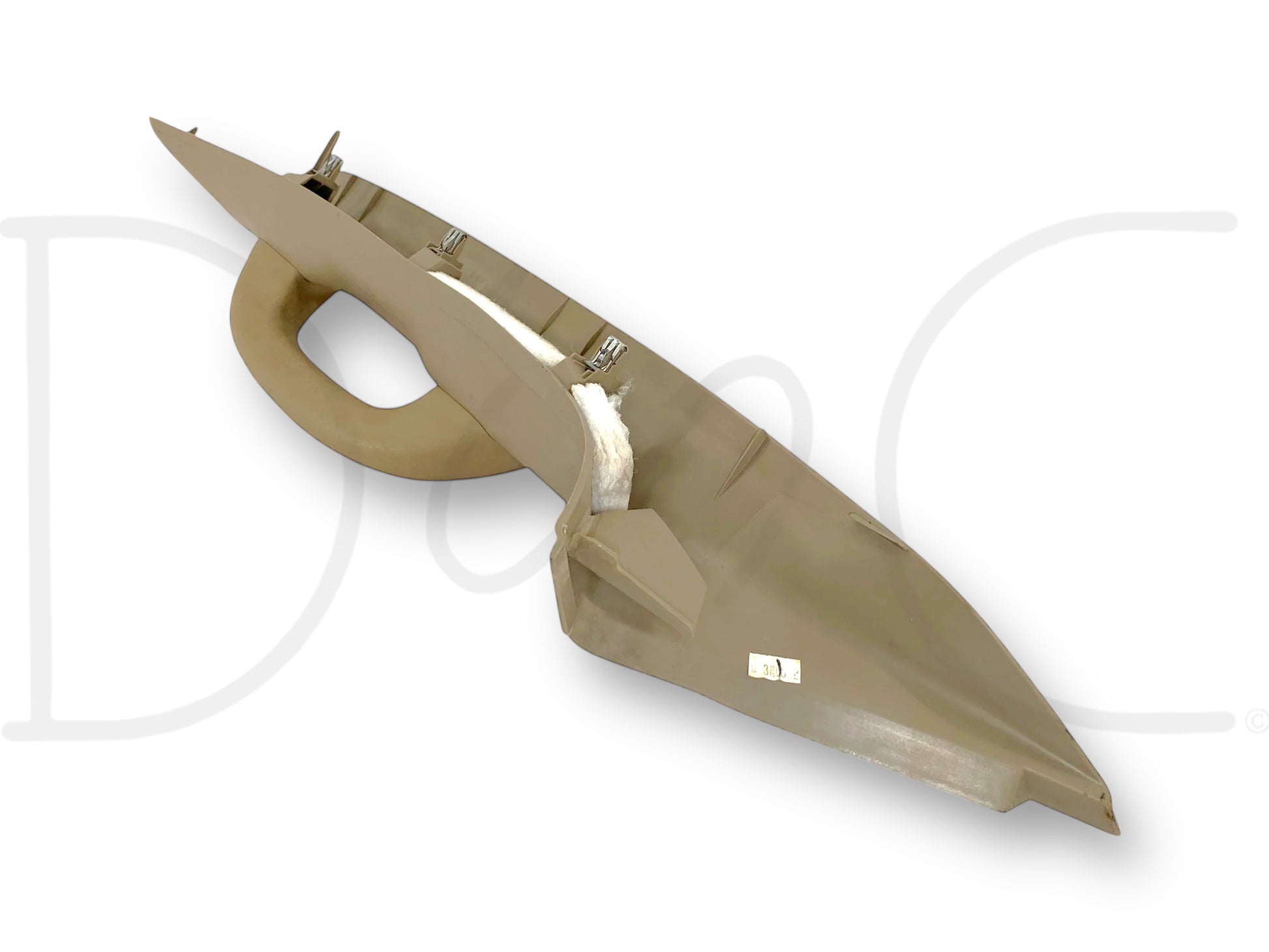 Description: Ford Super Duty front right hand passenger side a pillar trim cover panel, with grab handle, tan OEM