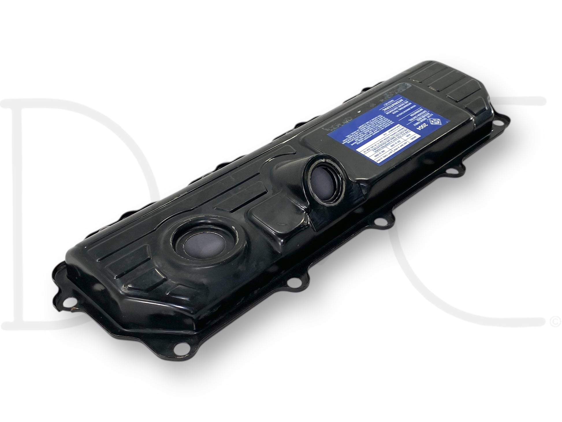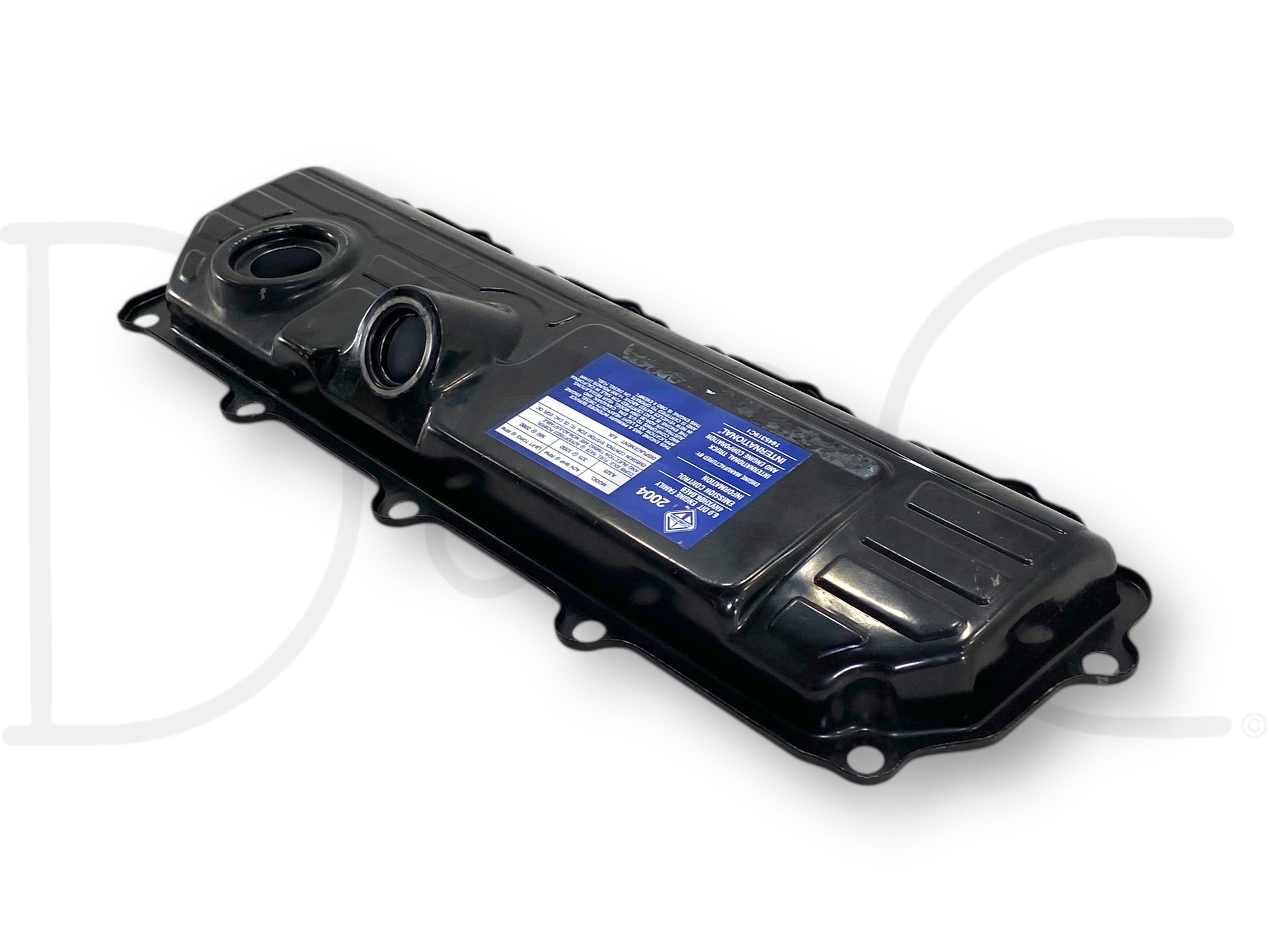 Description: Ford Super Duty 6.0 Powerstroke diesel right hand passenger side engine valve cover, OEM International, m.y. 2004 sticker
