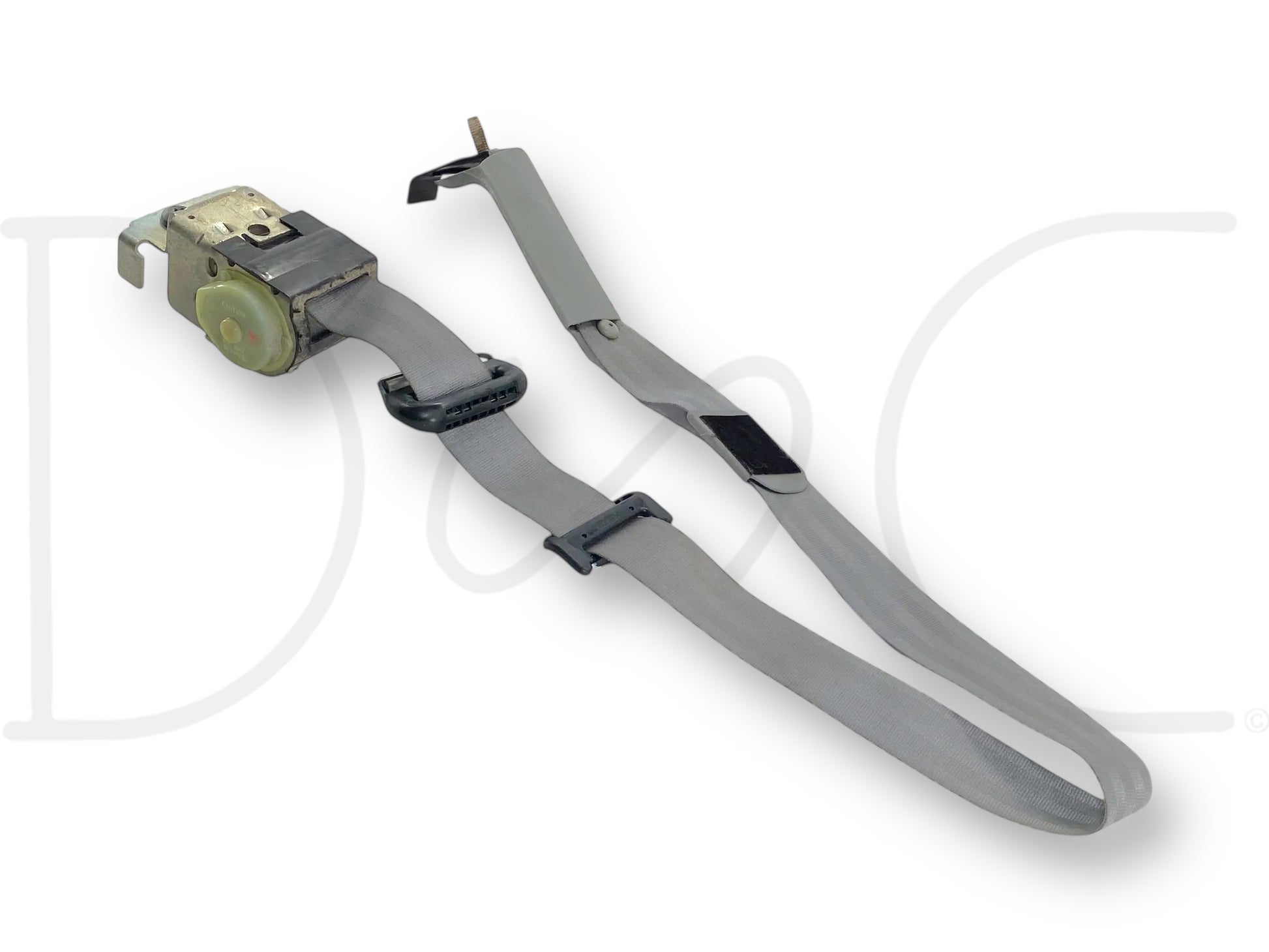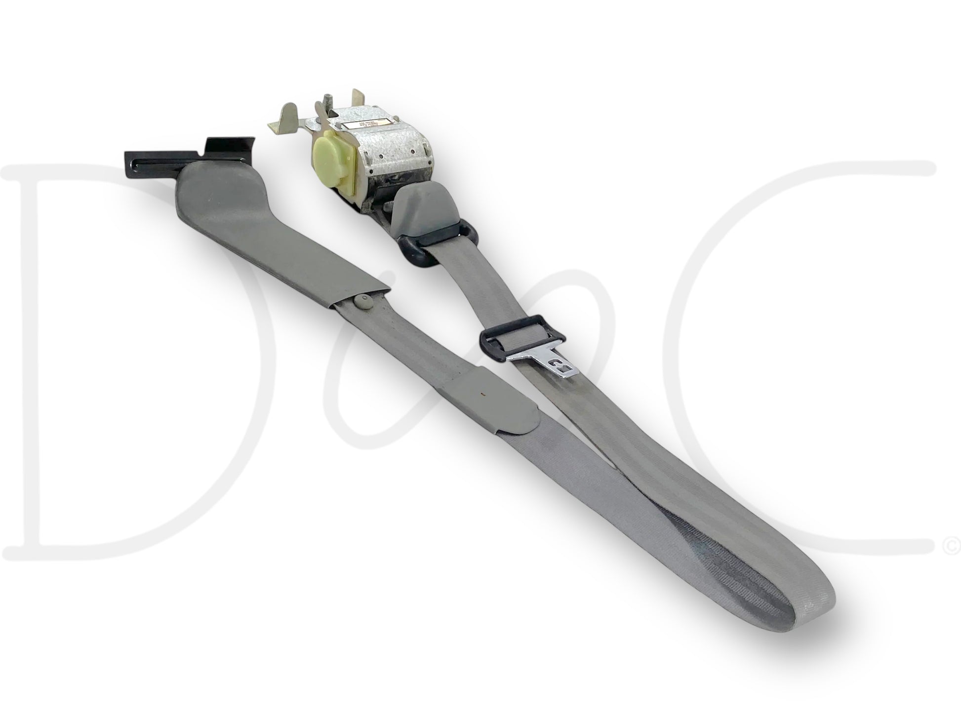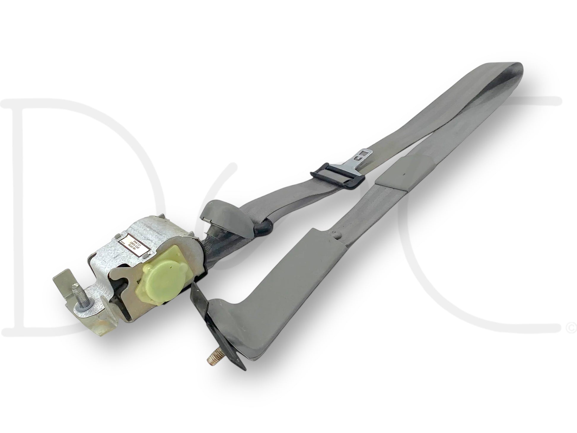 Description: Ford Super Duty crew cab rear right hand passenger side seat belt assembly, gray, OEM