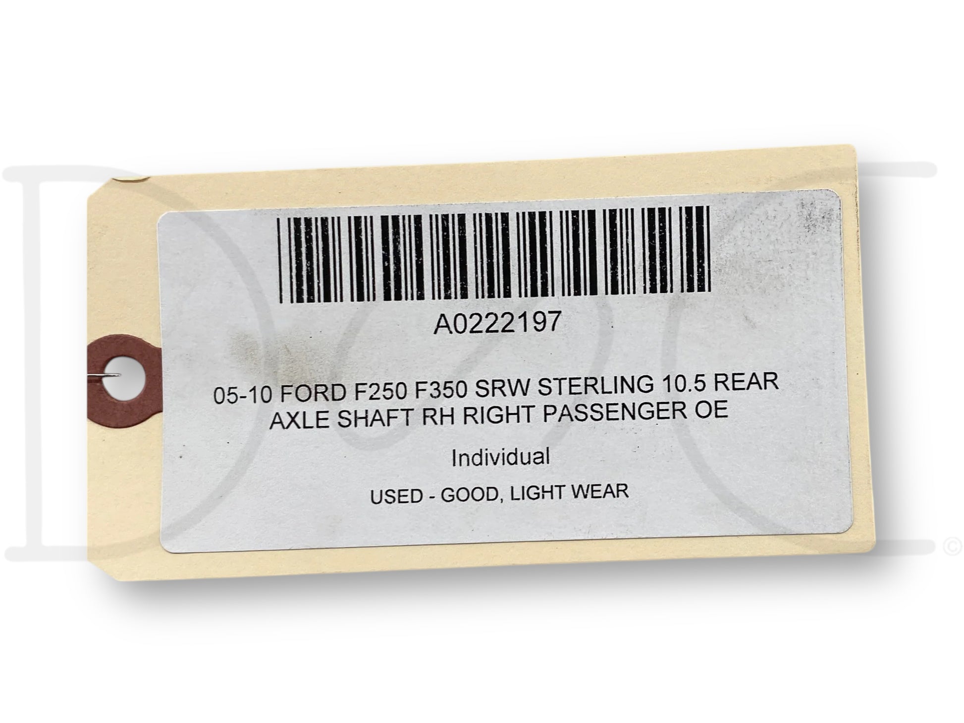 Description: Ford Super Duty right hand passenger side sterling 10.5 rear axle shaft, for pickup trucks; length from inside of flange to end is ~35-9/16"