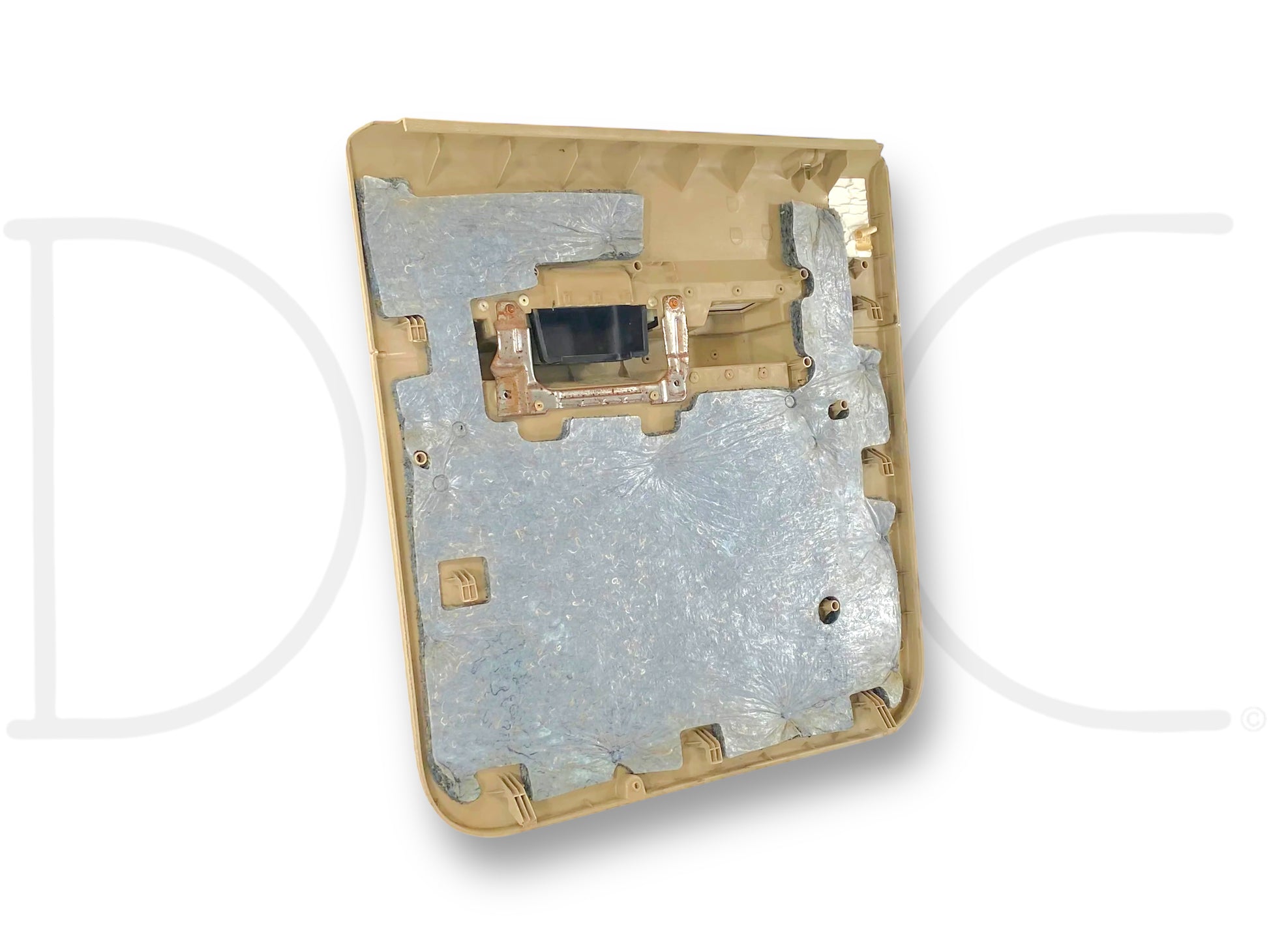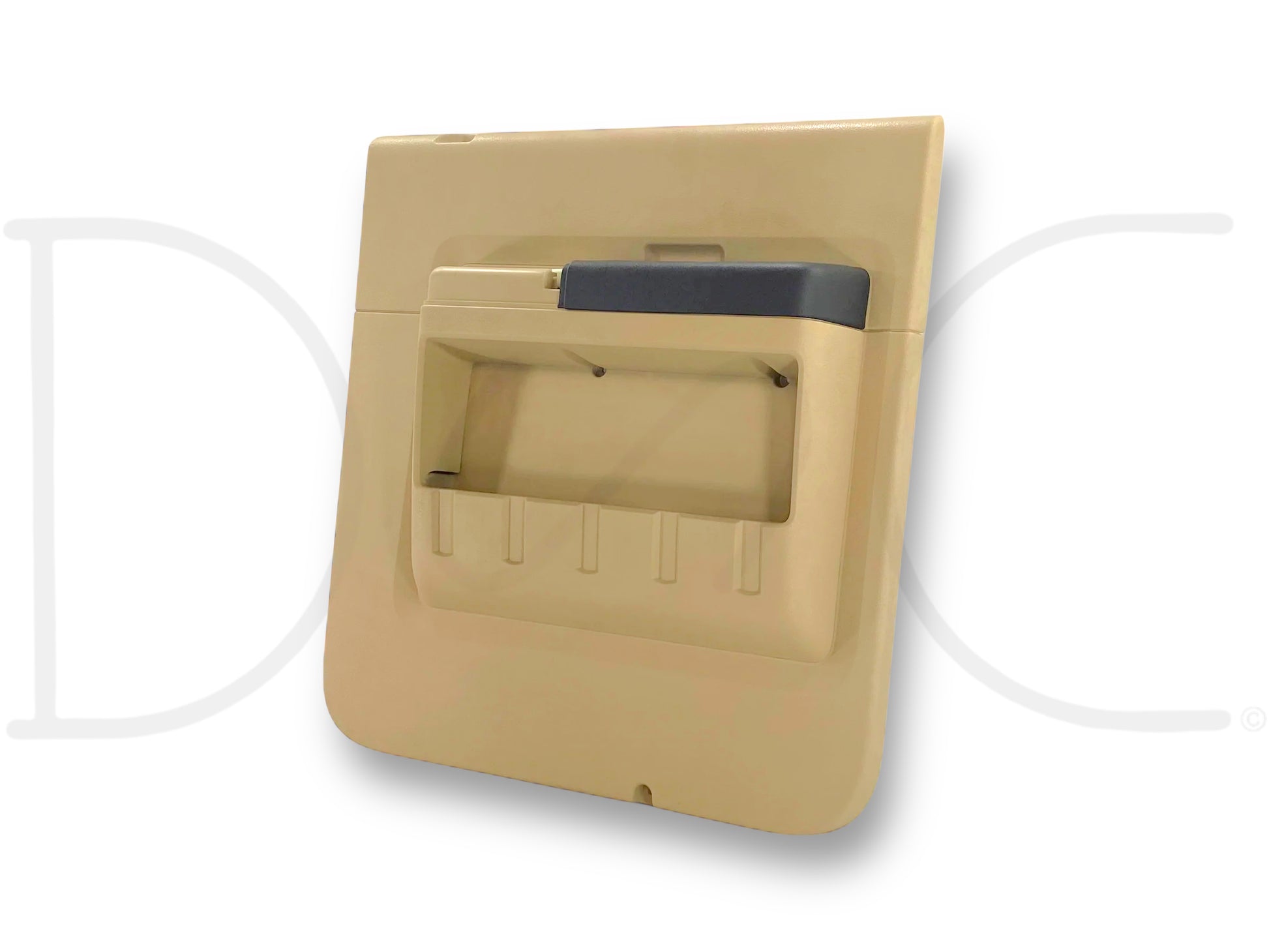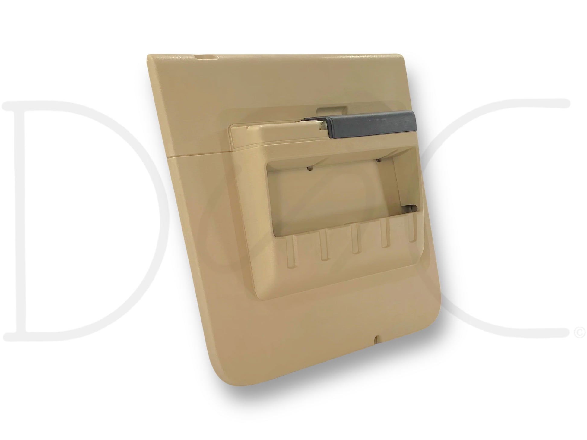 Description: Ford Super Duty right hand passenger side rear interior door panel card, camel tan, for trucks with power windows, OEM