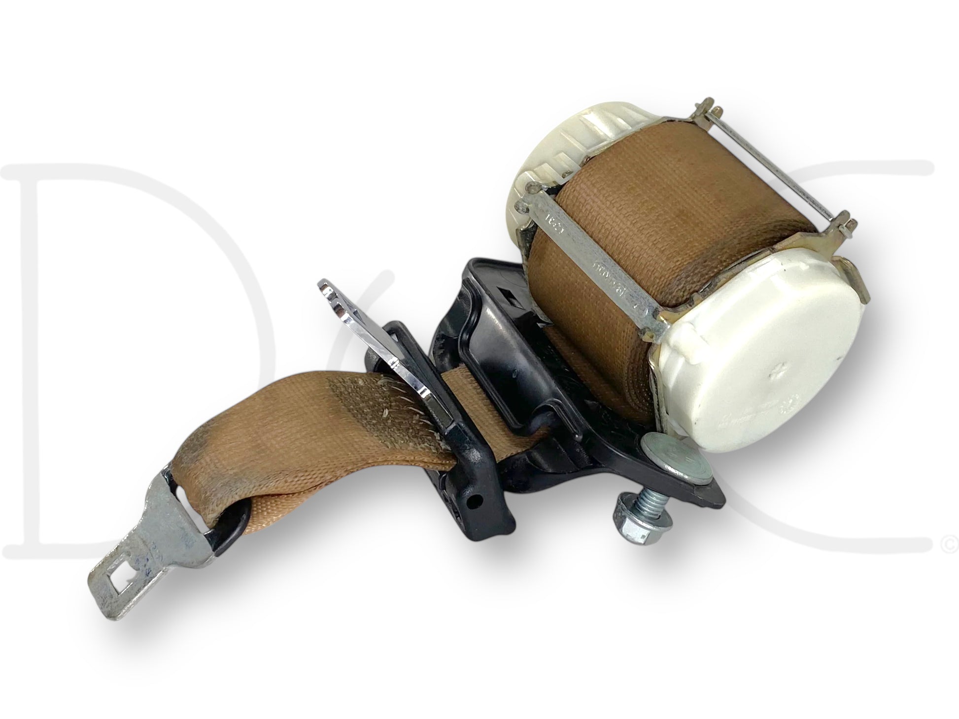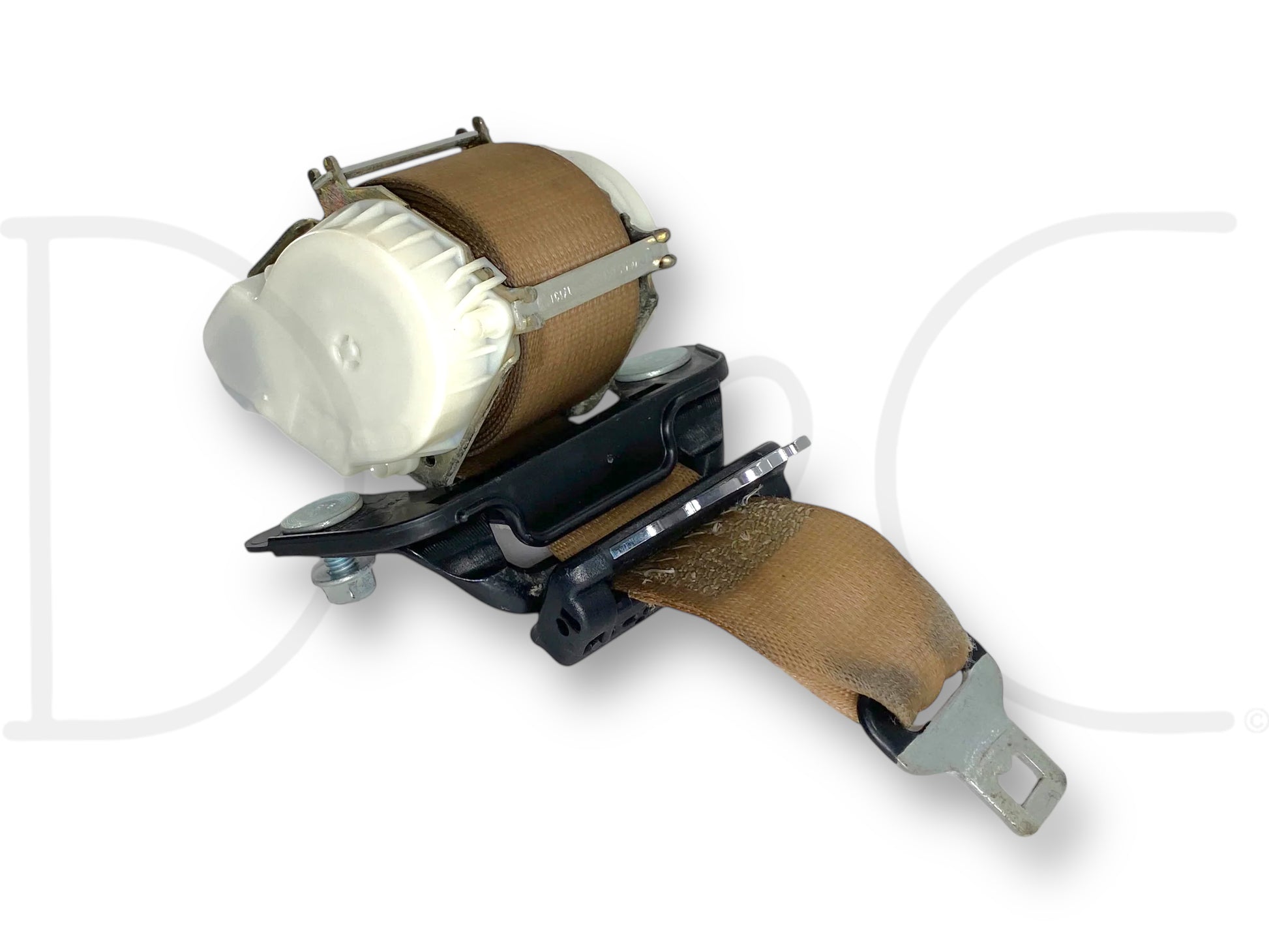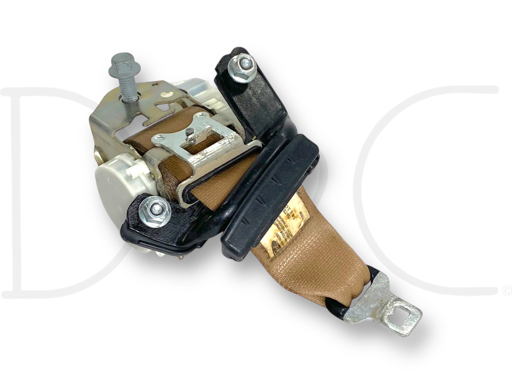 Description: Ford Super Duty center seat belt, mounts to back wall of cab, tan OEM