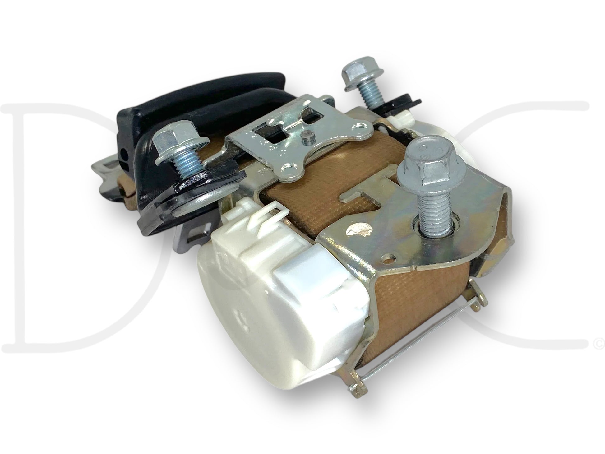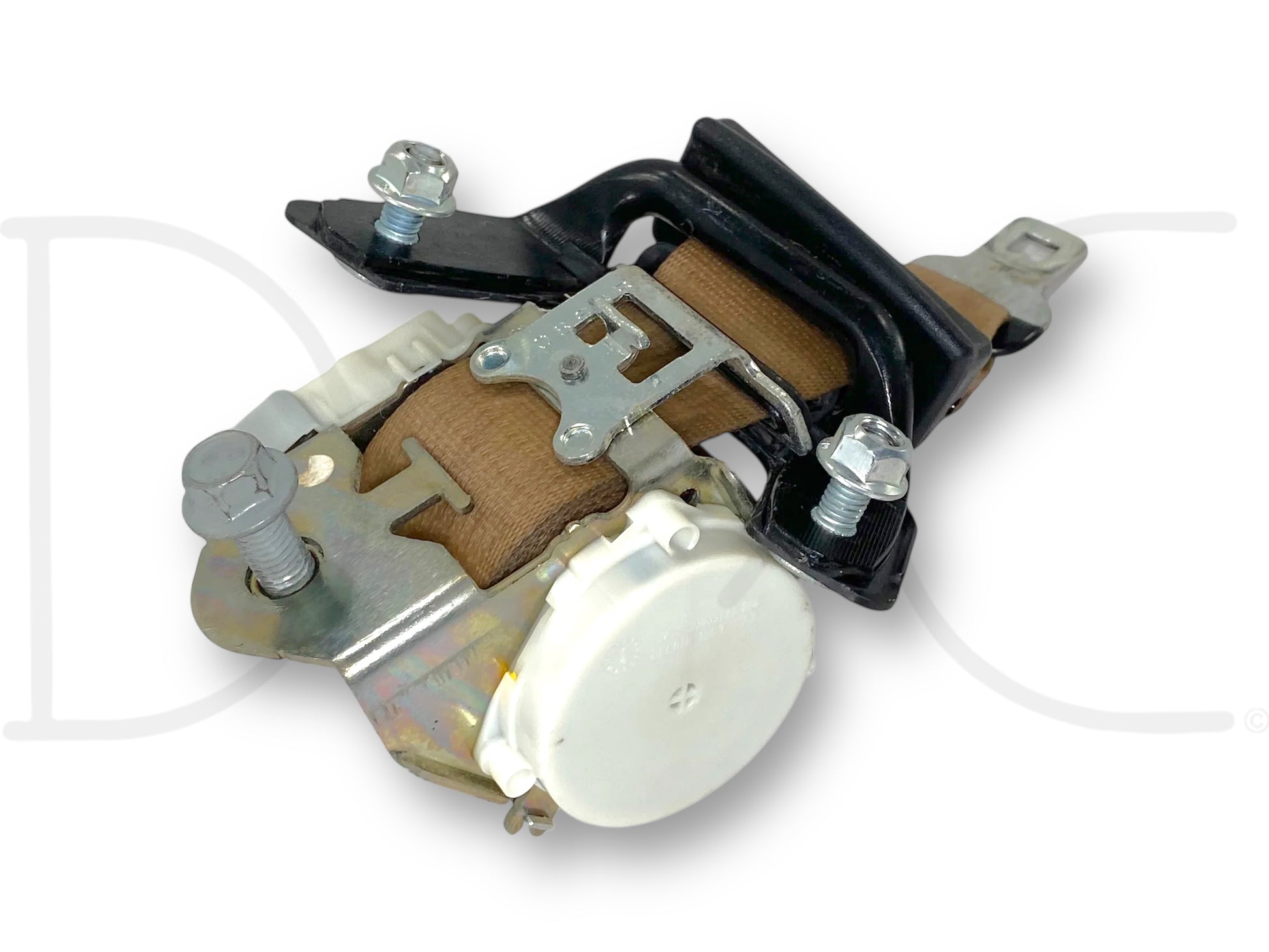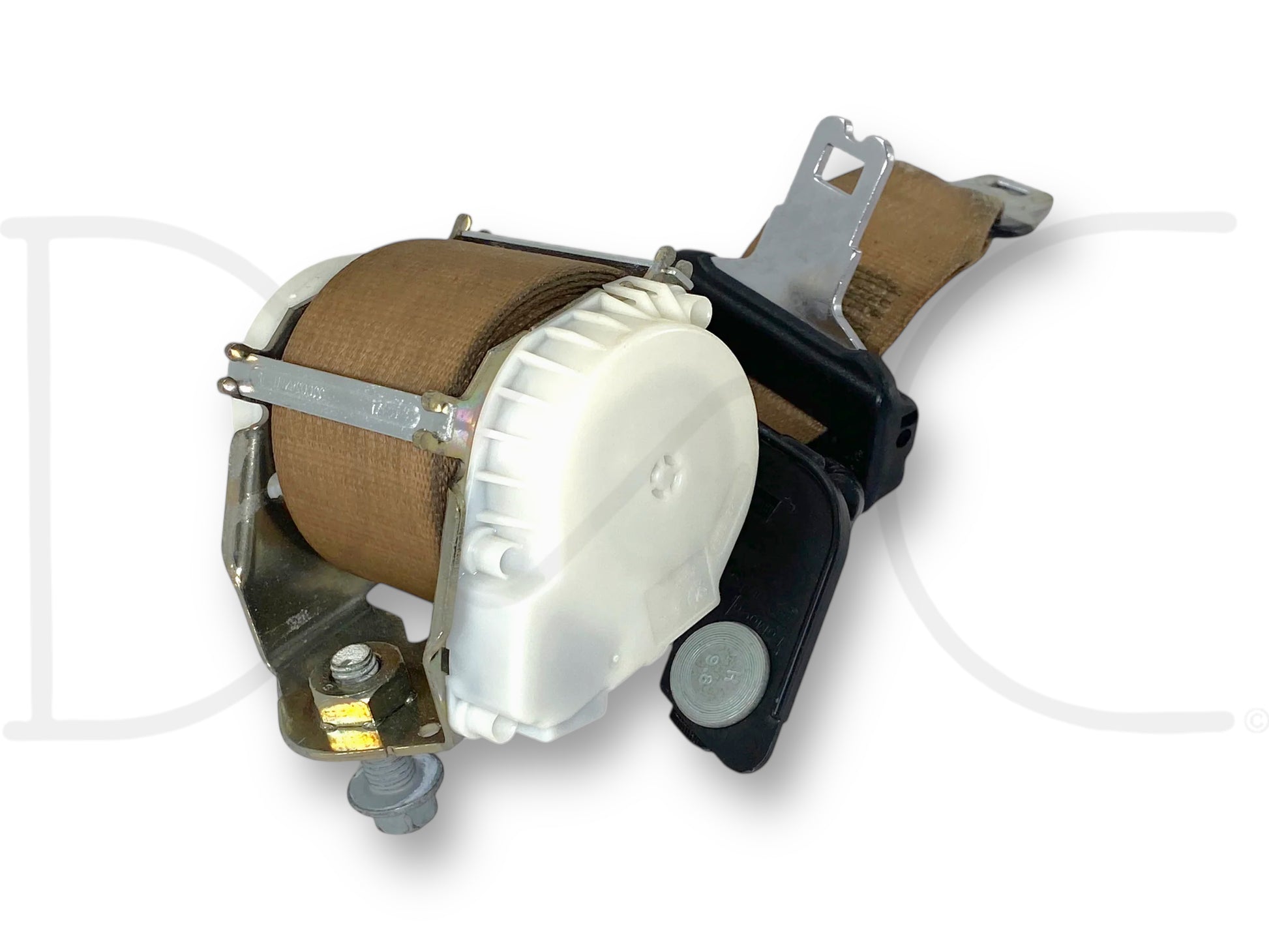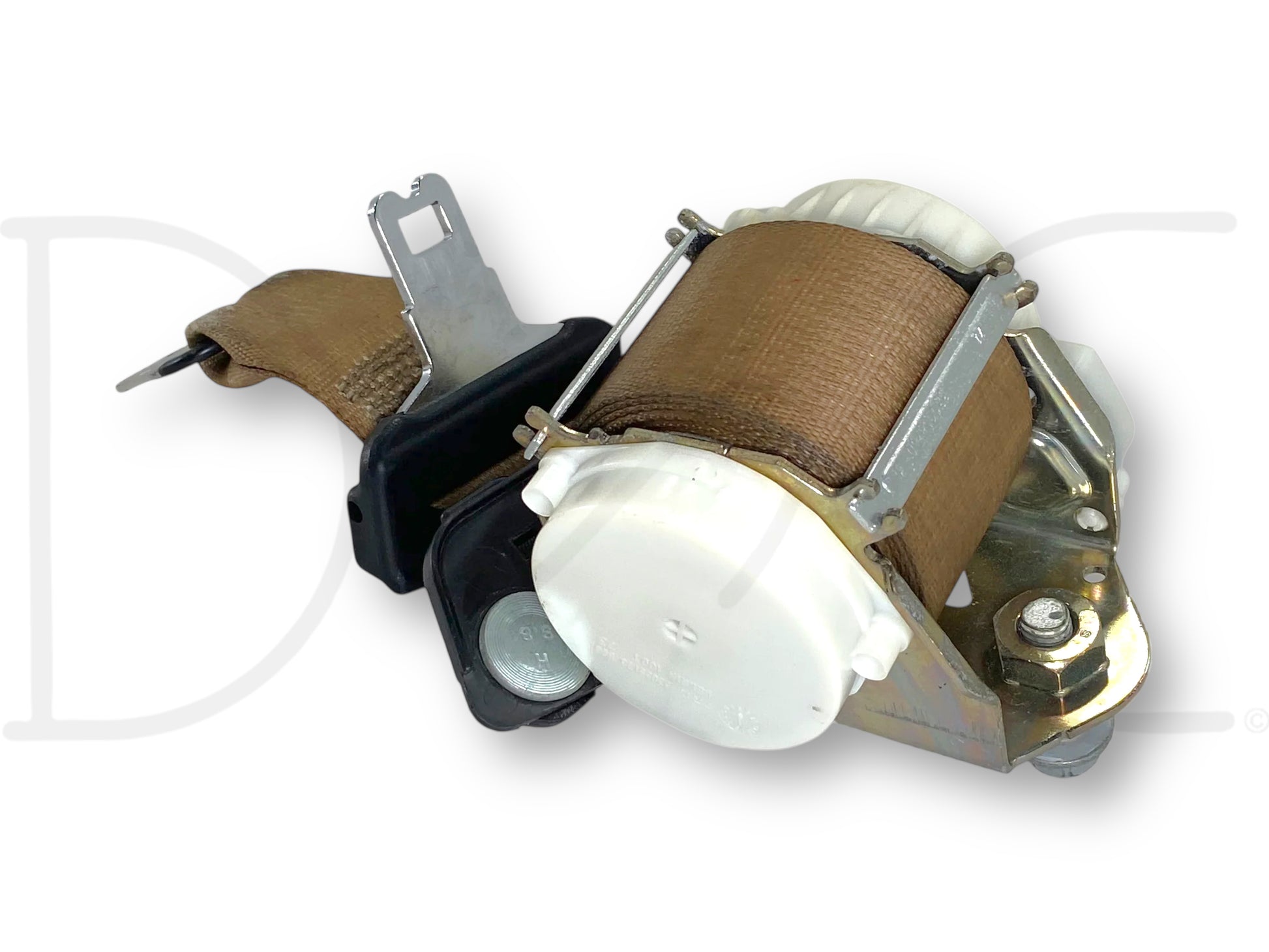 Description: Ford Super Duty center seat belt, mounts to back wall of cab, tan OEM