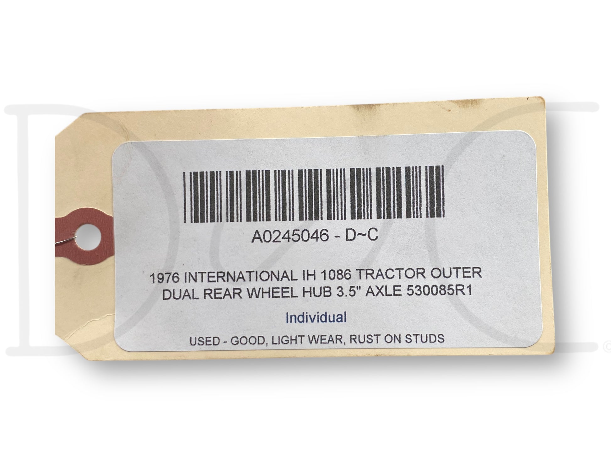 Description: outer dual rear wheel 9 bolt hub, for 3-1/2" axle shaft, price is for one - removed from a 1976 International harvester 1086 A/C cab tractor 6.8L 414 ci diesel 8 speed manual transmission w/ ta 2WD SN: 8931 - compatible with select 1086 1486