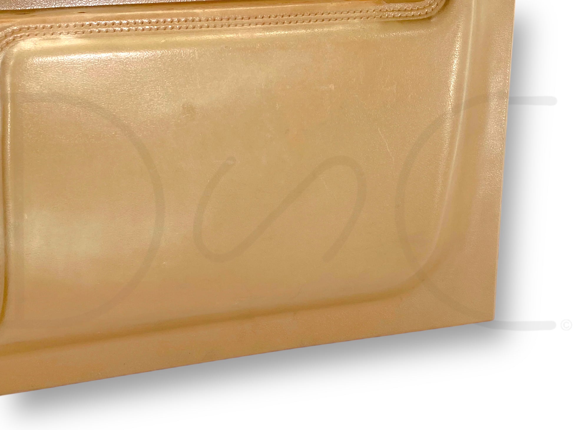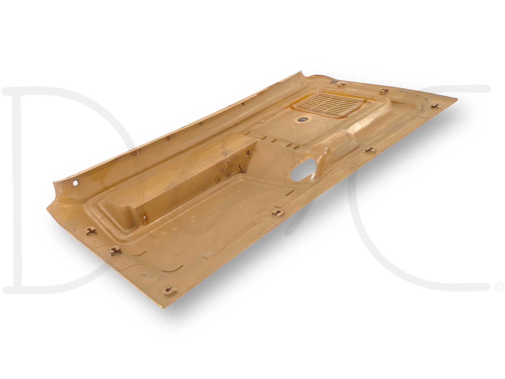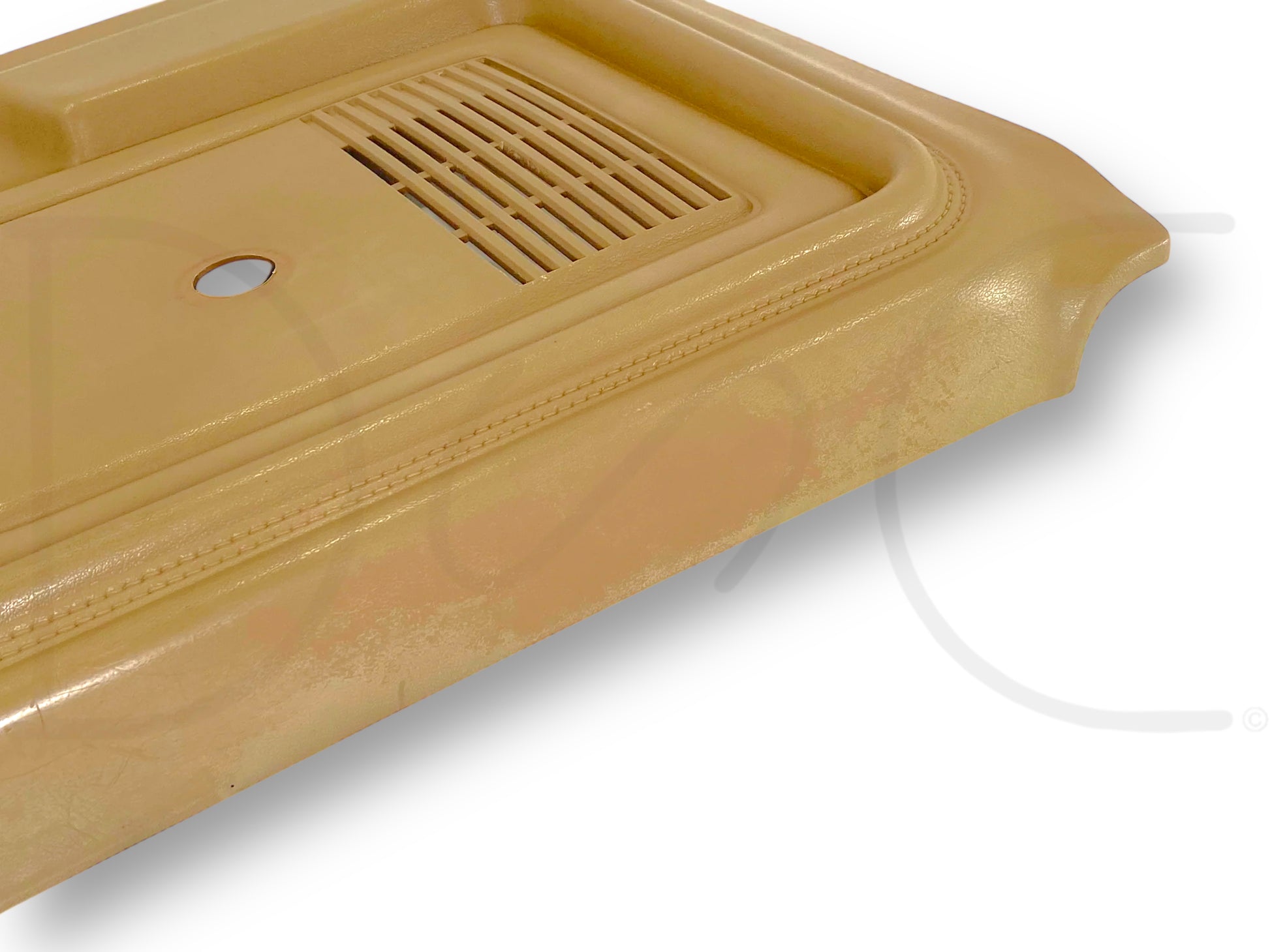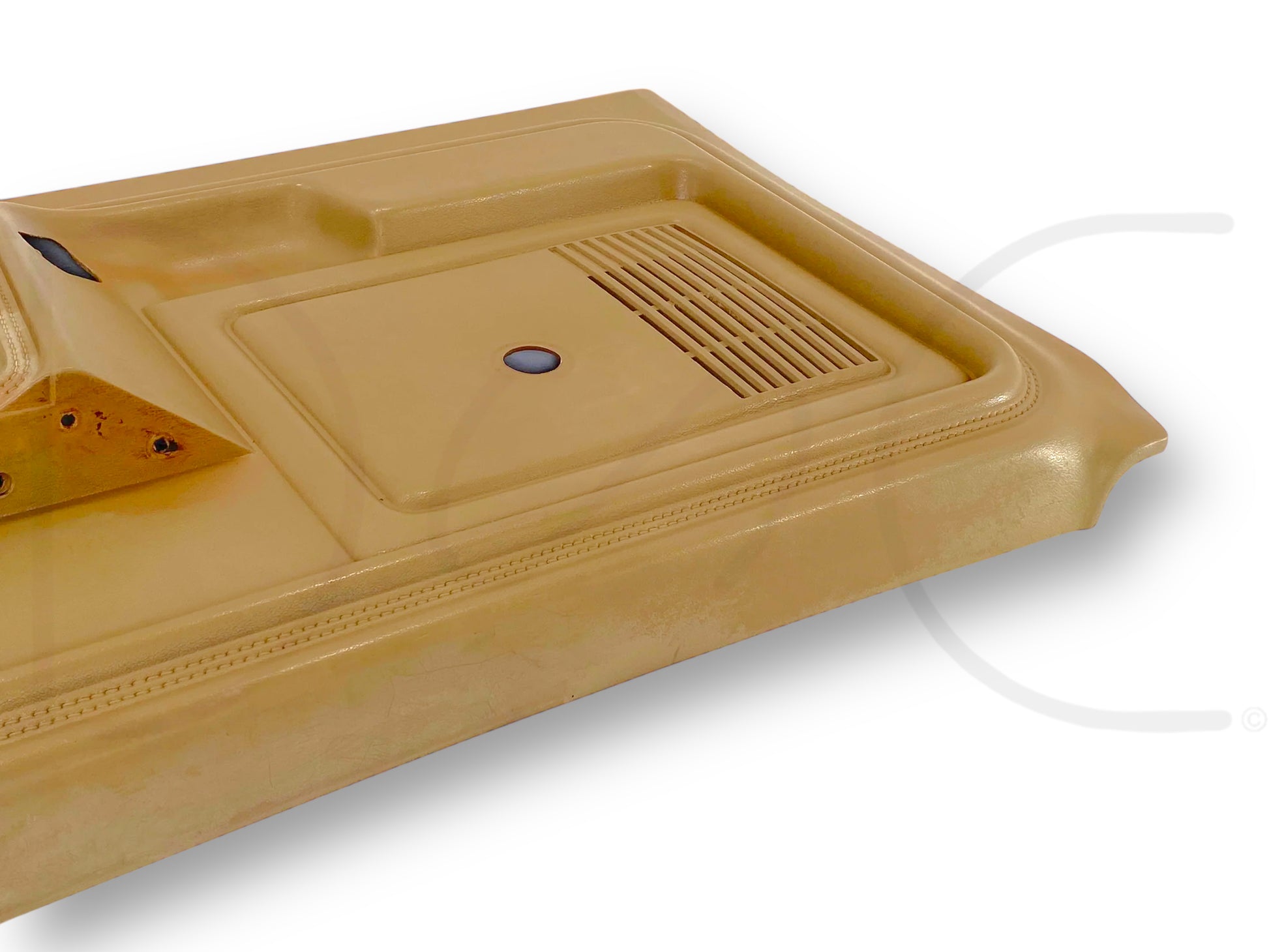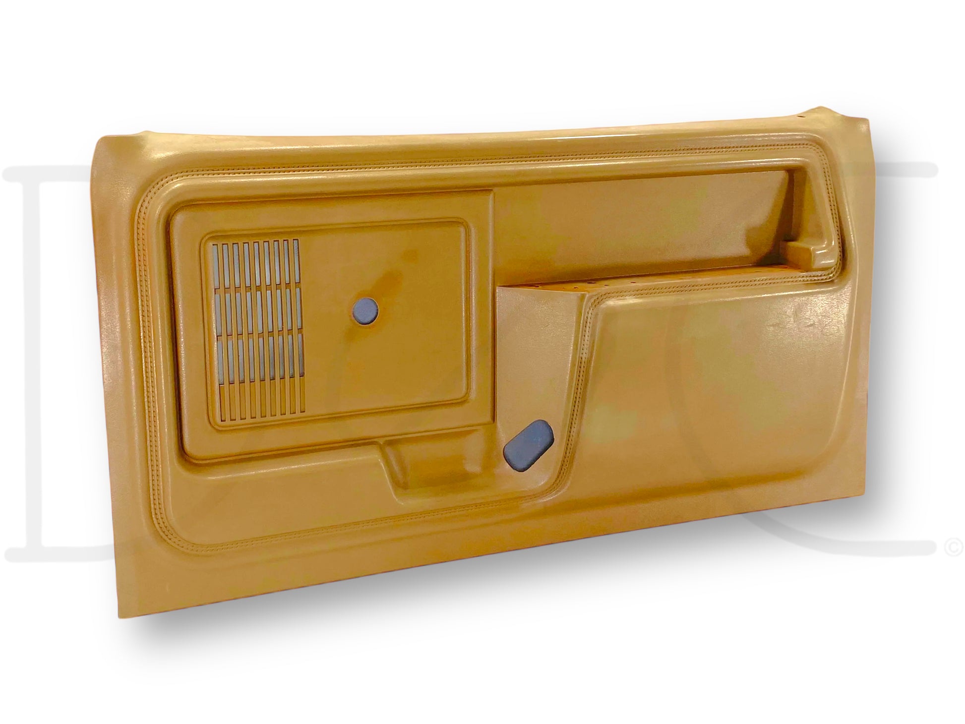 Description: Ford truck right hand passenger side front interior door panel card, tan, for trucks with manual windows & locks, OEM