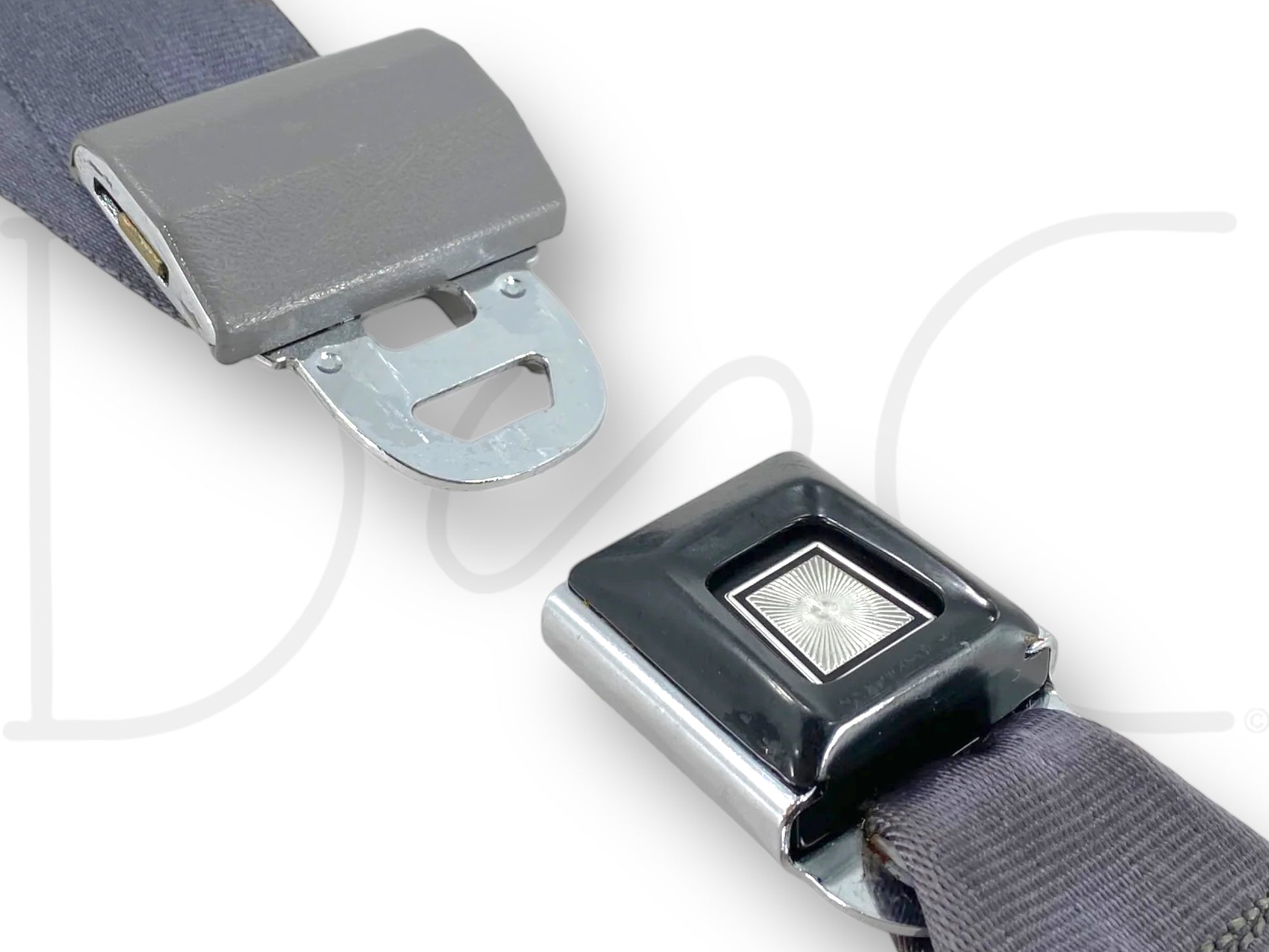 Description: Ford truck crew cab rear center seat lap belt and latch assembly, opal gray, OEM