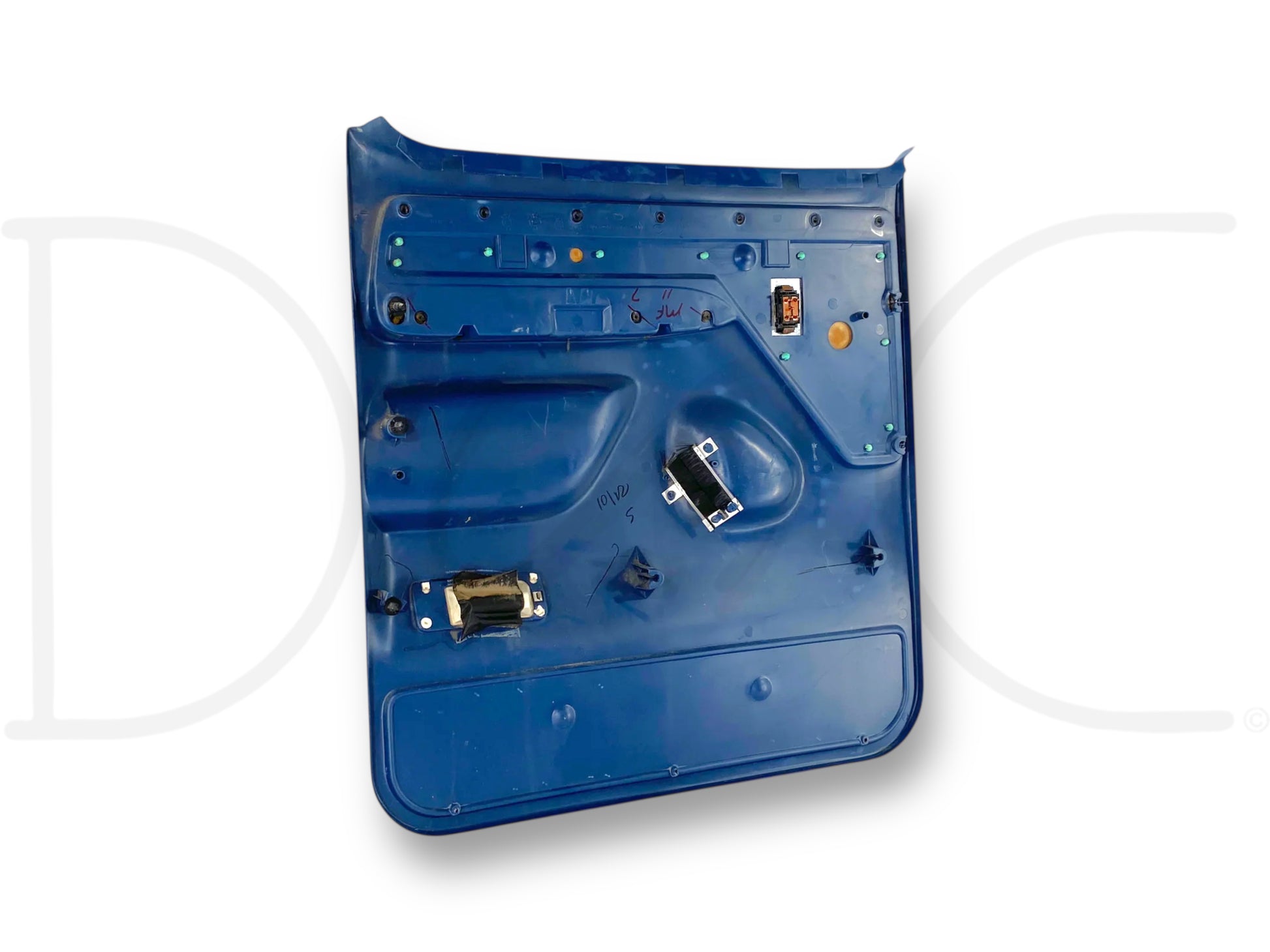Description: Ford truck right hand passenger side rear interior door panel card, blue, for trucks with power windows, OEM