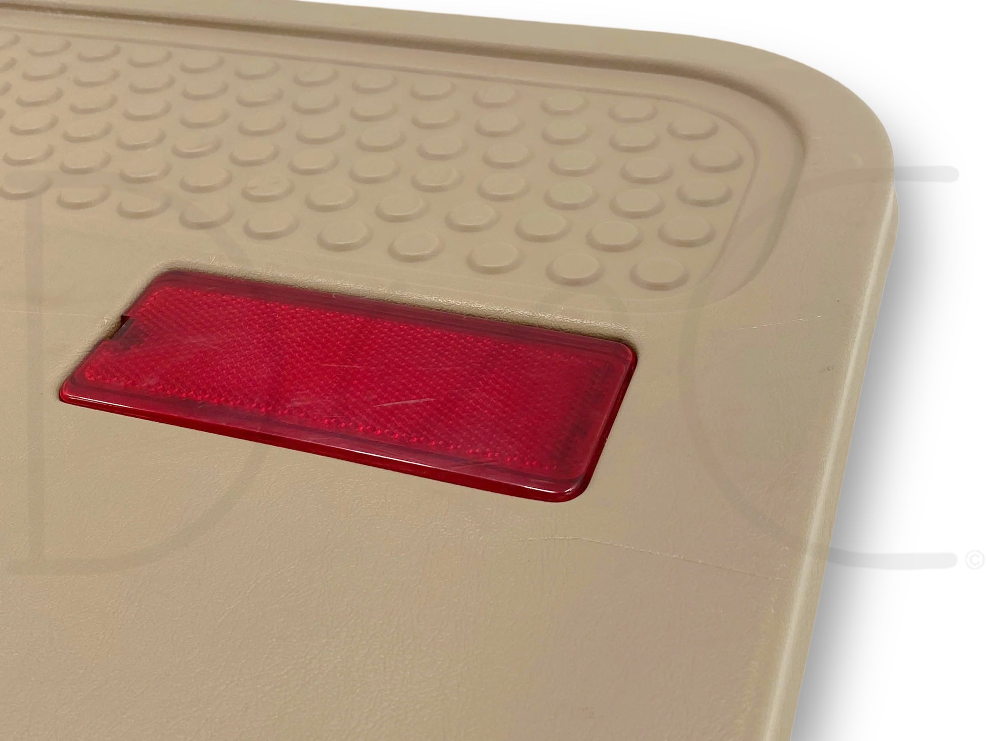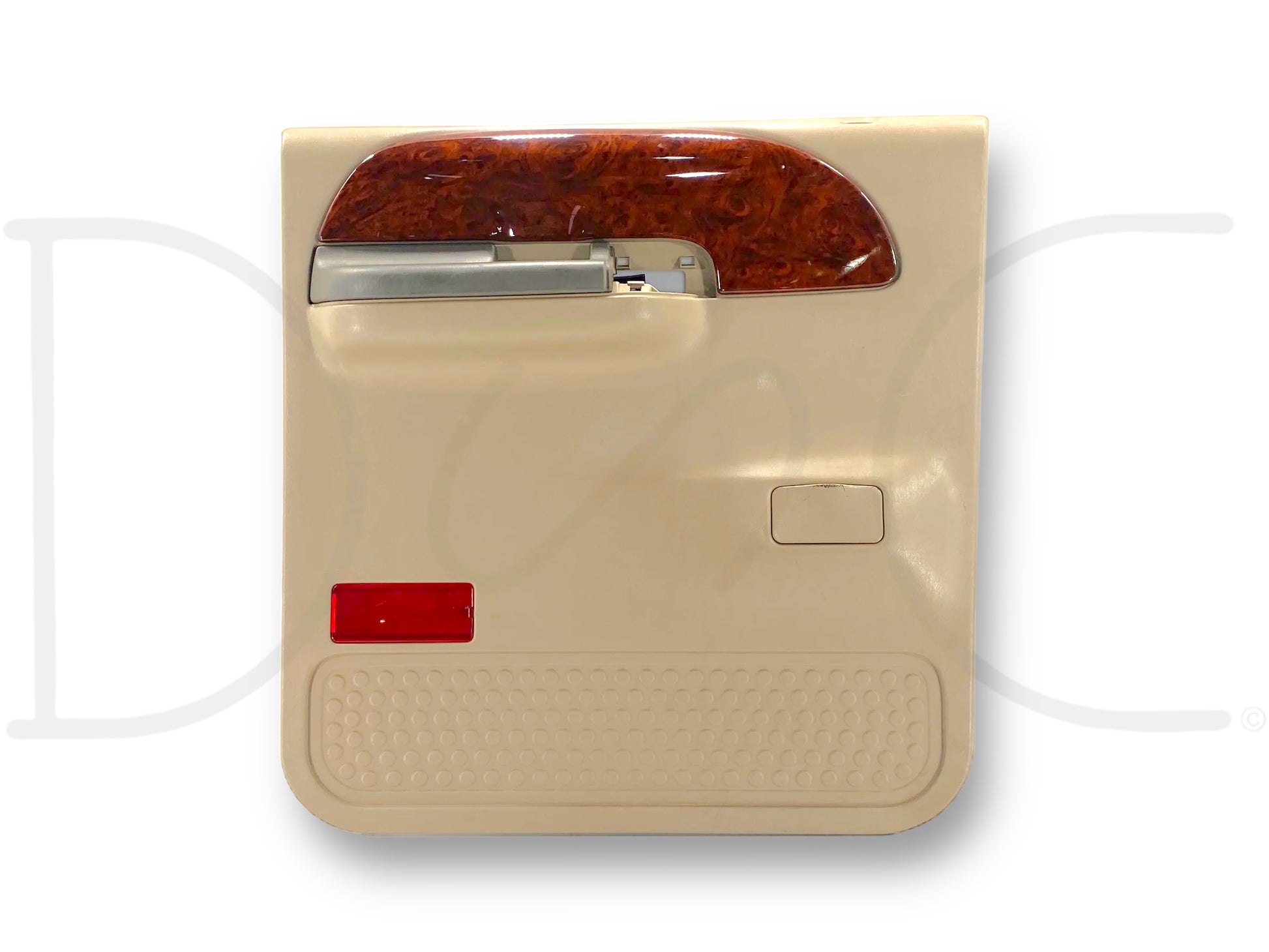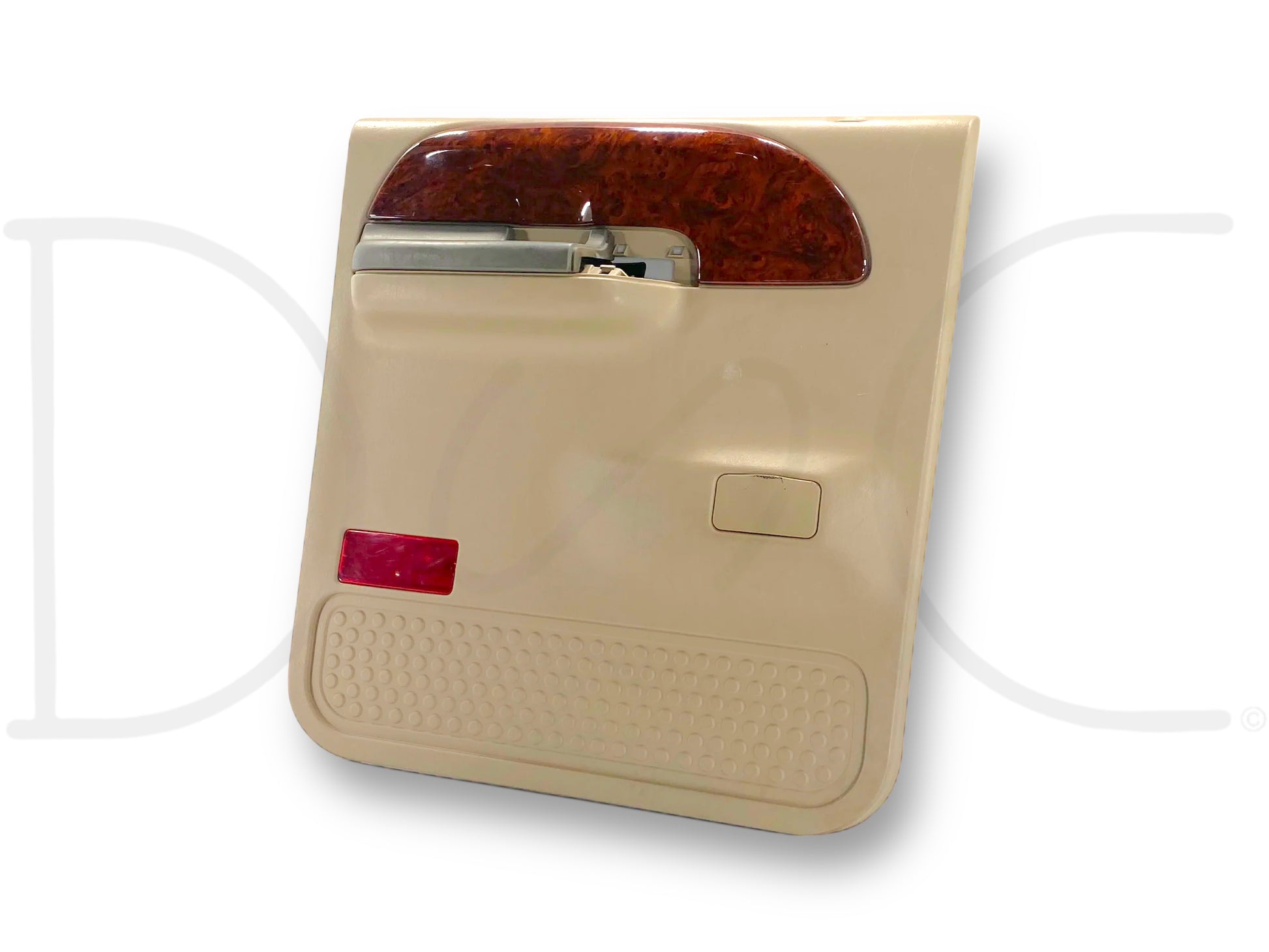 Description: Ford Super Duty left hand driver side rear interior door panel card, tan, for trucks with power windows, OEM
