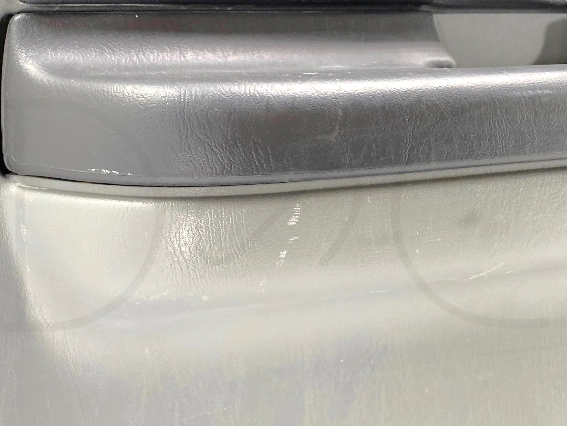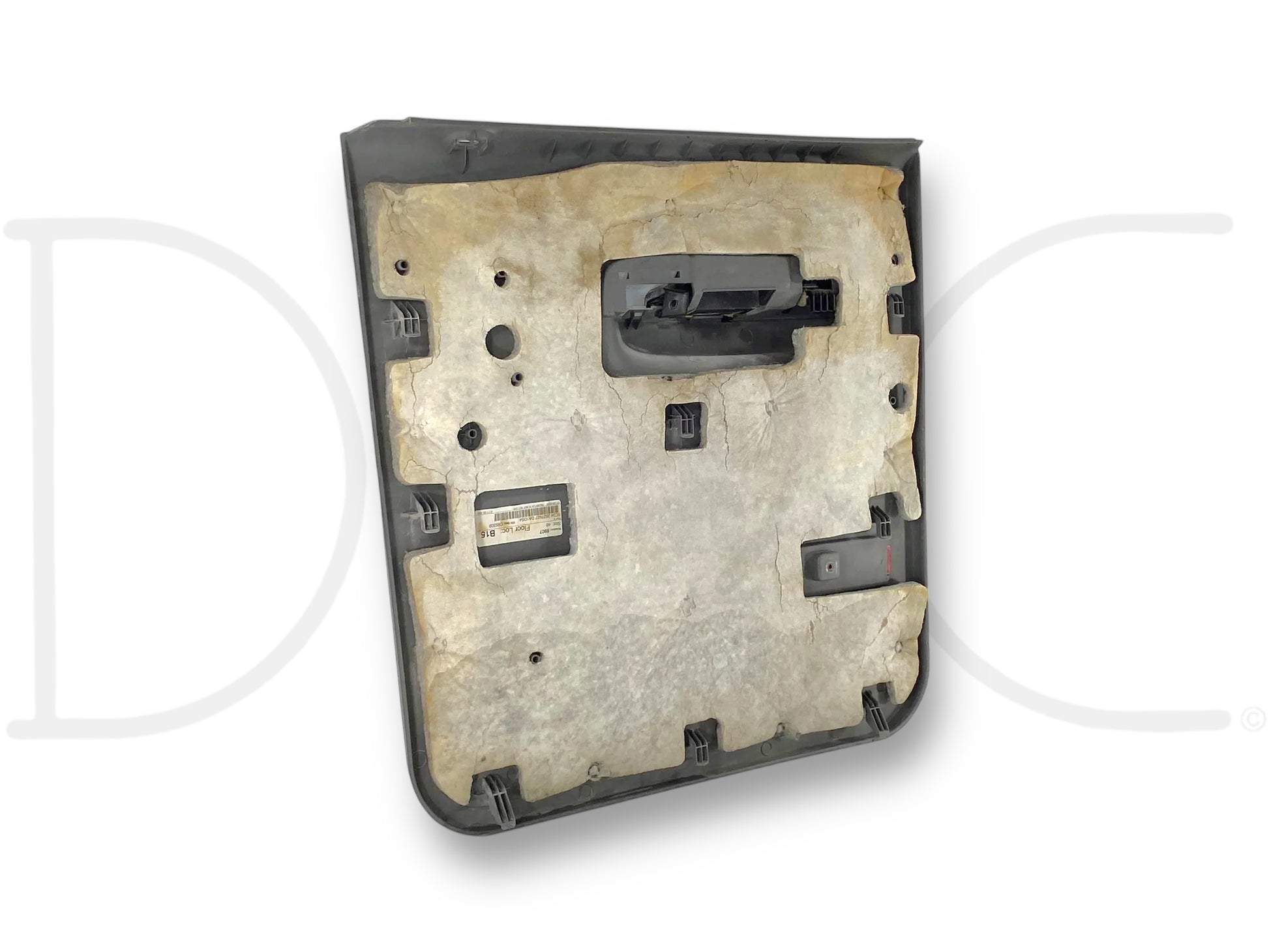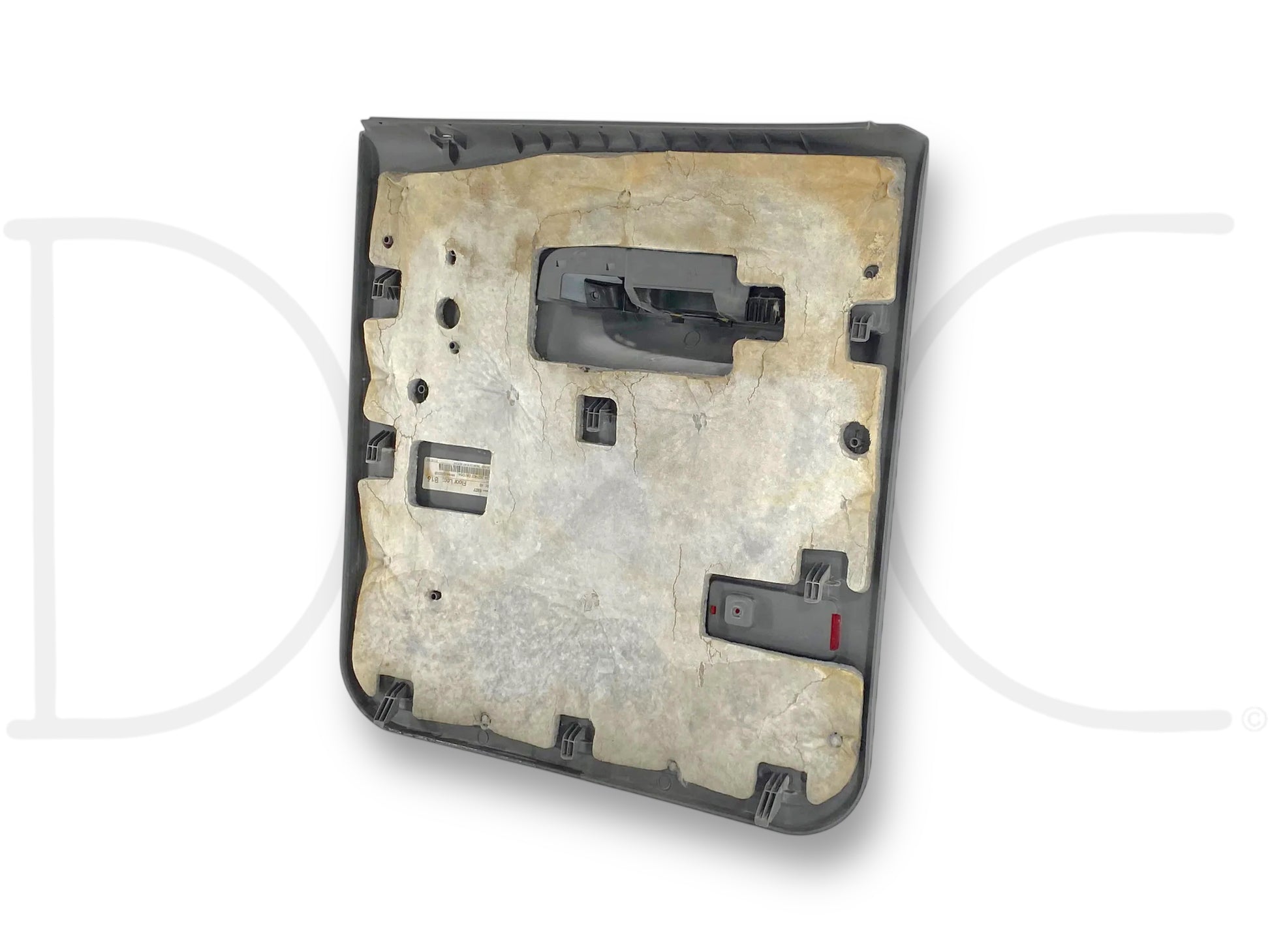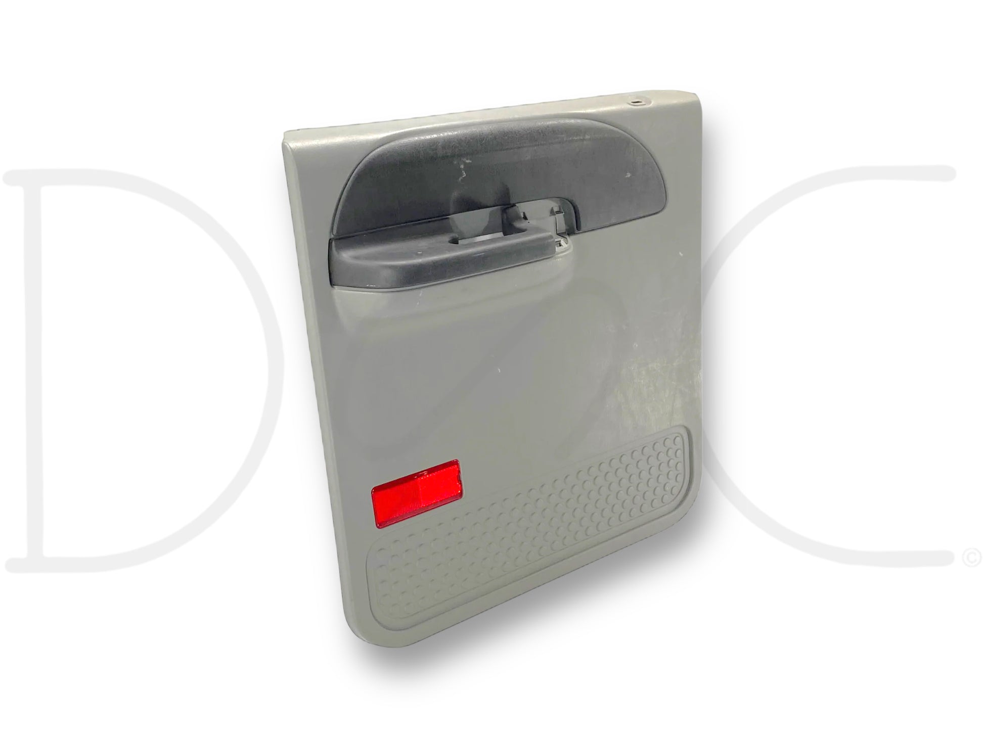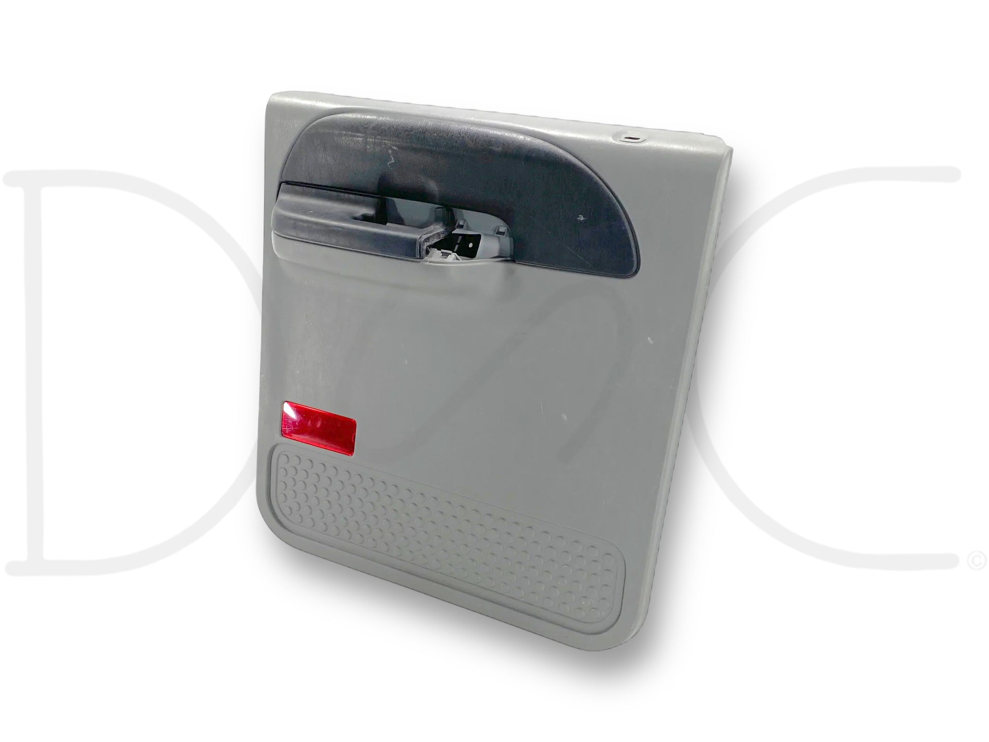Description: Ford Super Duty left hand driver side rear interior door panel card, gray, for trucks with power windows, OEM