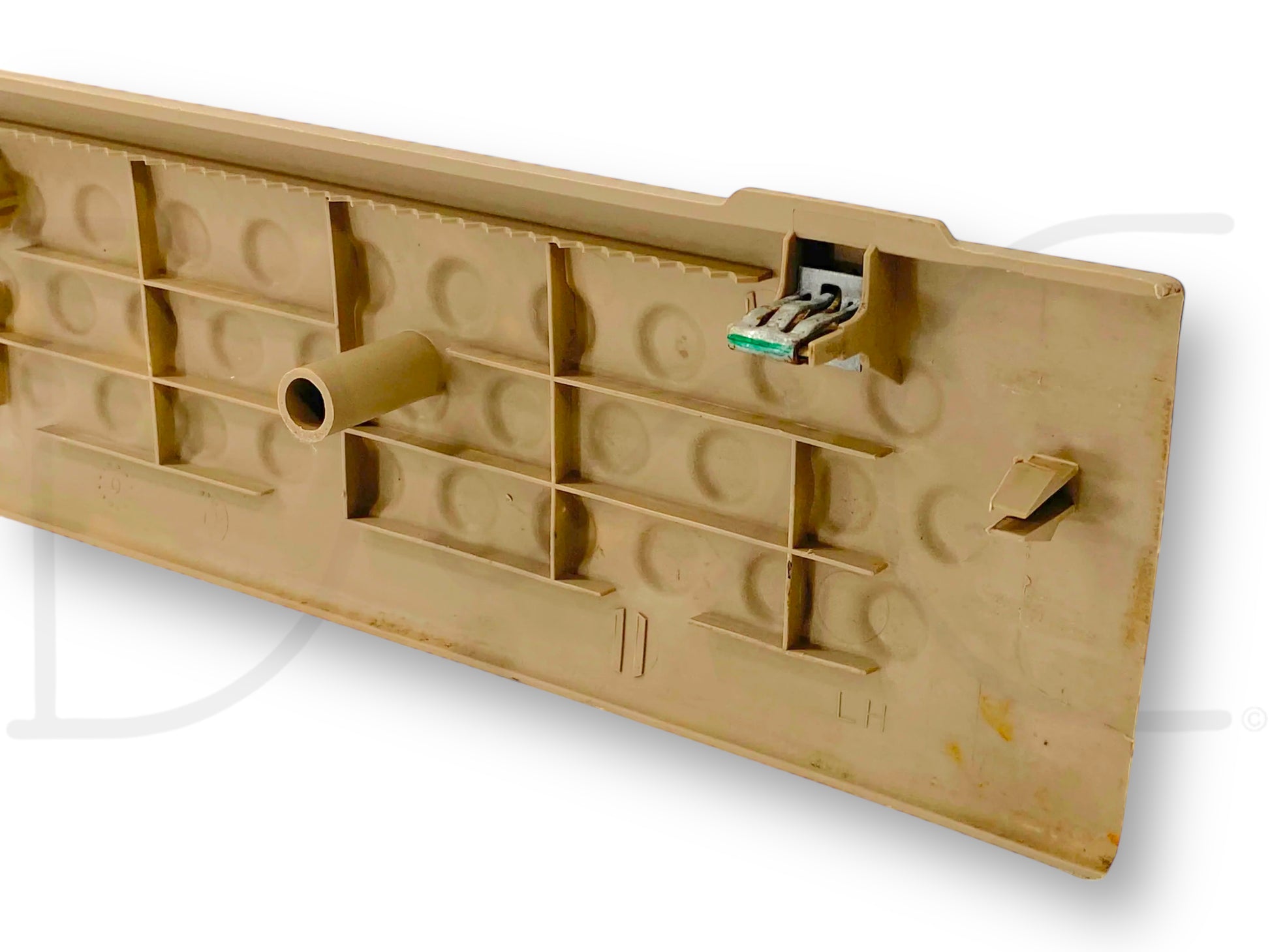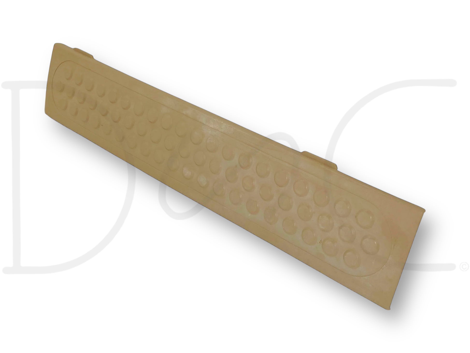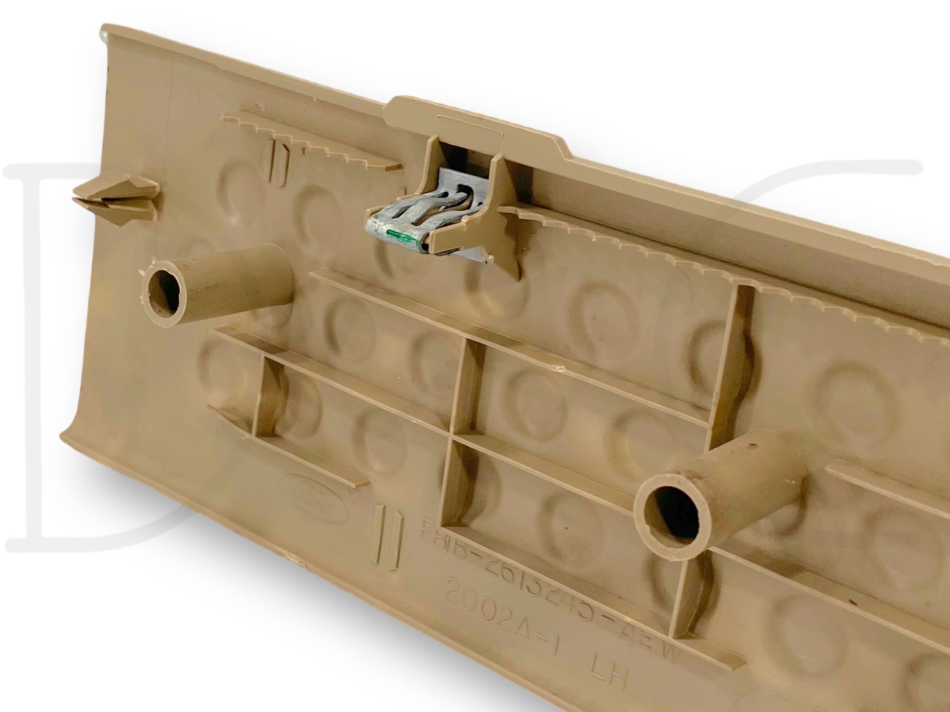 Description: Ford Super Duty crew cab left hand driver side rear rocker sill trim panel, door opening lower scuff floor plate, tan, OEM