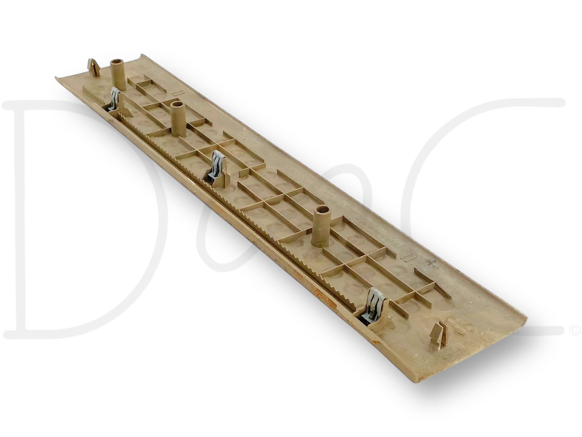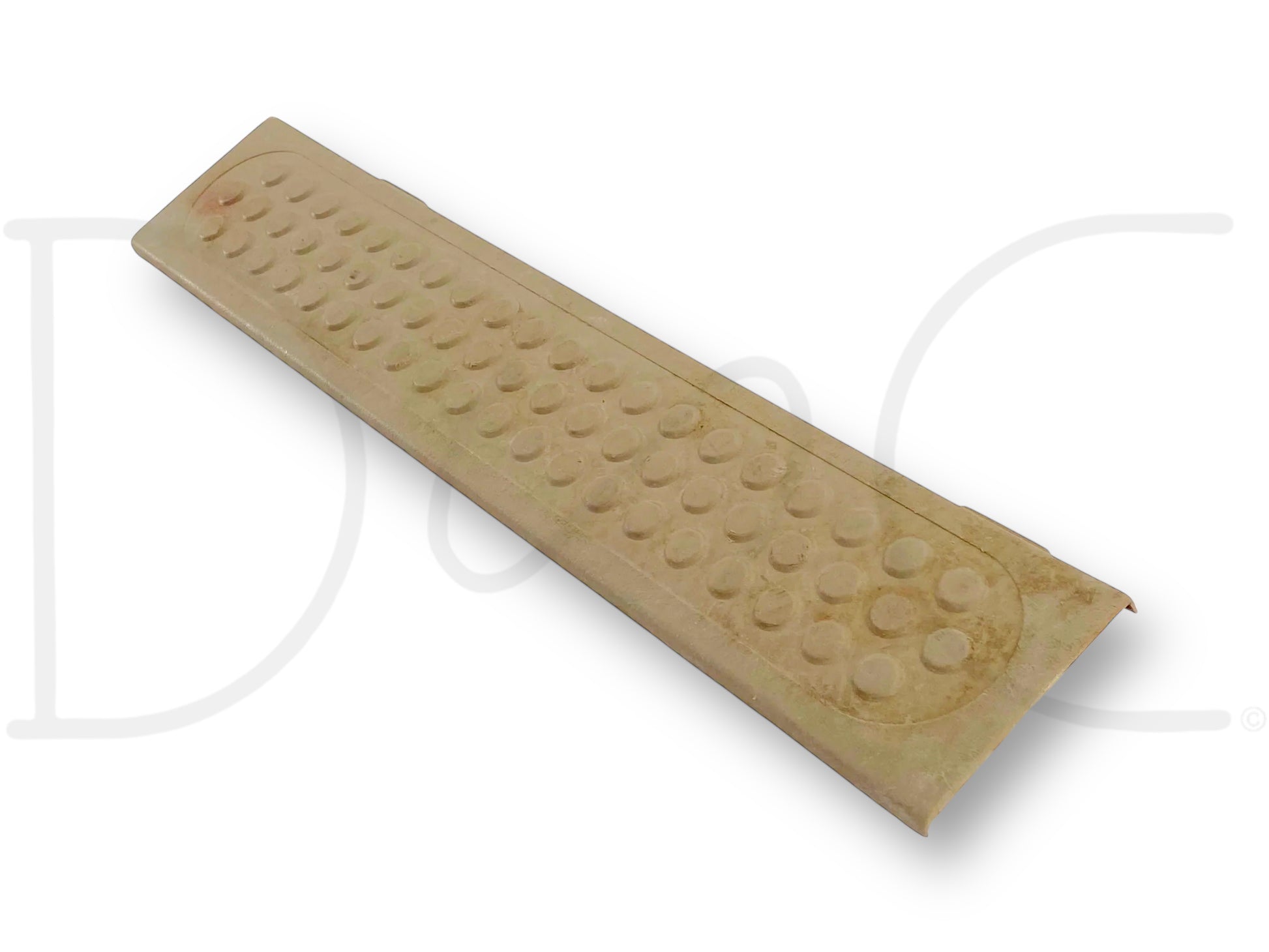 Description: Ford Super Duty crew cab right hand passenger side rear rocker sill trim panel, door opening lower scuff floor plate, tan, OEM