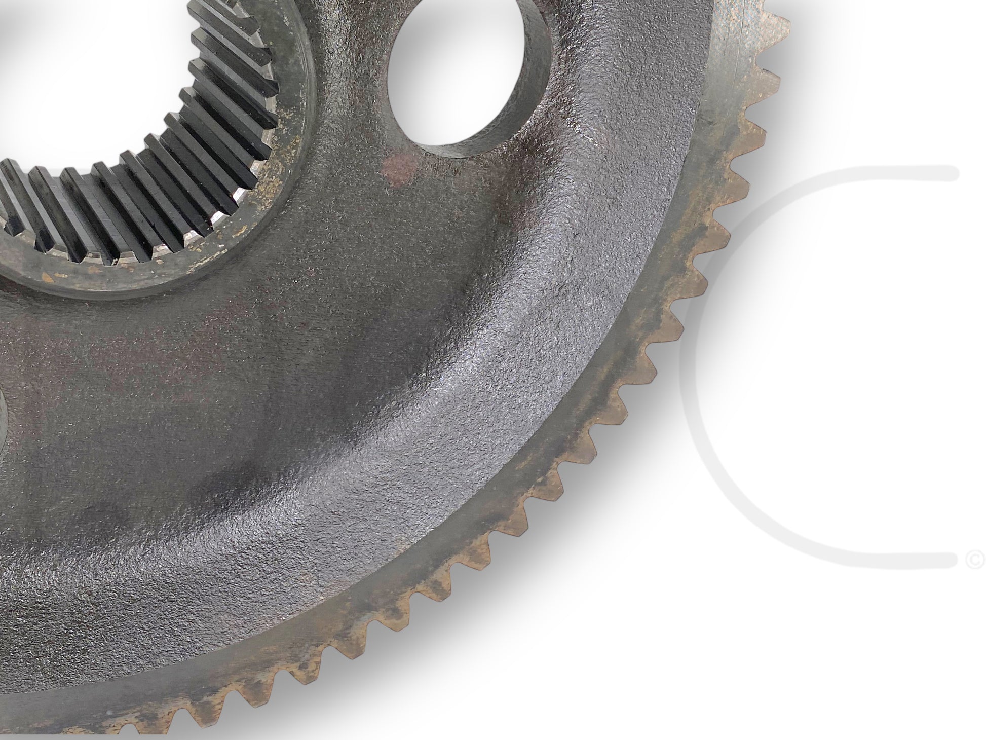 Description: 73 tooth rear axle bull gear - removed from a 1976 International harvester 1086 A/C cab tractor 6.8L 414 ci diesel 8 speed manual transmission w/ ta 2WD SN: 8931