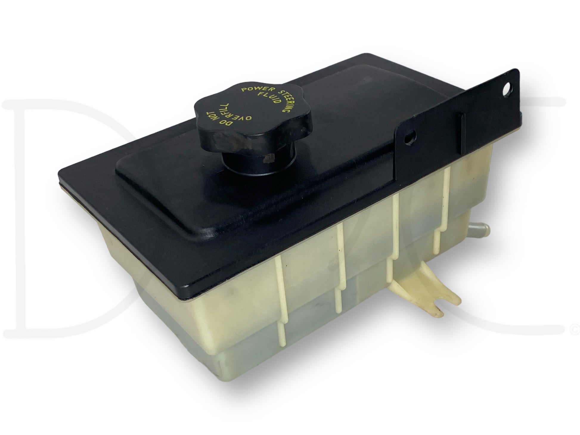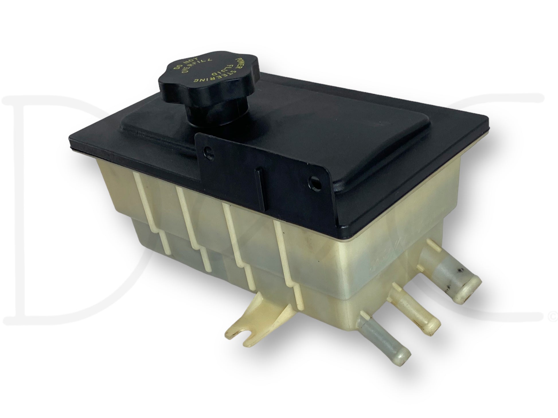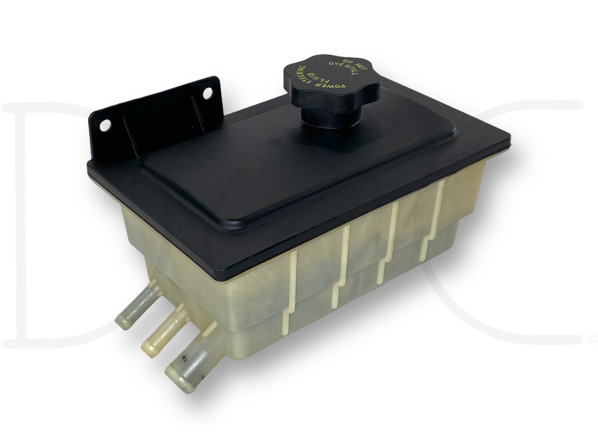 Description: Ford Super Duty 6.0 Powerstroke diesel power steering fluid reservoir bottle tank, 3 port, for trucks with hydroboost system, OEM