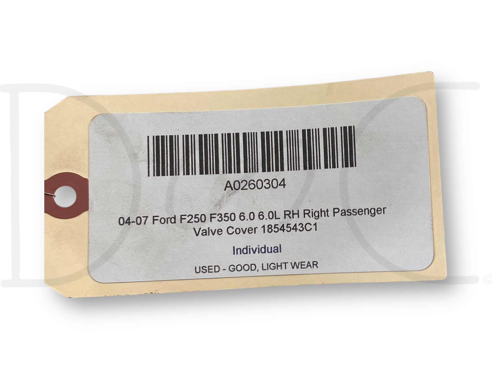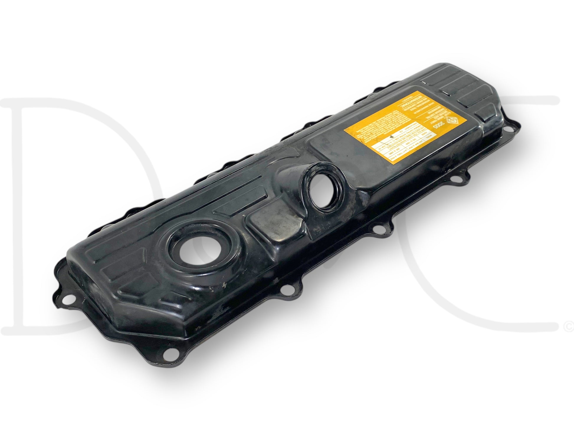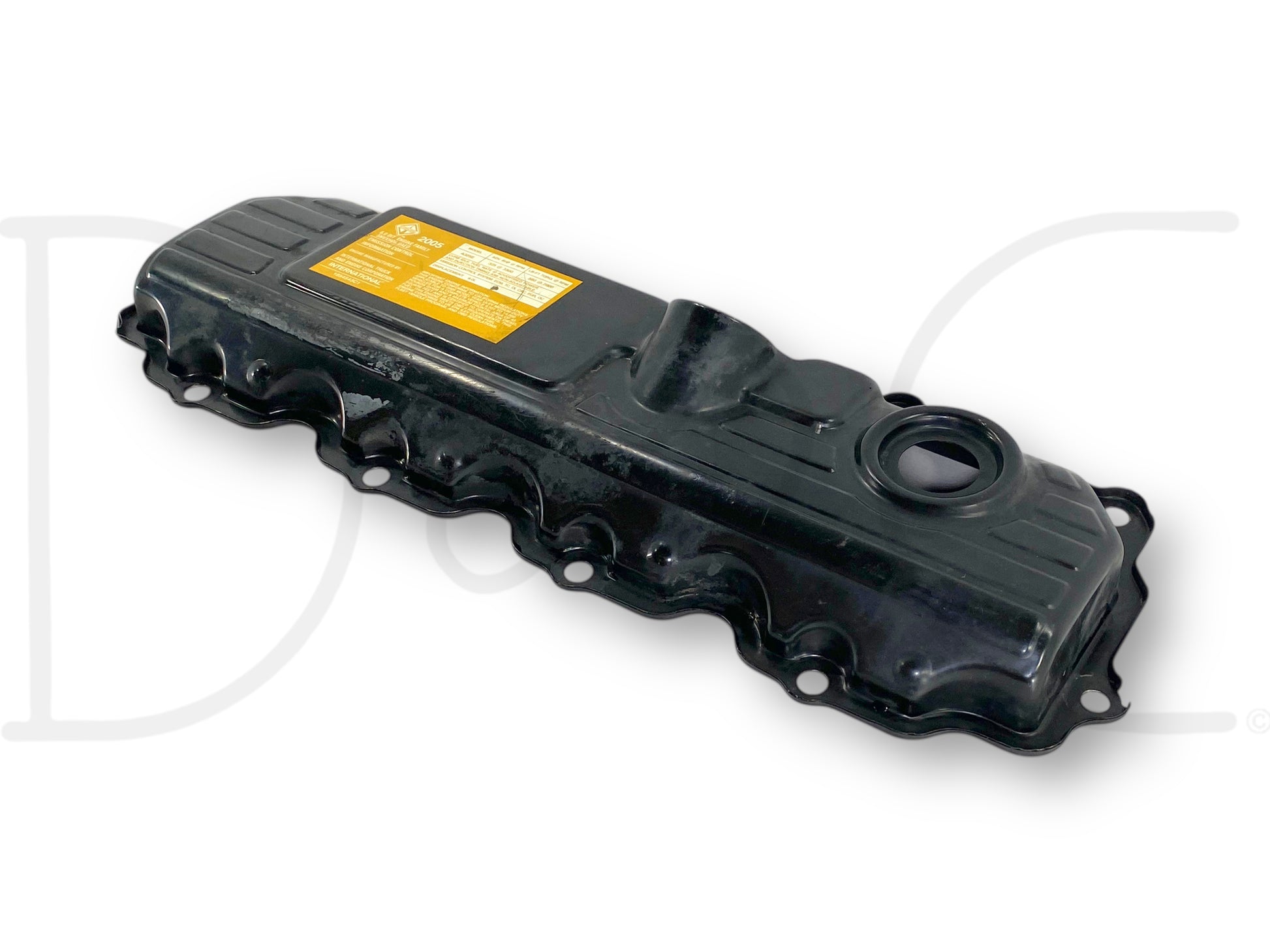 Description: Ford Super Duty 6.0 Powerstroke diesel right hand passenger side engine valve cover, OEM International, m.y. 2005 sticker