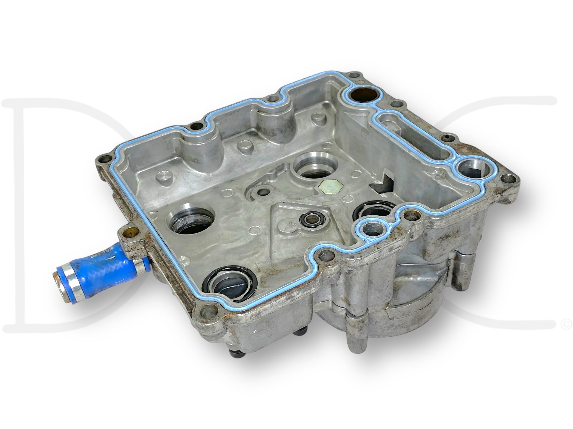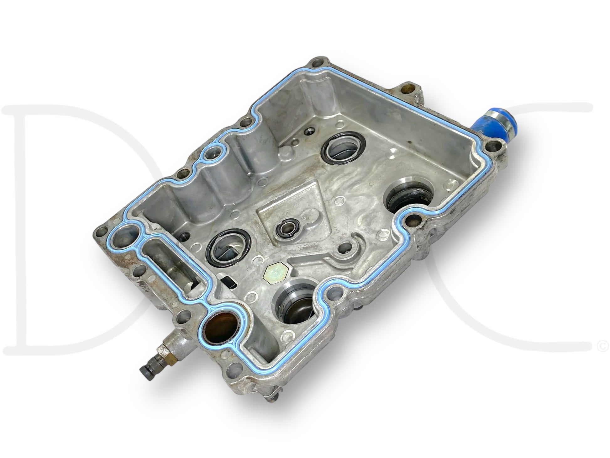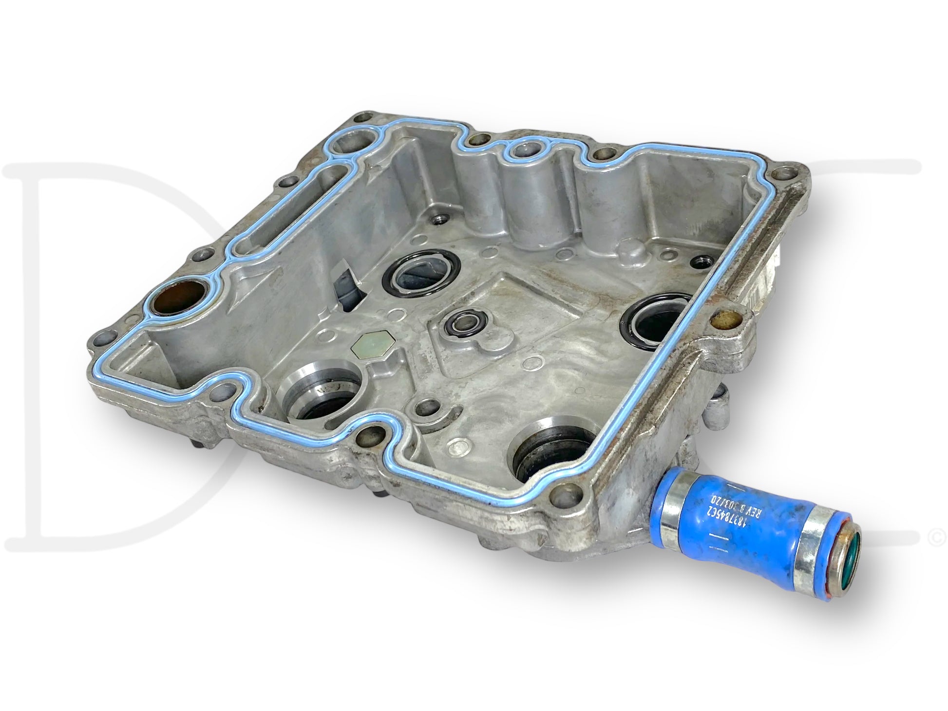 Description: Ford Super Duty 6.0 Powerstroke diesel oil cooler housing cover assembly, oil filter base, OEM International