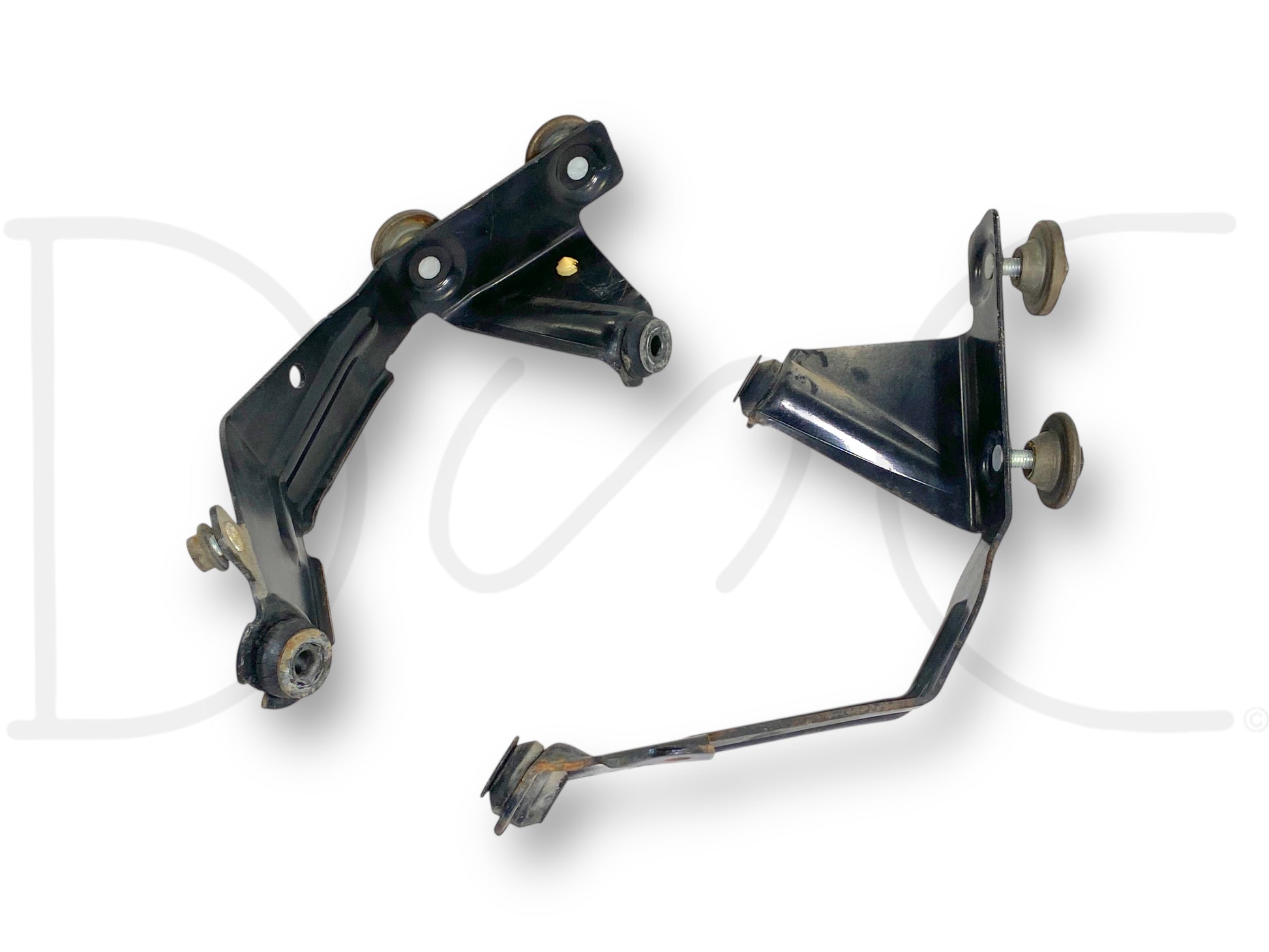 Description: Ford Super Duty 6.0 Powerstroke diesel fuel injection control module FICM mounting bracket assembly, set of two brackets for front and rear, OEM