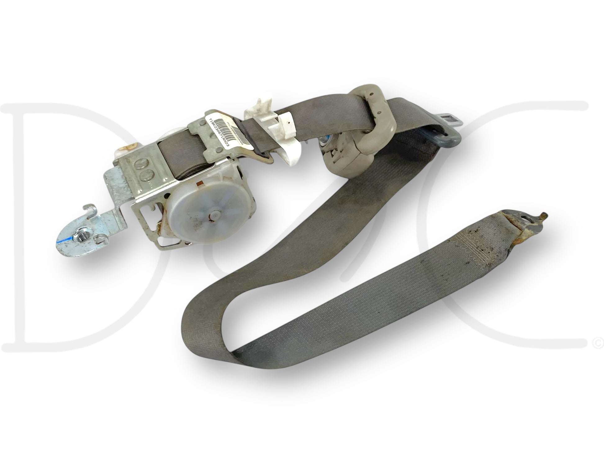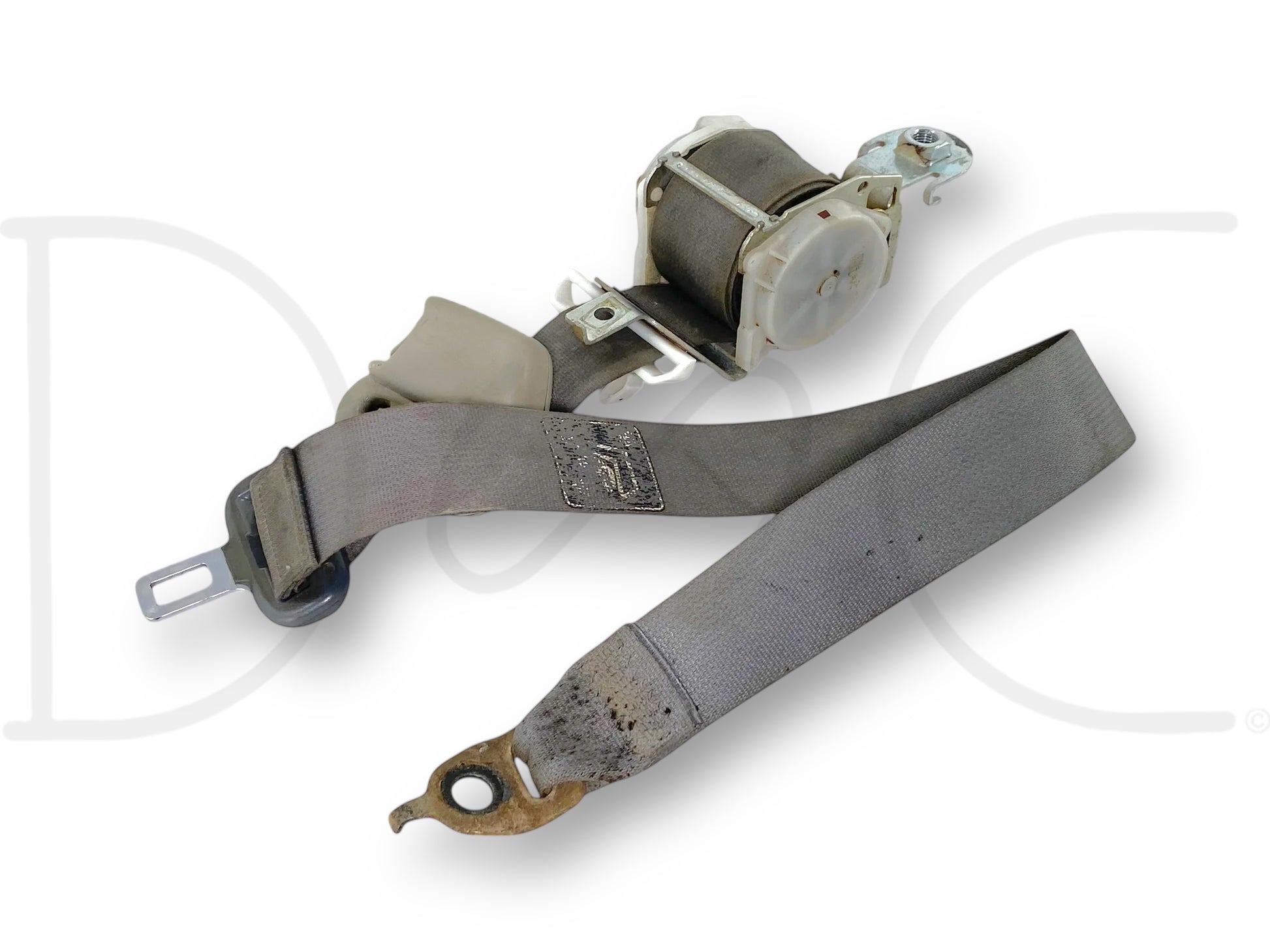 Description: Dodge Ram quad cab front right hand passenger side seatbelt seat belt assembly, grey, OEM