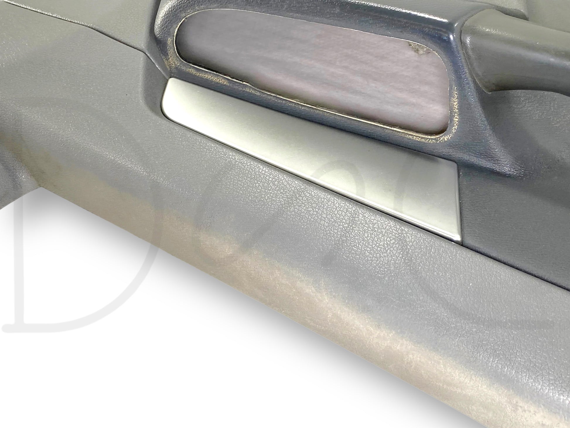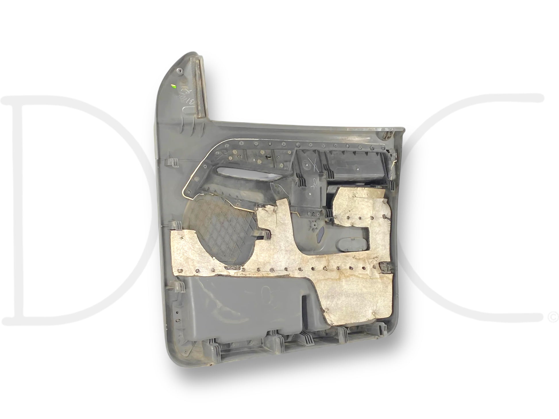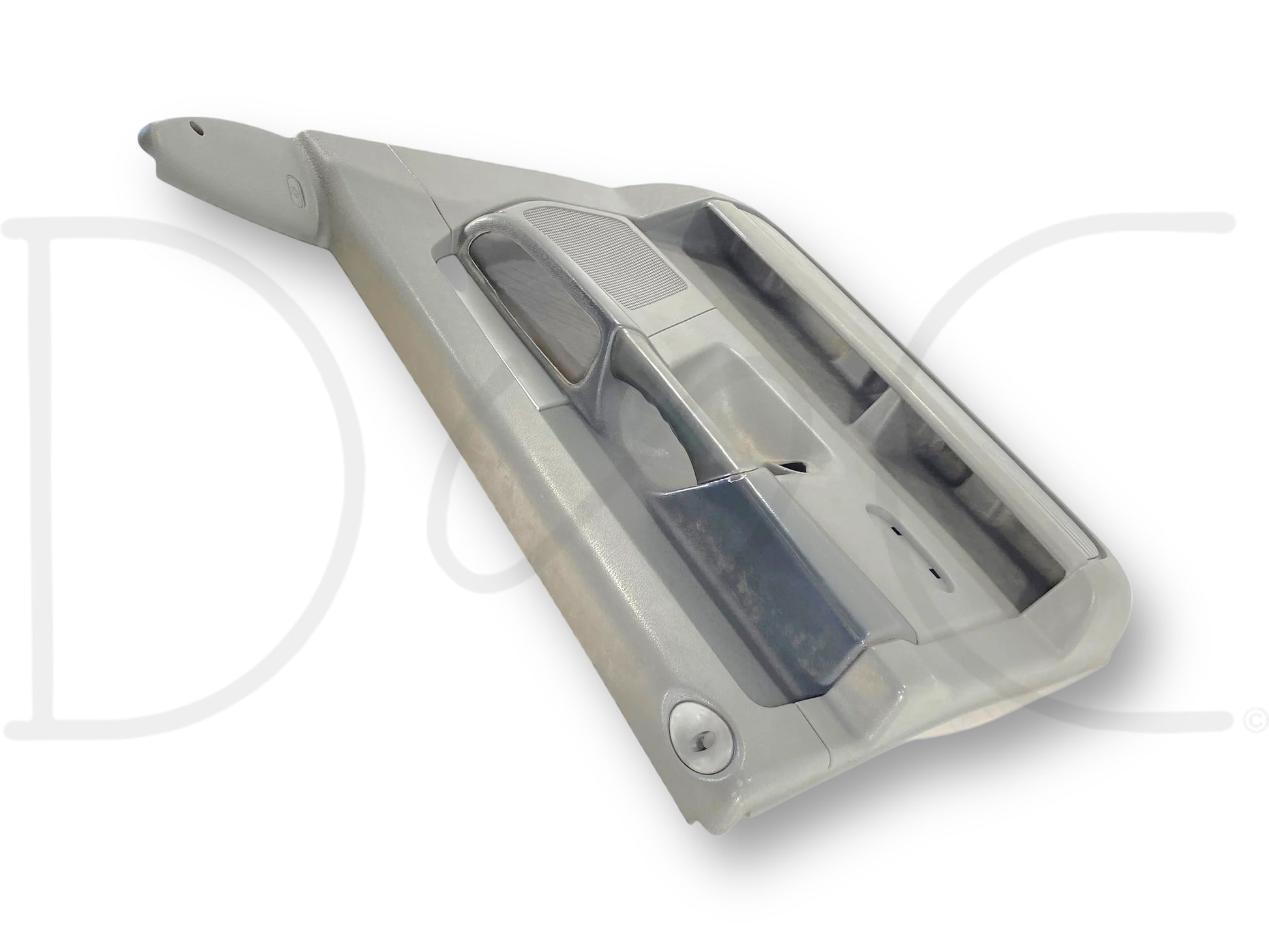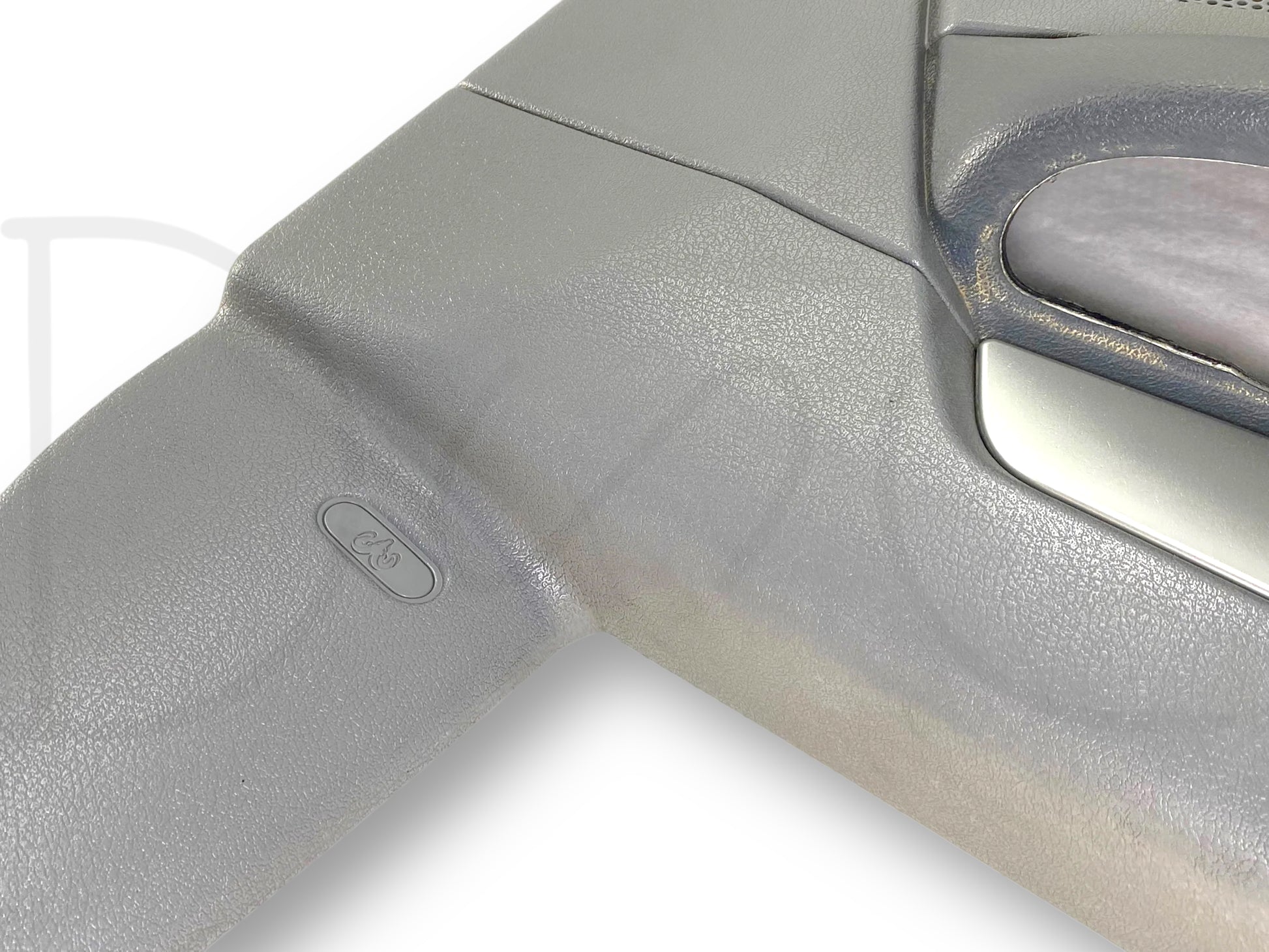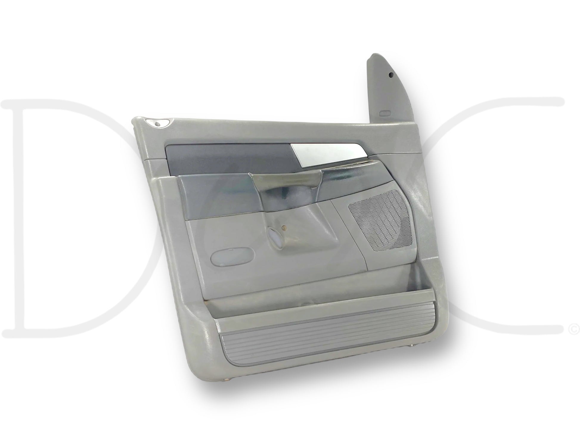 Description: Dodge Ram left hand driver side front interior door panel card, grey, for trucks with power windows & locks, OEM