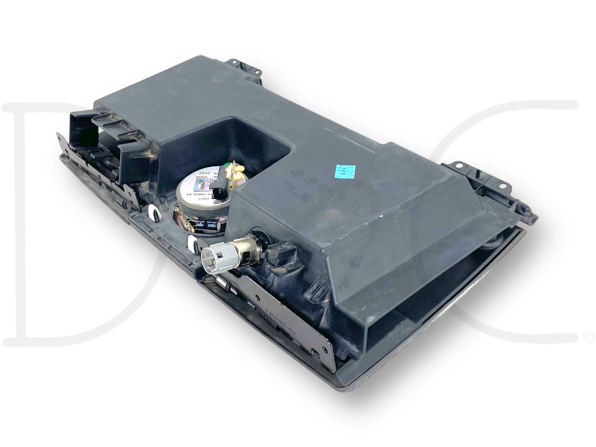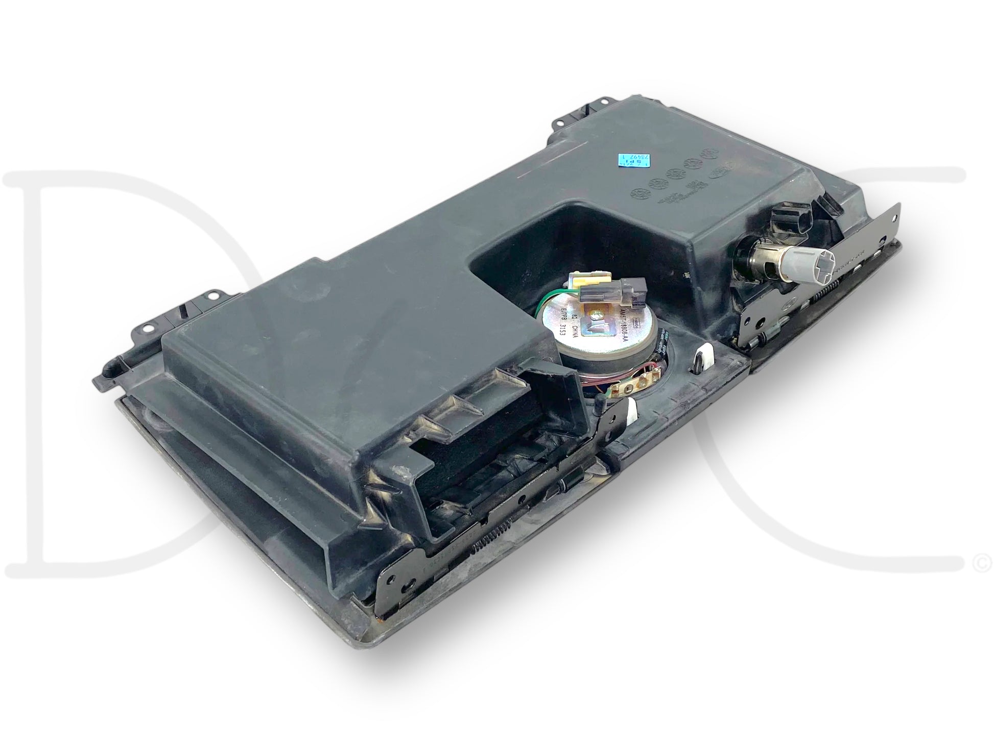 Description: Ford Super Duty center upper dash storage tray with speaker and dark brown lid cover OEM