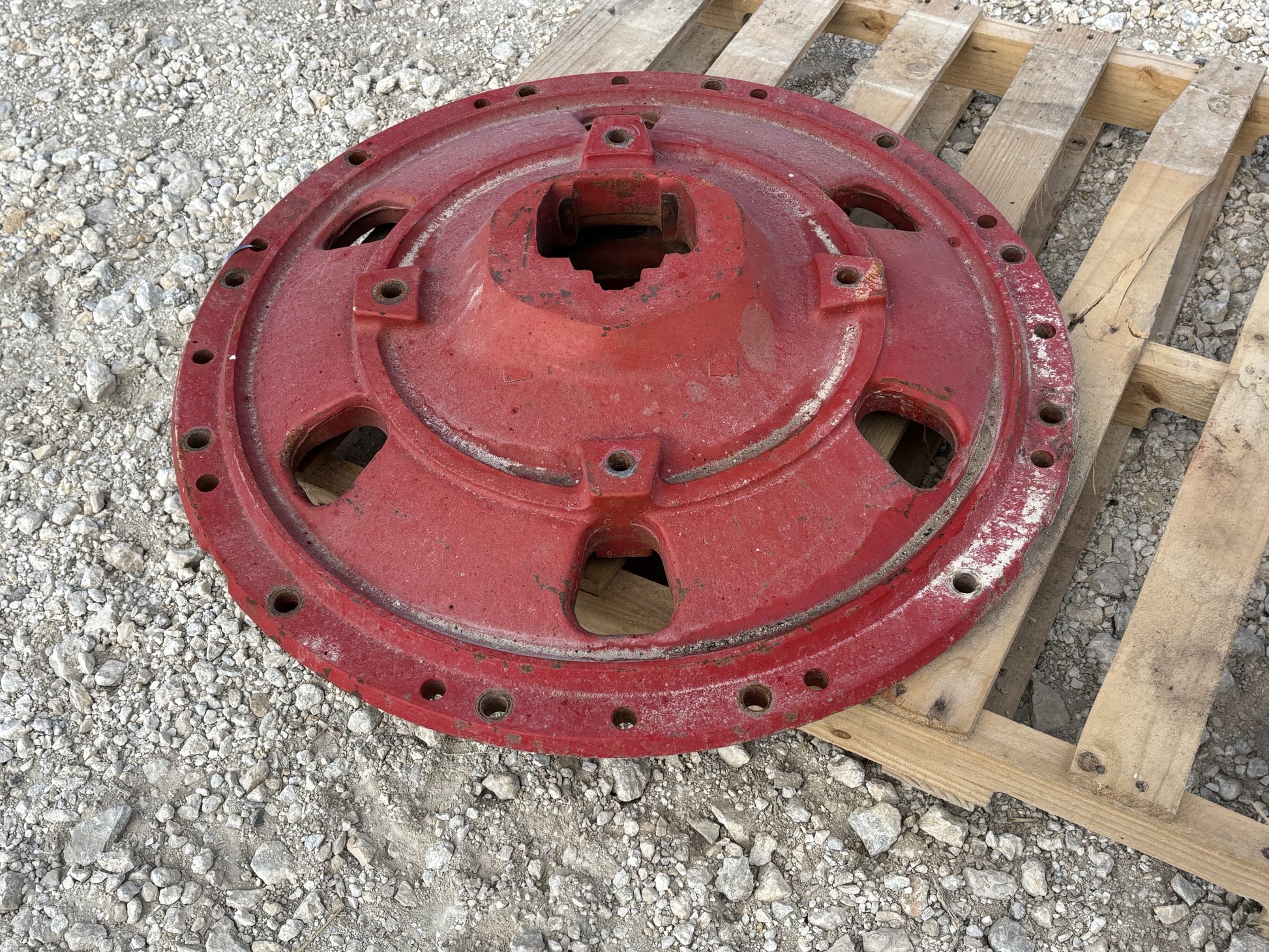 Description: rear wheel cast center hub for 3.5" axle shaft, price is for one - removed from a 1976 International harvester 1086 A/C cab tractor 6.8L 414 ci diesel 8 speed manual transmission w/ ta 2WD SN: 8931 - compatible with 1486