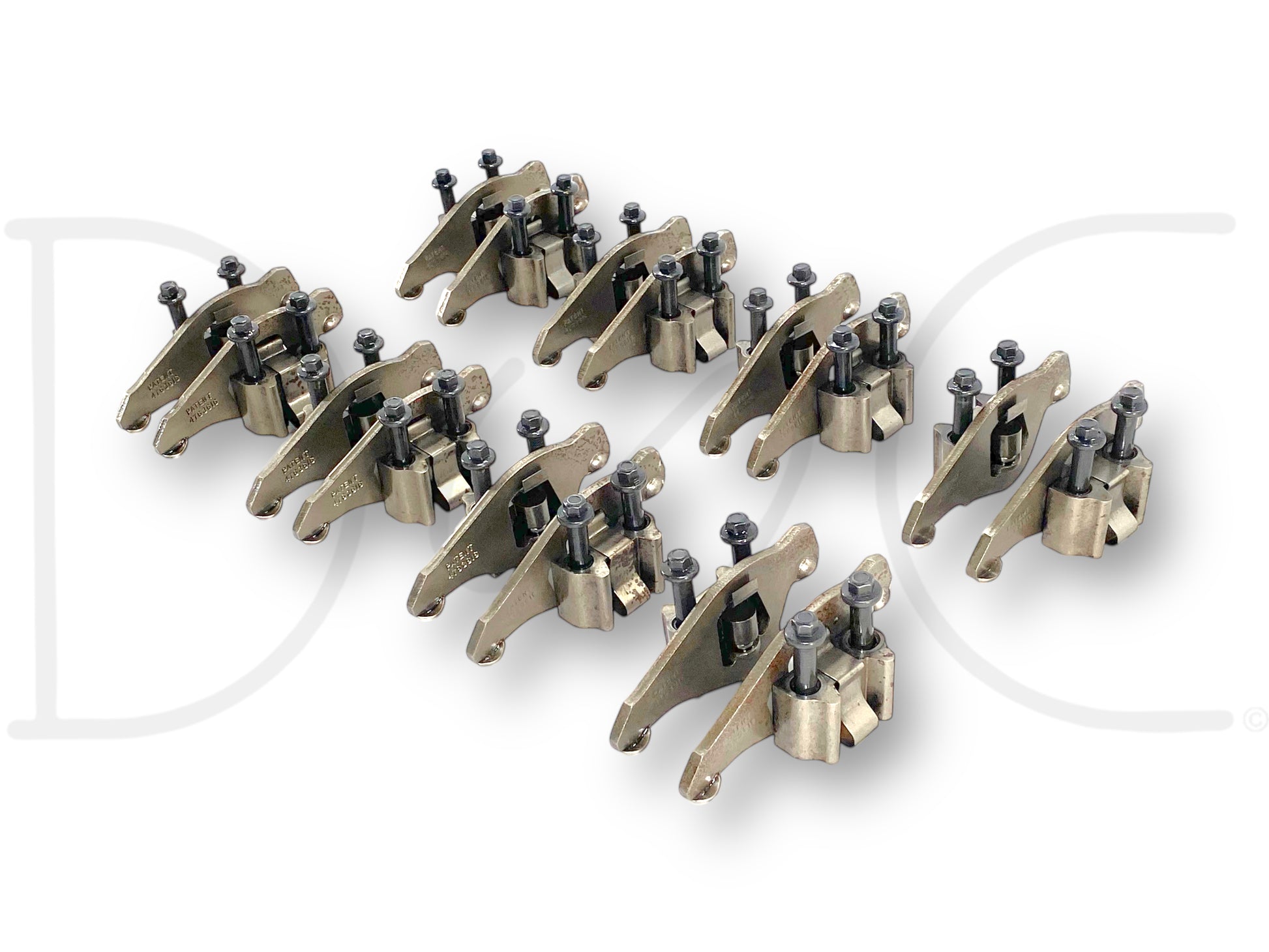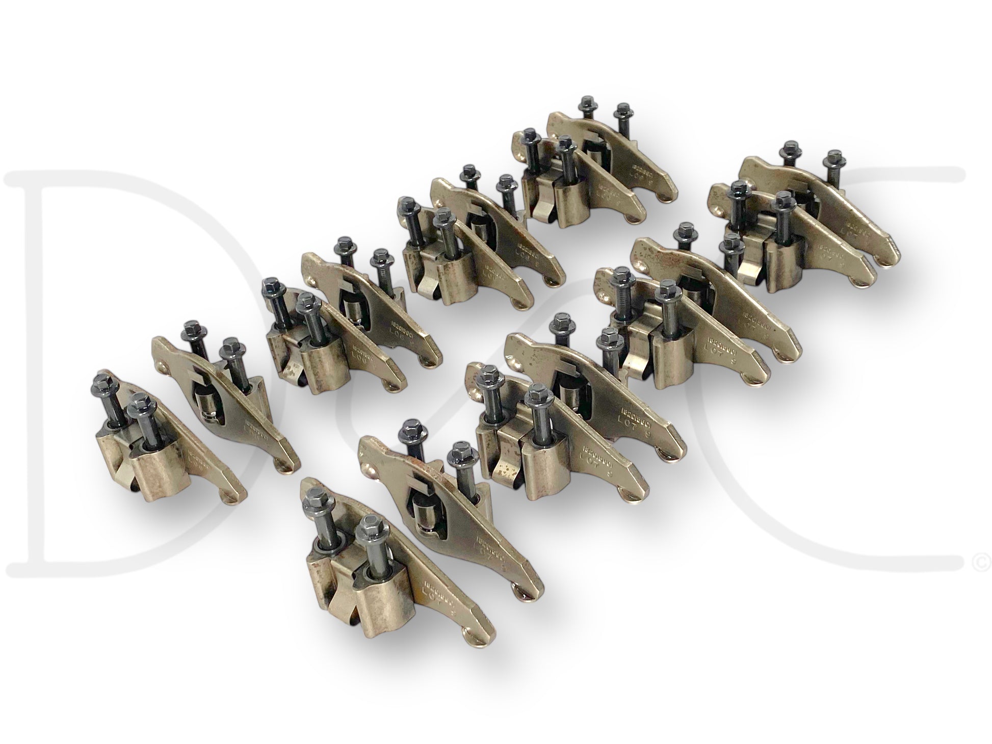 Description: Ford truck 7.3L Powerstroke diesel rocker set for both heads, intake and exhaust rockers with pedestals and bolts for eight cylinders