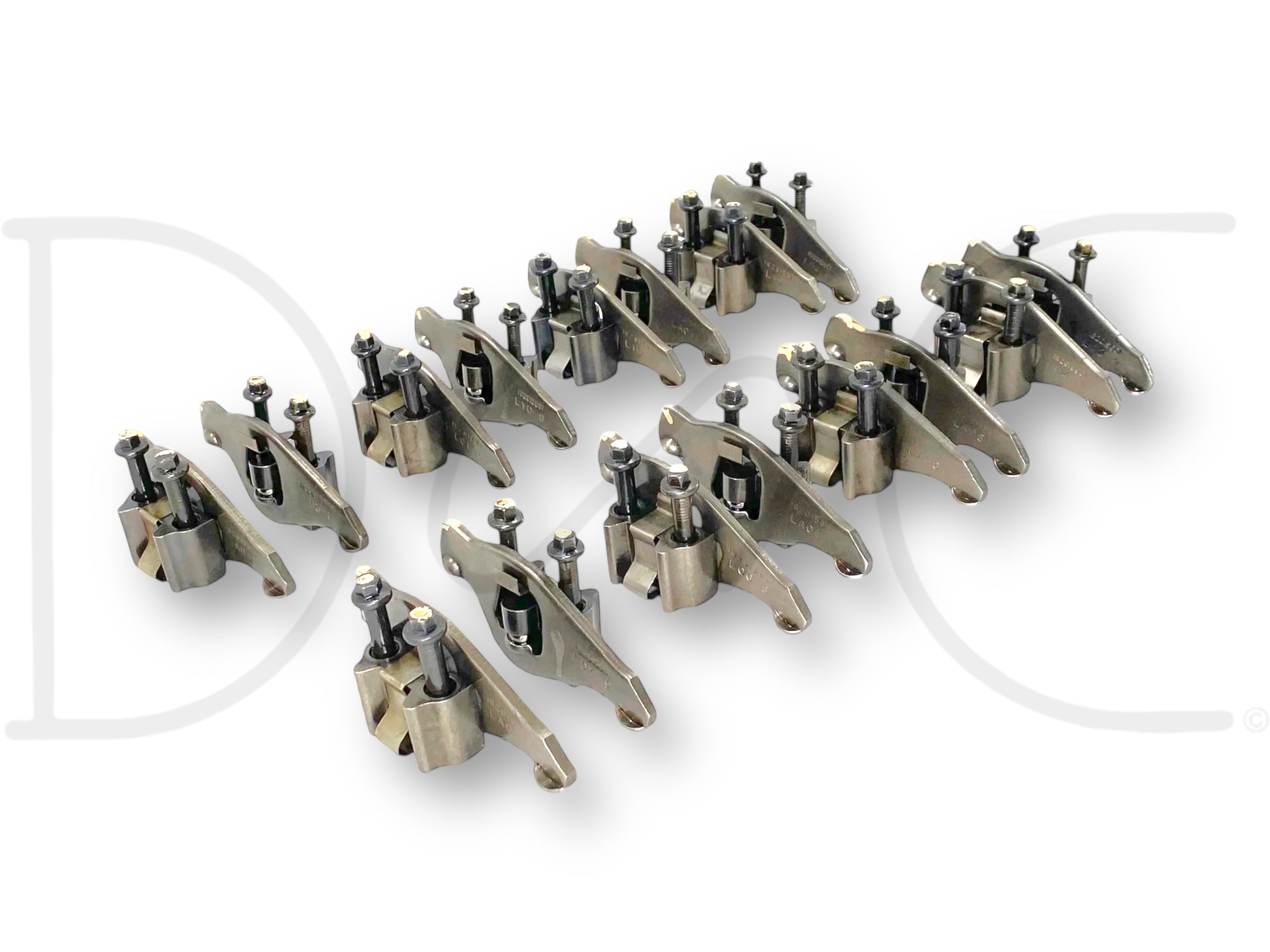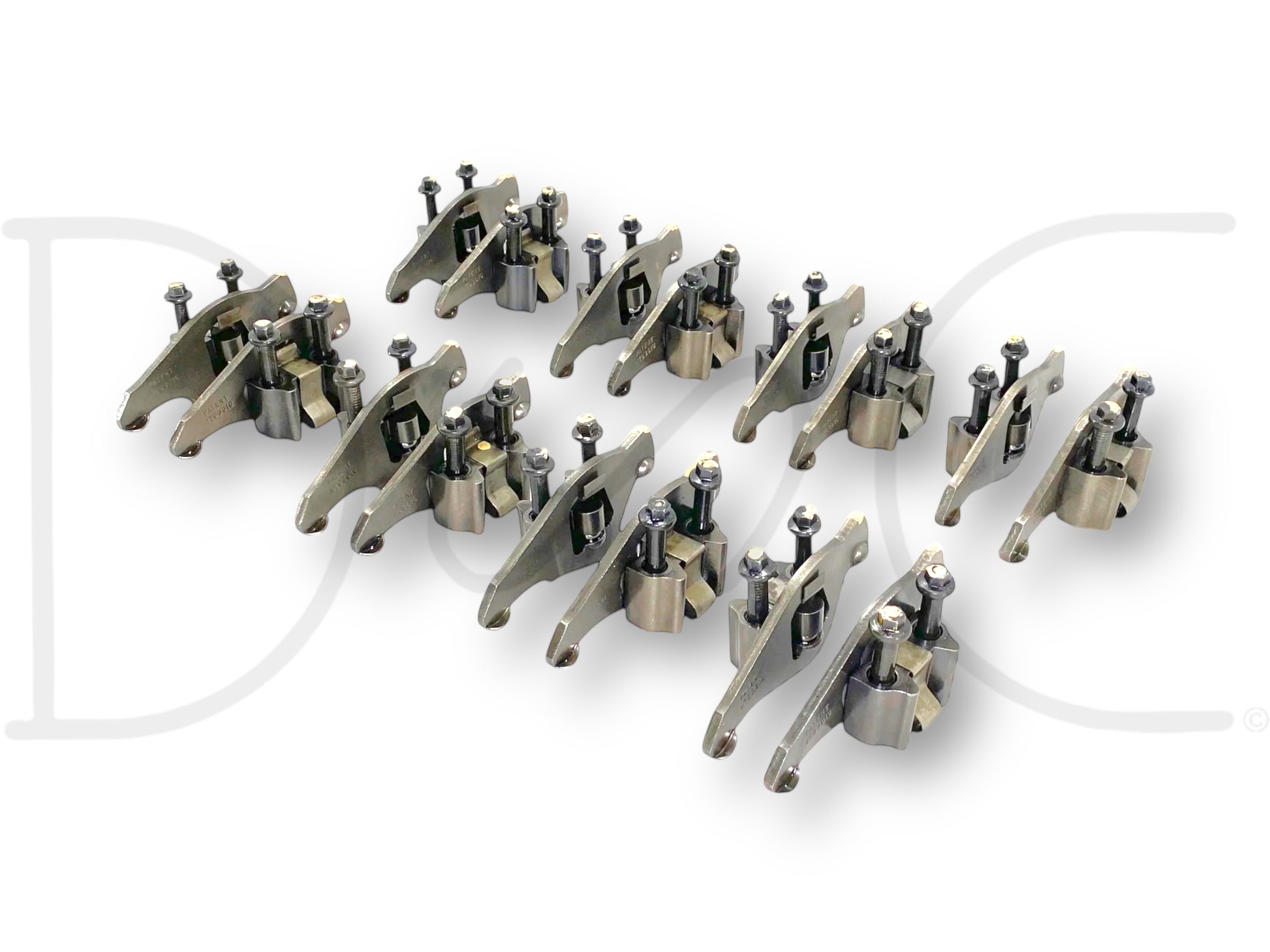 Description: Ford truck 7.3L Powerstroke diesel rocker set for both heads, intake and exhaust rockers with pedestals and bolts for eight cylinders