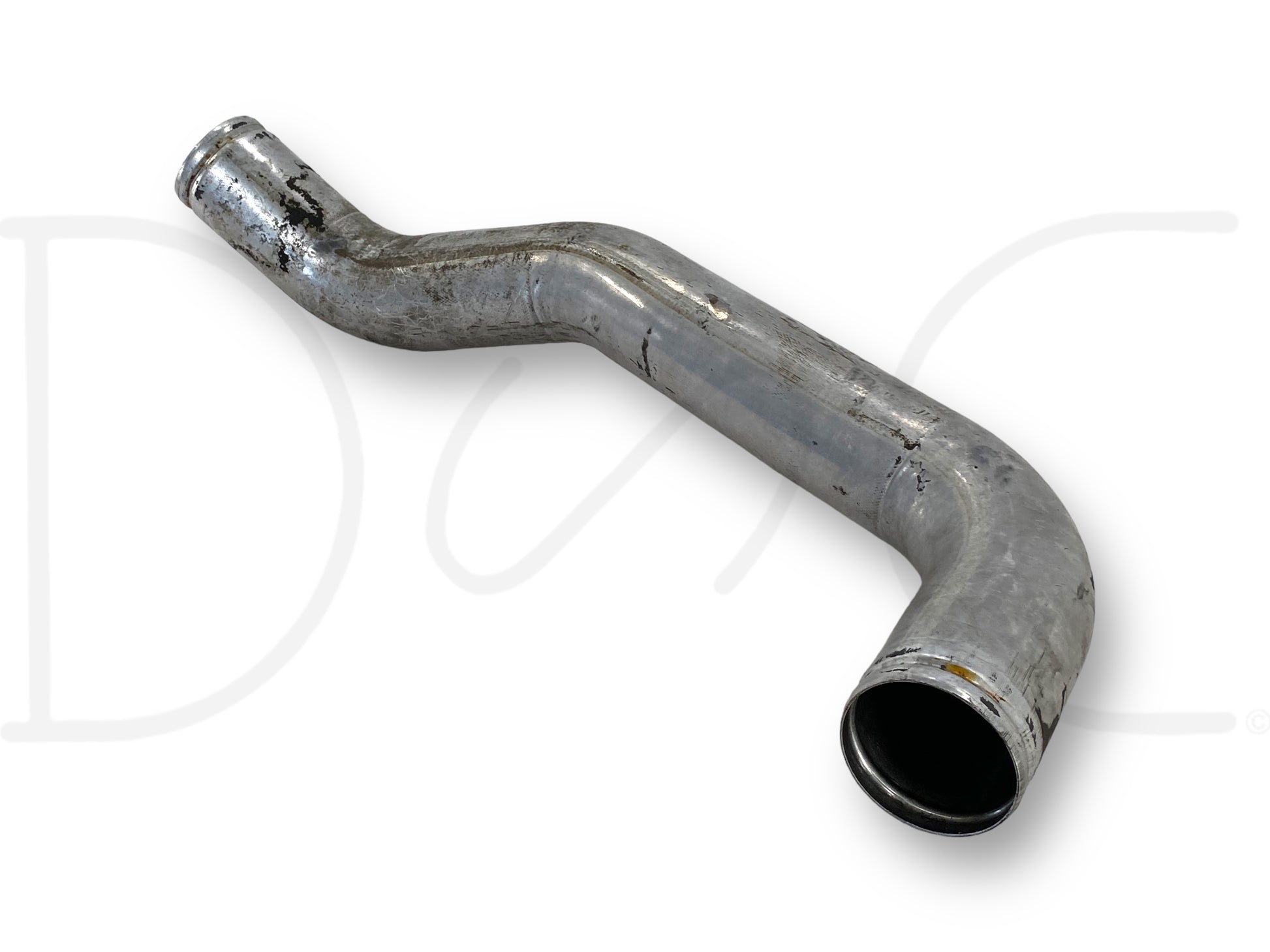 Description: Ford Super Duty 7.3 Powerstroke diesel right hand passenger side turbo inter cooler tube, CAC charge air cooler aluminum pipe, OE