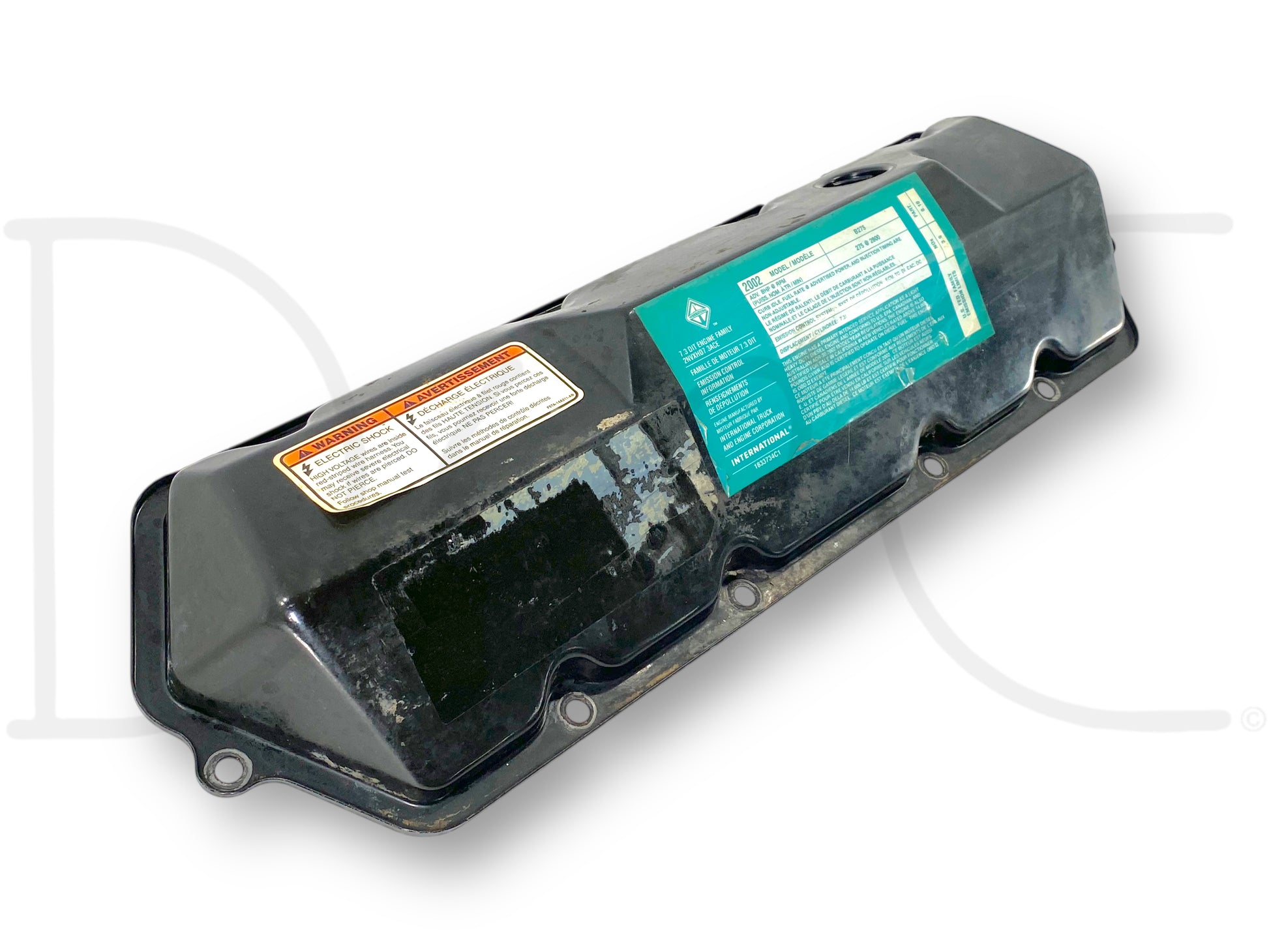 Description: Ford Super Duty 7.3L Powerstroke diesel engine right hand passenger side rocker valve cover, m.y. 2002 sticker, OE International