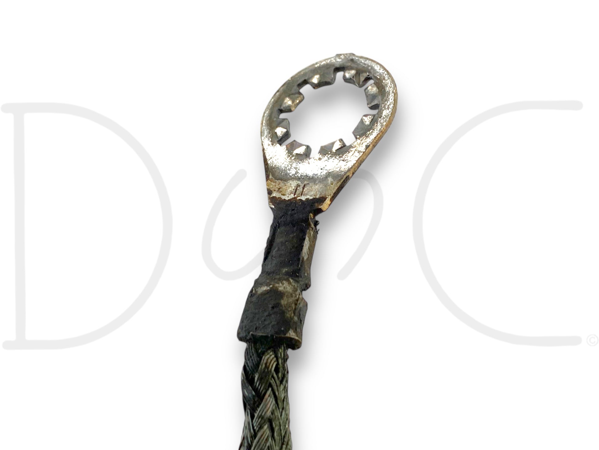 Description: Ford Super Duty 7.3 Powerstroke diesel cab to engine ground strap, right hand passenger side of firewall to RH engine head, OEM braided cable