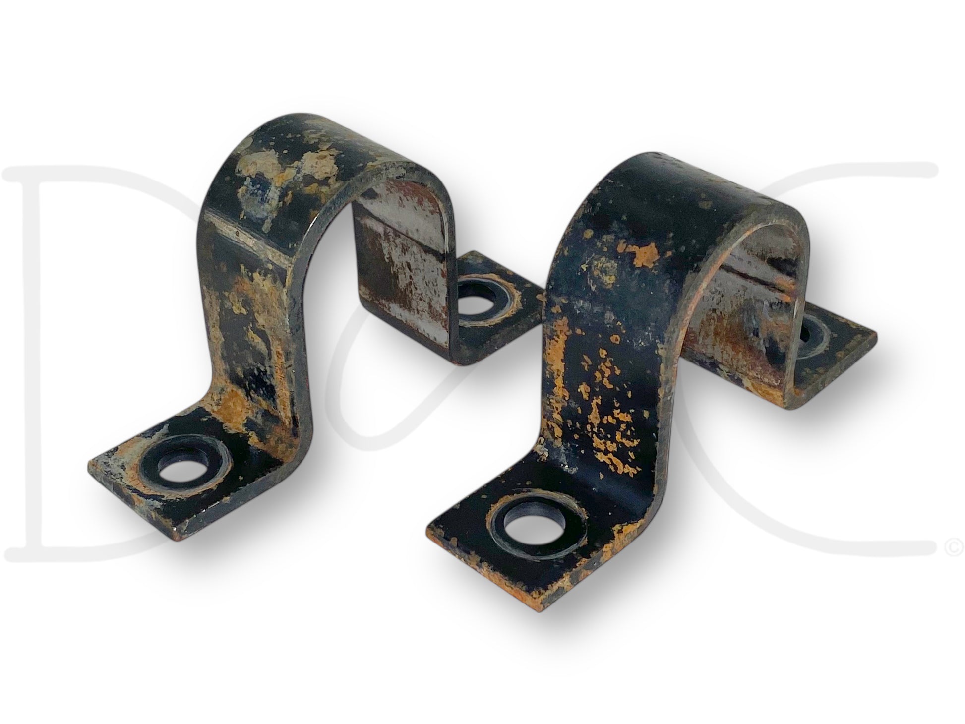 Description: Ford Super Duty 2WD front sway bar bushing mounting brackets, pair RH & LH, OEM