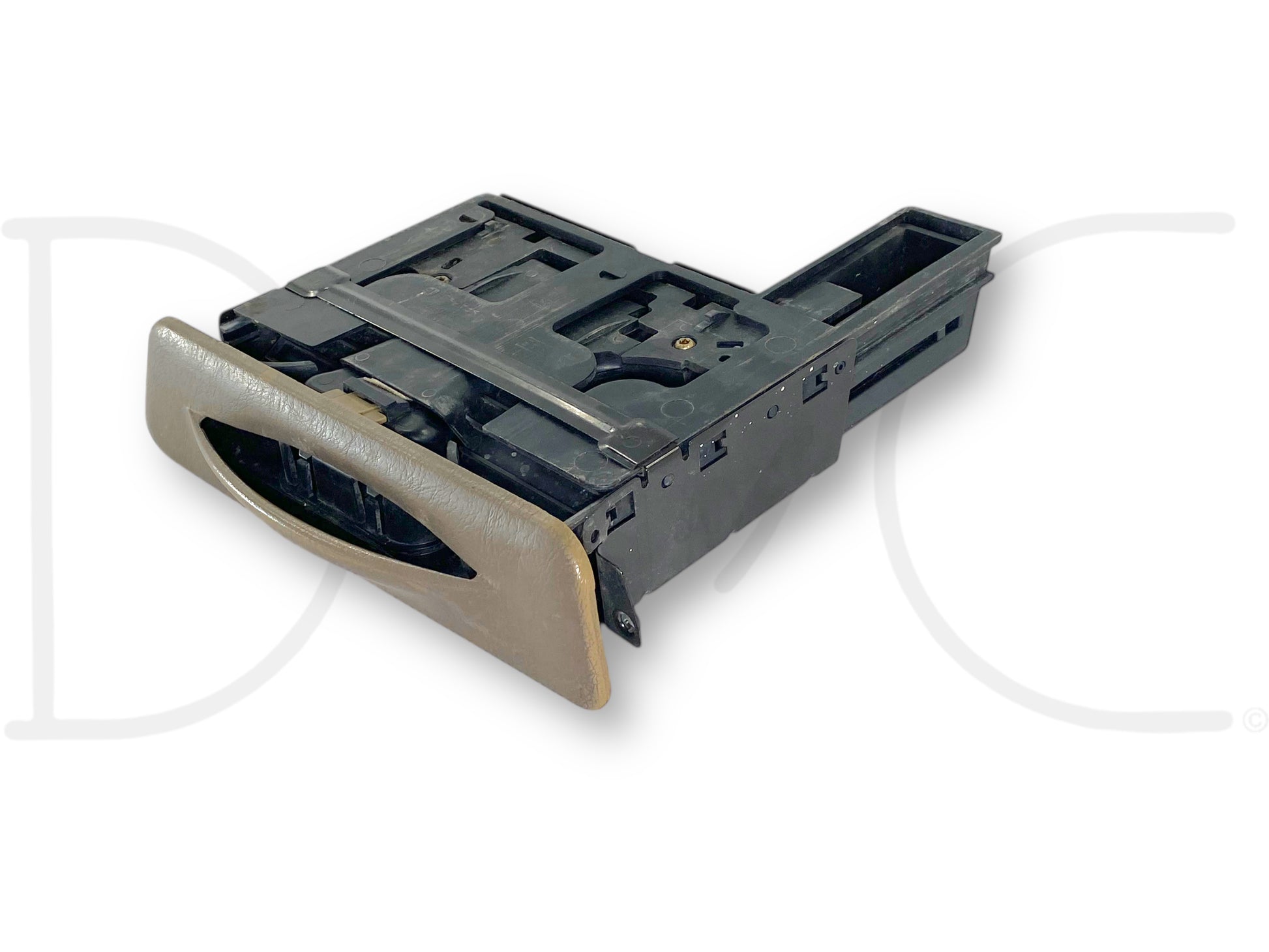 Description: ford super duty dashboard pull out cup holder ashtray assembly, tan, oem