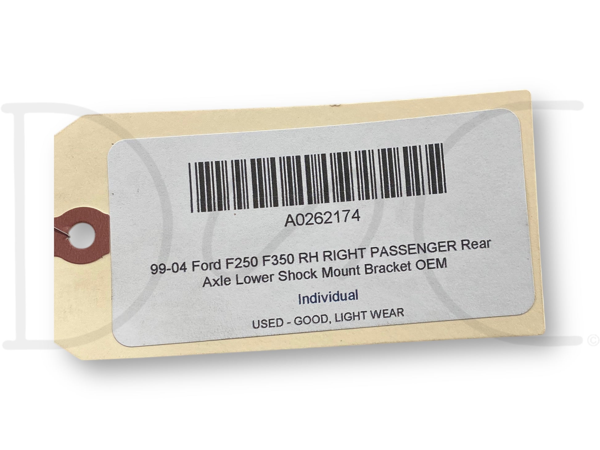 Description: Ford Super Duty right hand passenger side rear axle lower shock mount bracket OE, price is for one