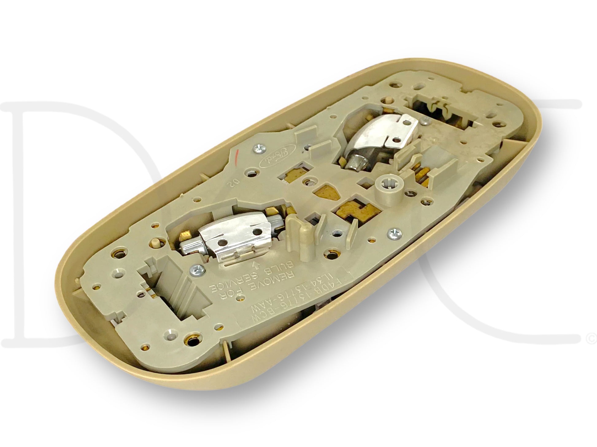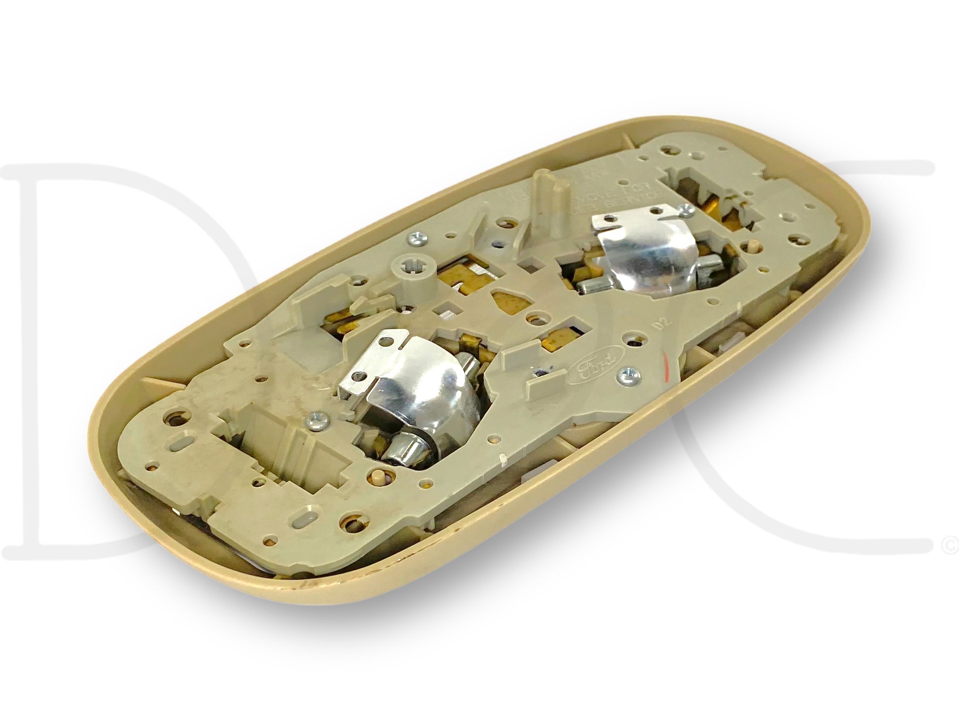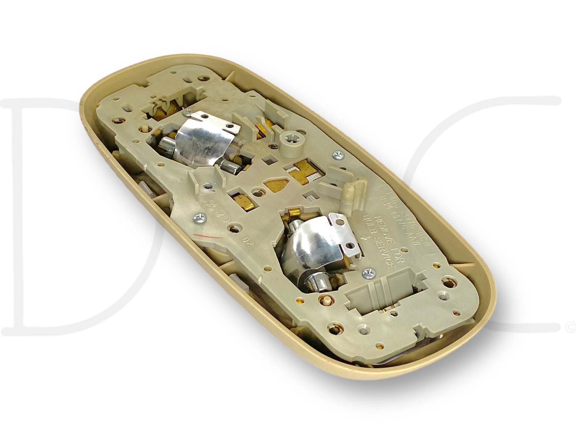 Description: Ford Super Duty overhead roof ceiling domelight map lamp assembly, tan, OEM
