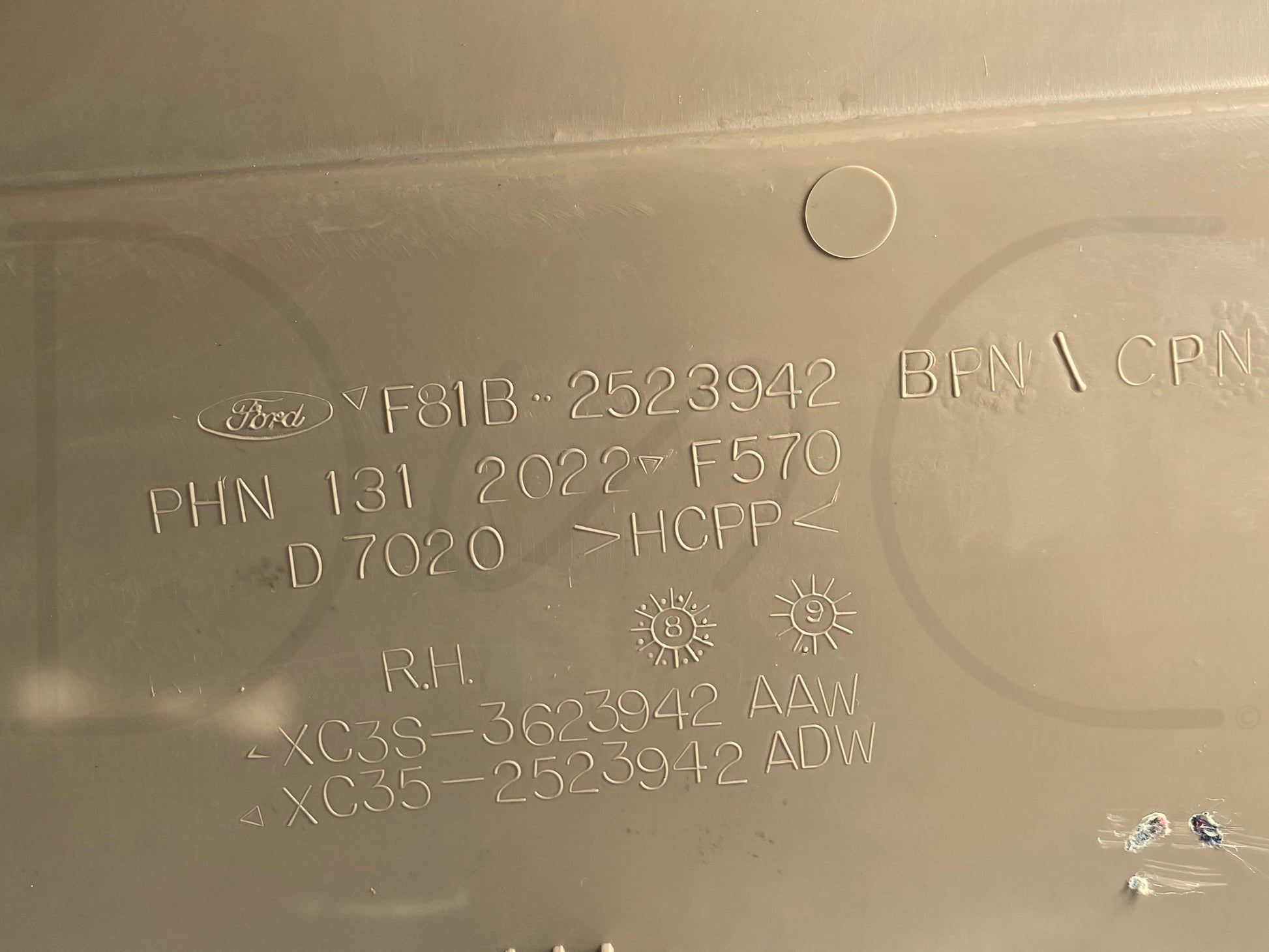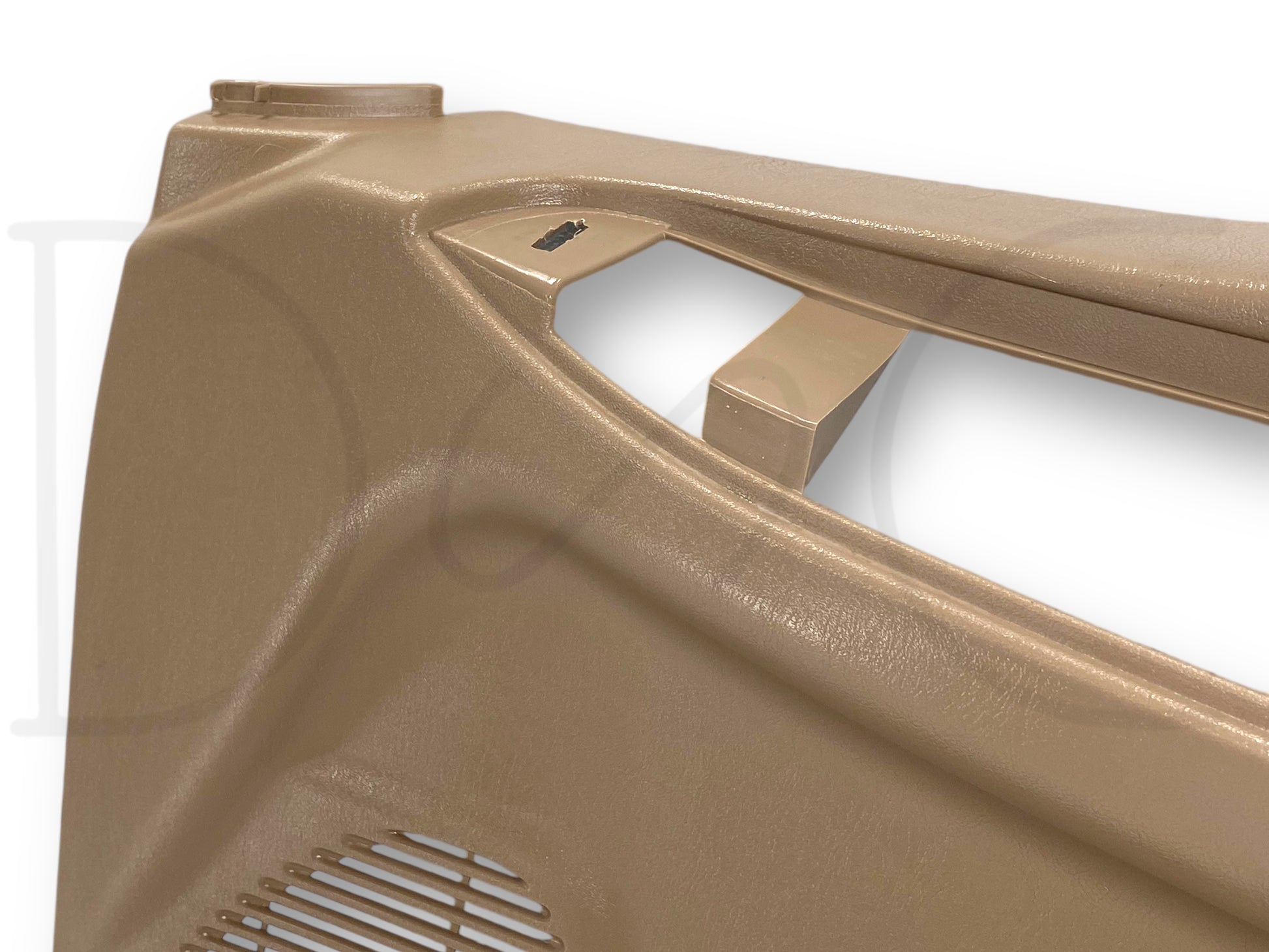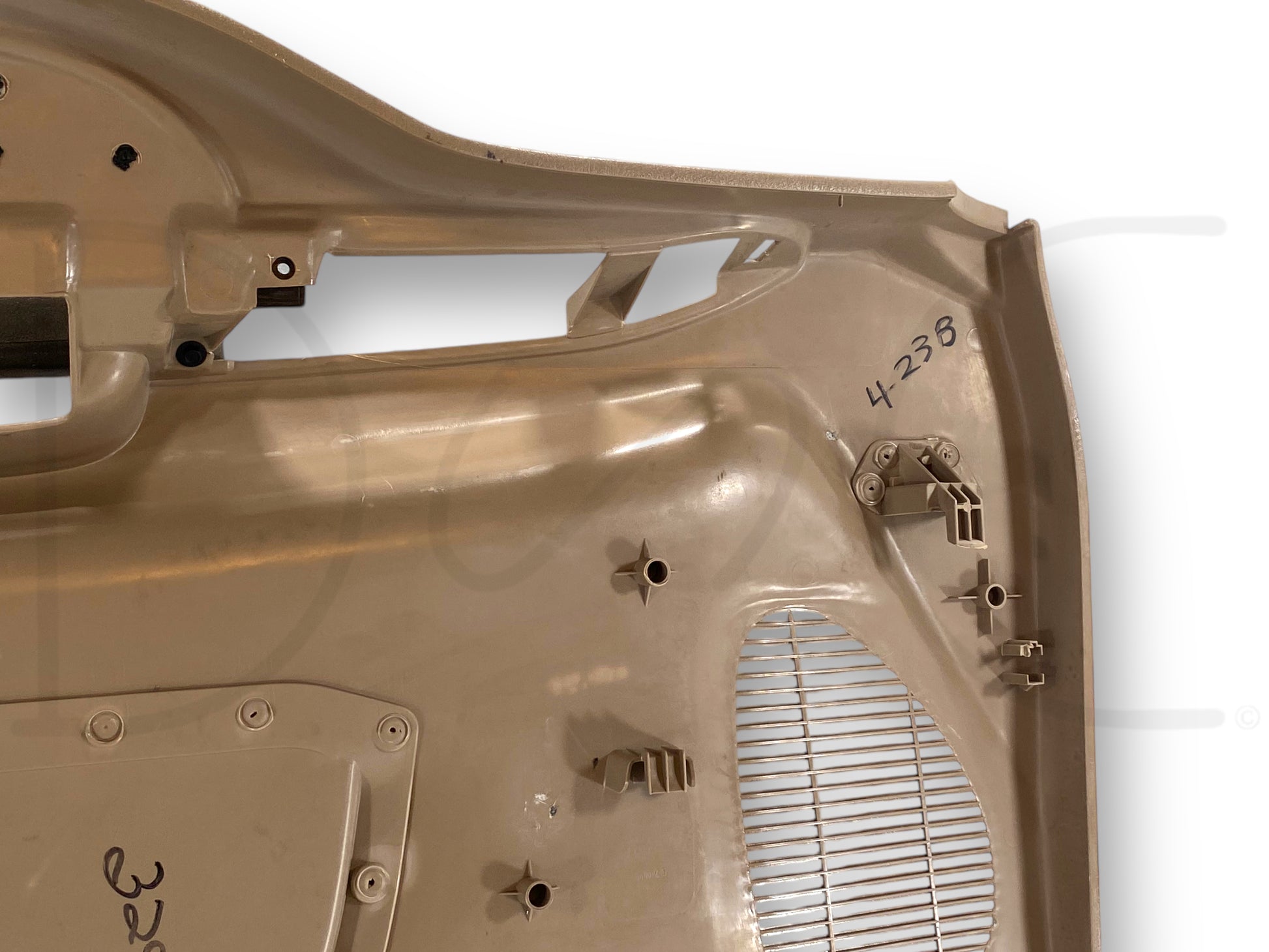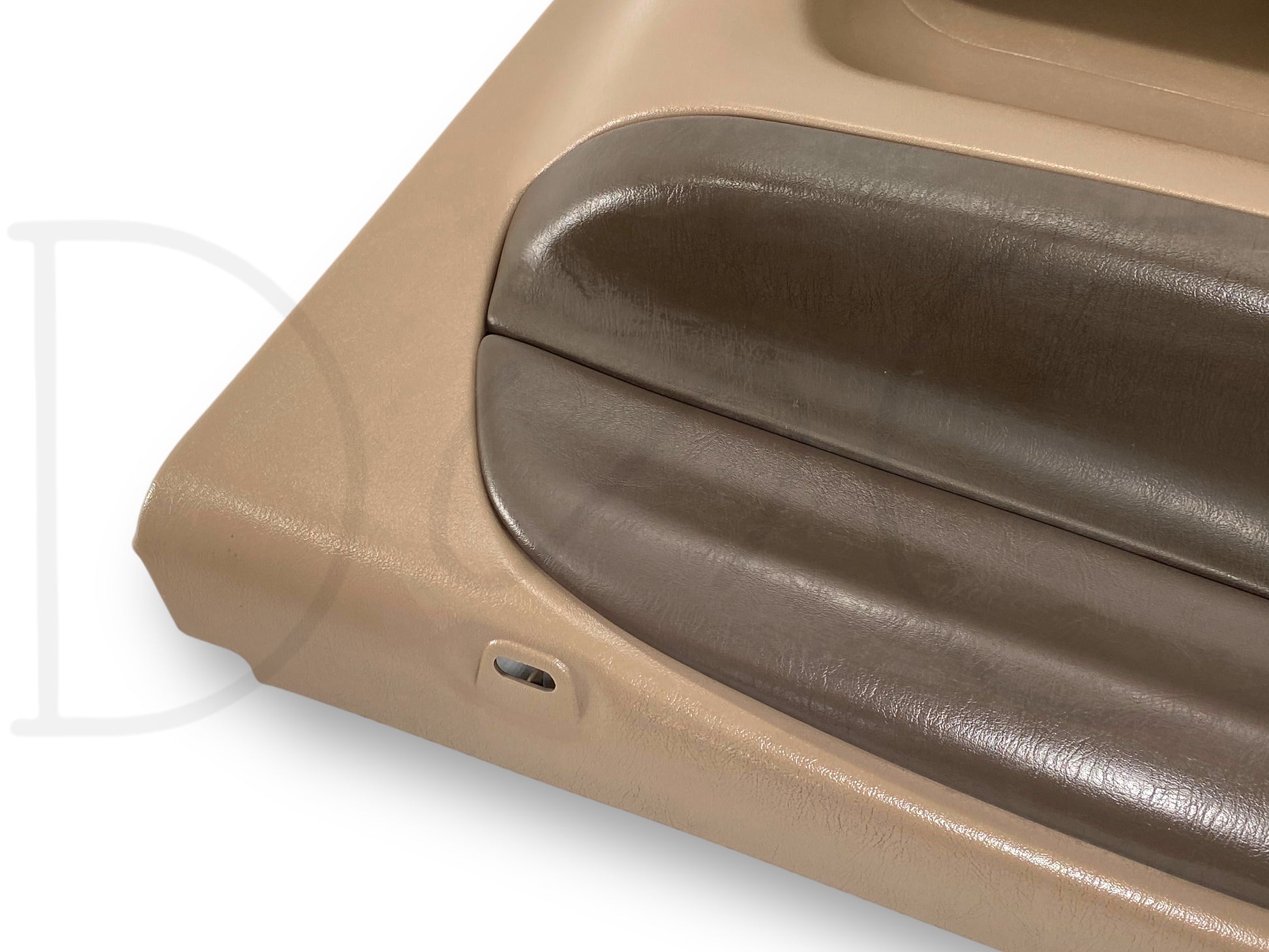 Description: Ford Super Duty right hand passenger side front interior door panel card, tan, for trucks with power windows & locks, OEM