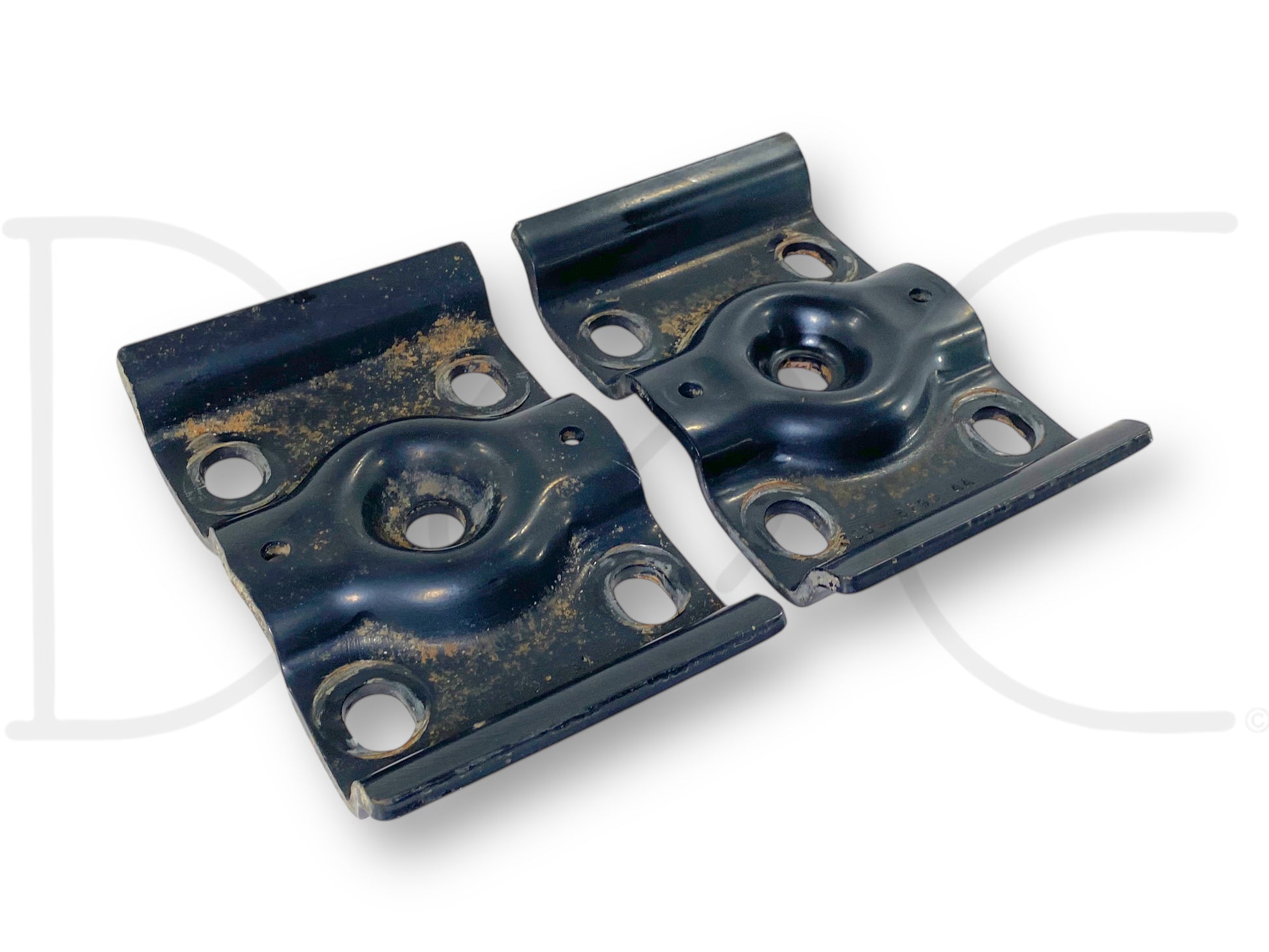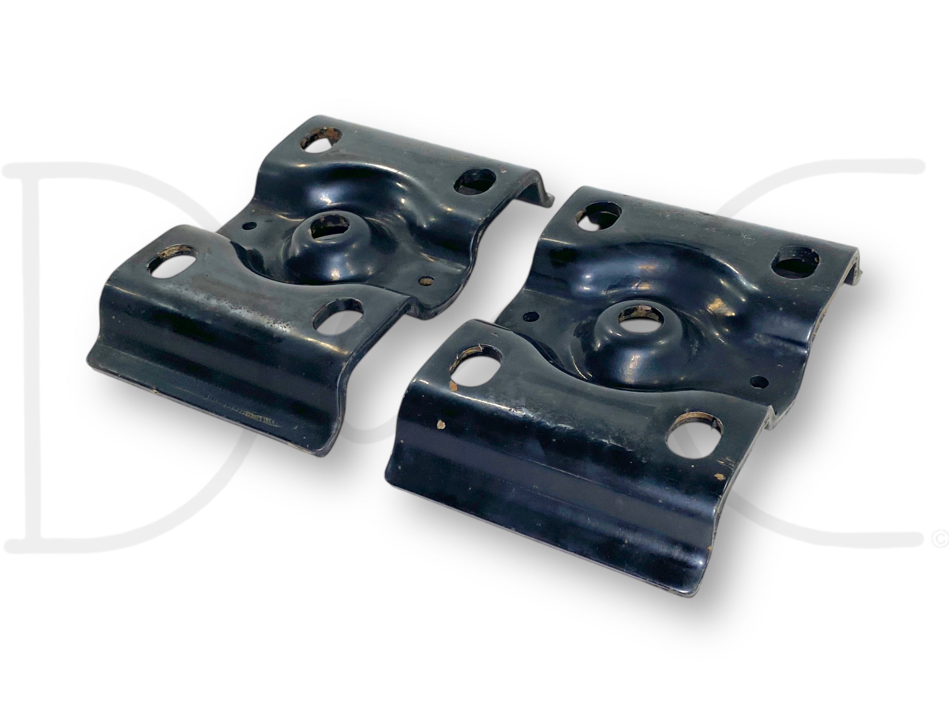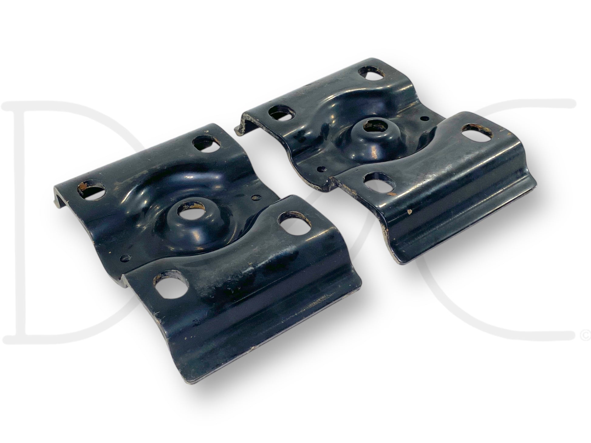 Description: Ford Super Duty rear axle leaf spring upper u bolt plate retainer brackets, fits LH left and RH right, OE pair