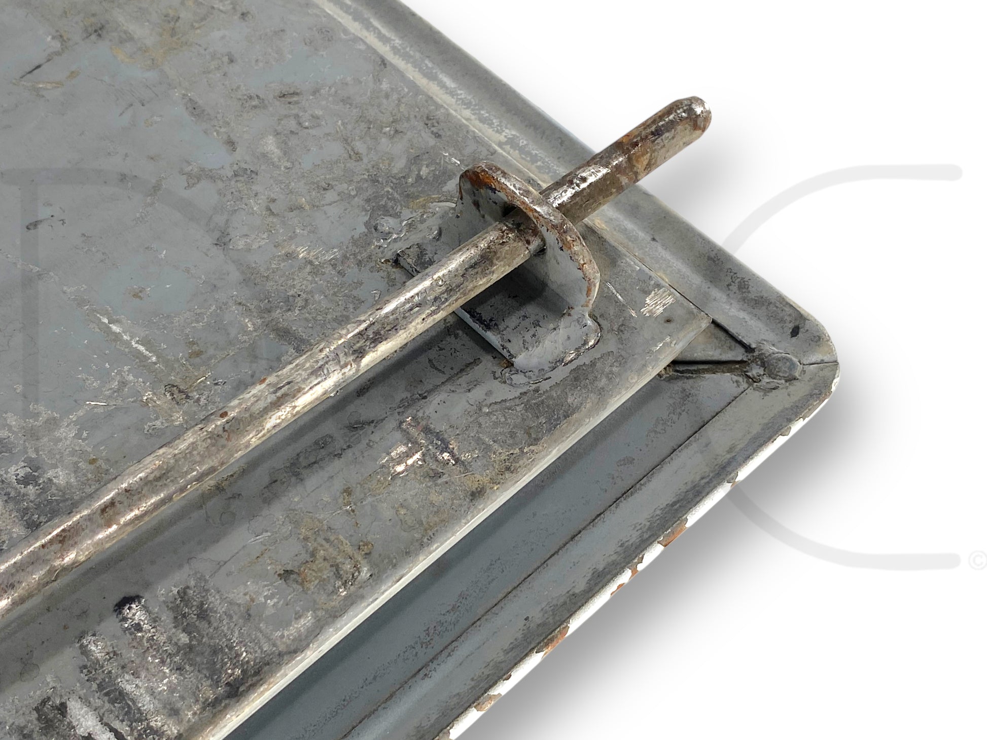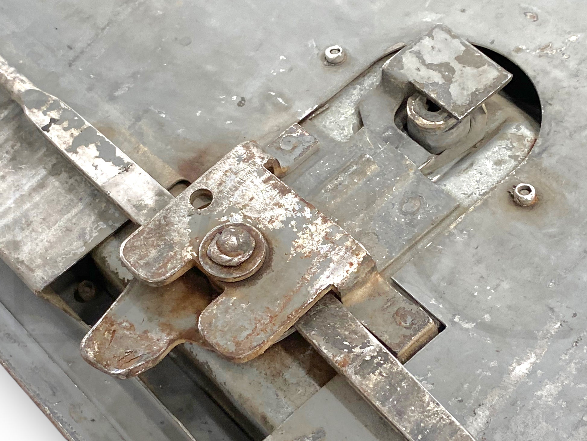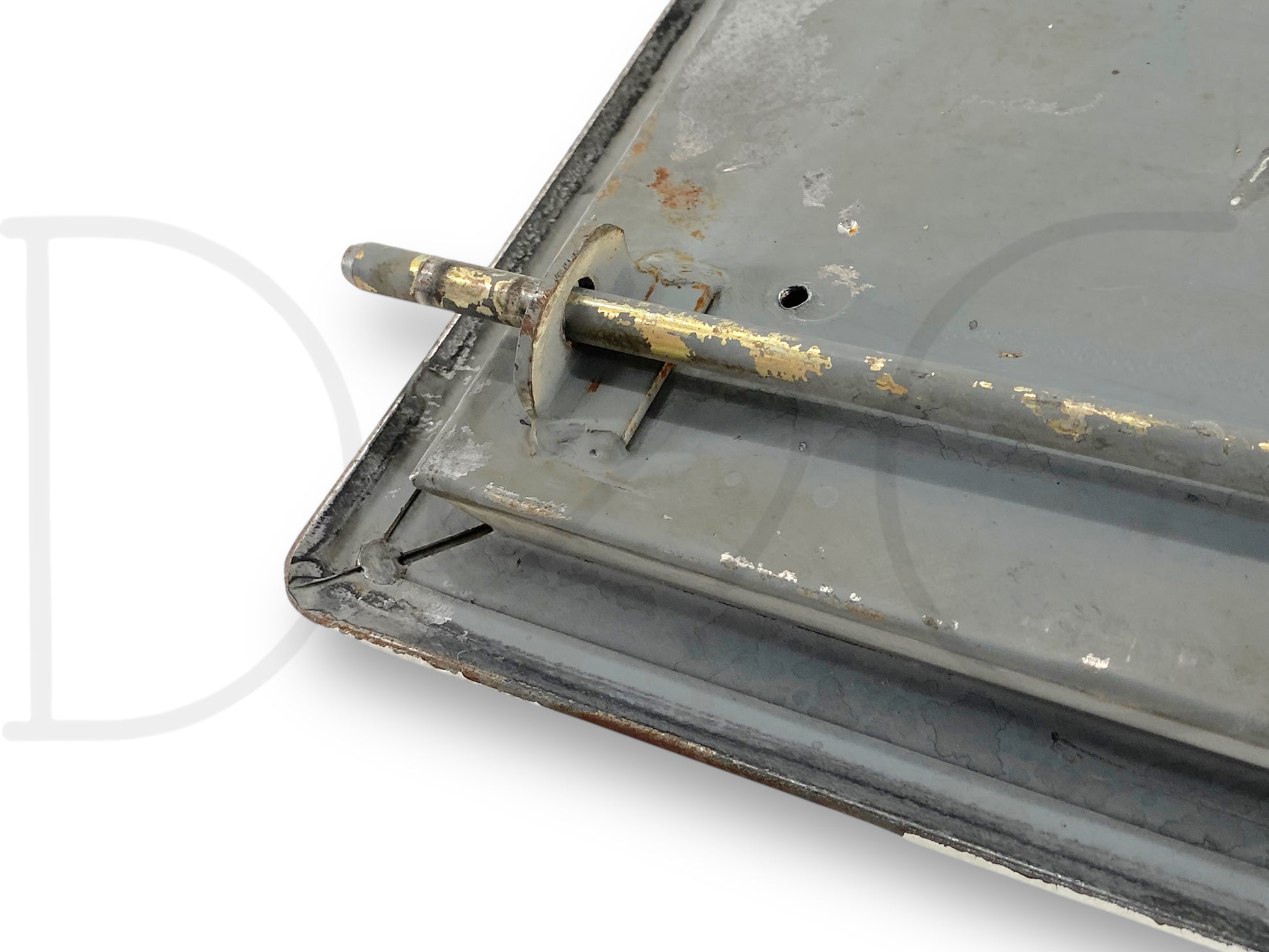 Description: stahl utility bed cabinet door with latch assembly, vertical door (ahead or behind wheel), fits left hand driver side, 19.5" wide by 38" tall